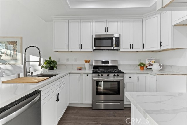 Welcome to 15 Santa Agatha, a tastefully remodeled 2 bedroom 2 bath condo located in the highly desirable community of Casafina. Located in the heart of Rancho Santa Margarita, you are centrally located to enjoy the unique lifestyle RSM has to offer. You are within walking distance to many shops, restaurants, the RSM lake, the library, parks, hiking & biking trails and so much more... The home has an open floor plan & plenty of windows to allow ample natural light to shine throughout. The large family room features vaulted ceilings, a brand new fan & the fireplace & is open to the dining room which is centered around a designer light fixture. The brand newly remodeled kitchen features simplistic white shaker style cabinets that are self closing. The Calcutta quartz countertop ties seamlessly with the cabinets & the brand new stainless steel appliances. The large master suite has high ceilings & two closets spanning the whole width of the room. The master bathroom has dual vanity with an elegant black granite countertop contrasting beautifully with the white vanity & shower/tub. There is a separate laundry room to the back of the unit leading down to the one car attached garage. There is an additional spot assigned to the unit close by. The community features a pool with sparkling blue water, a spa, a kids playground area as well as lush landscaping throughout.