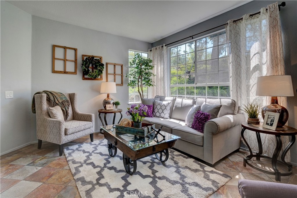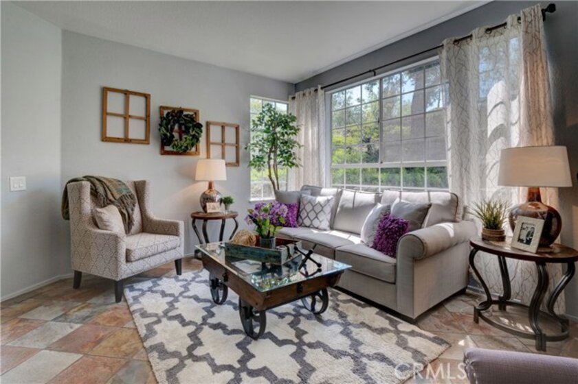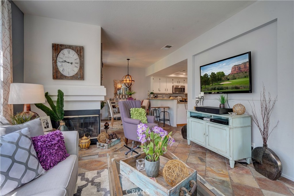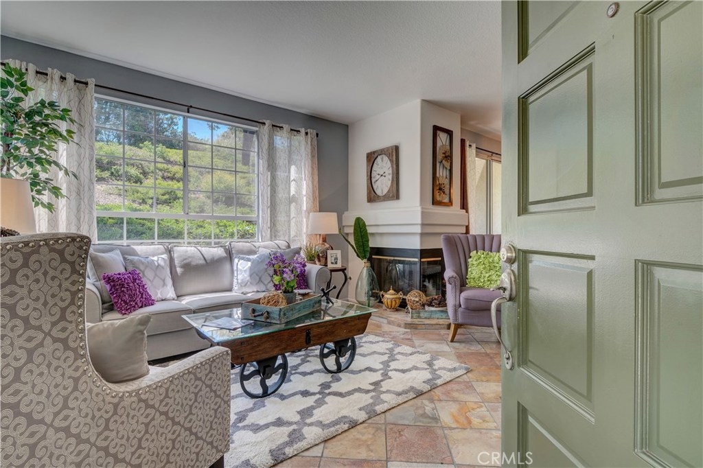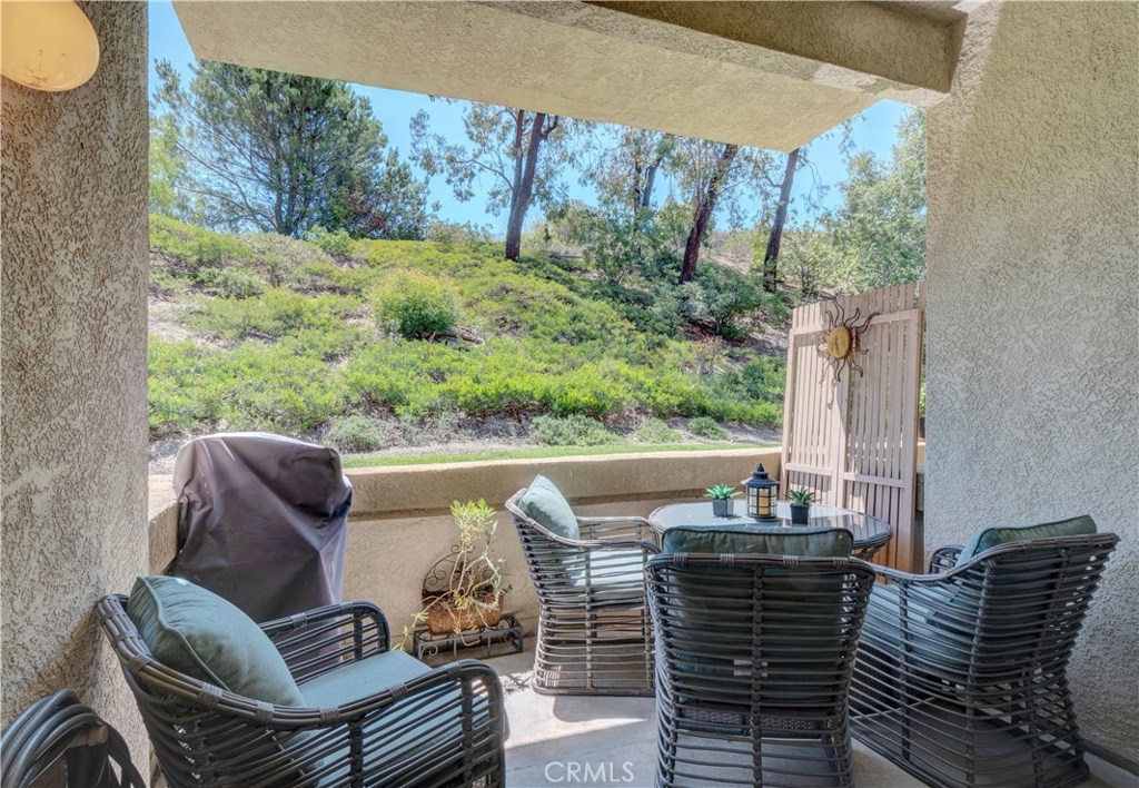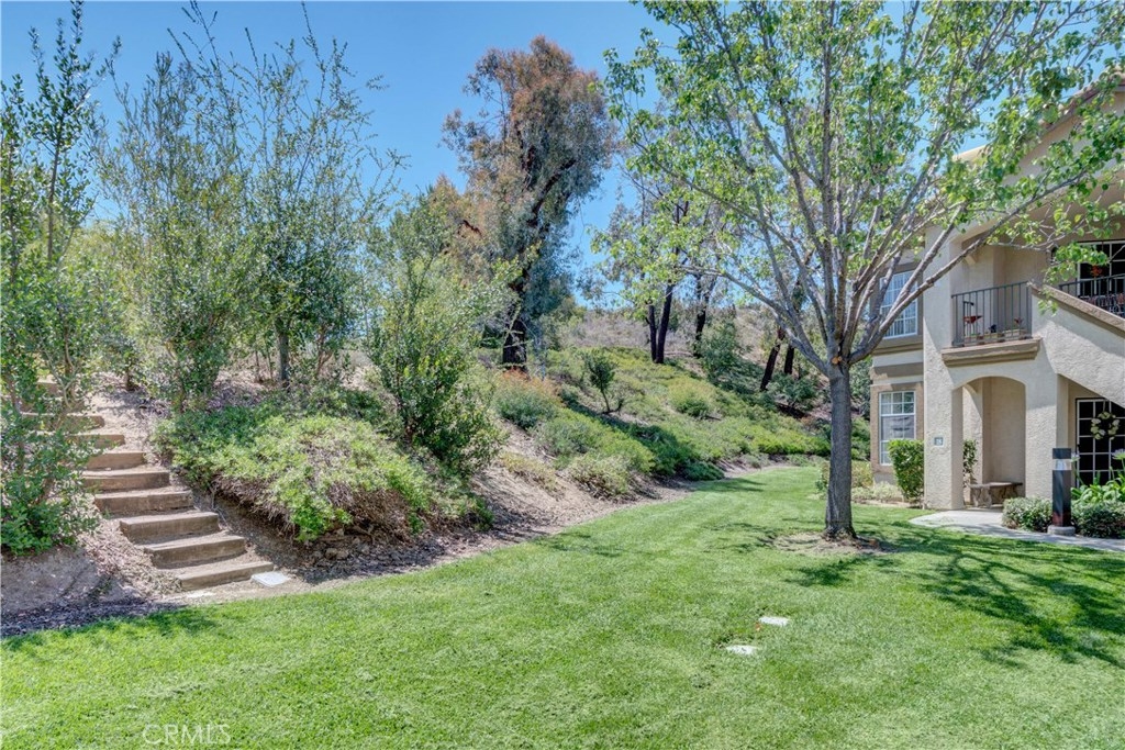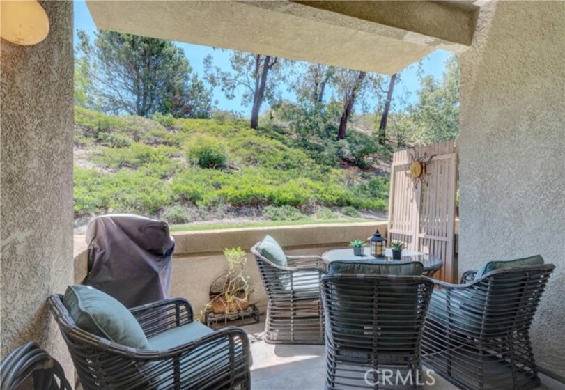 Back on the market! Welcome home to this single level end unit situated in a private and serene setting with a peaceful view of the hills. Hiking trail is steps from your front door and can be viewed from the back of the unit and patio. An open floor plan features a upgraded kitchen with granite counters, stainless steel appliances and a breakfast bar. The living and dining room are bathed in natural light with beautiful slate flooring and a dual sided fireplace. Master bedroom is generous in size with 2 closets and includes a master bathroom with dual sinks. Single car garage has an extra storage room and offers direct access to inside laundry and the home. Don't miss out on this opportunity near the lake and lagoon!
