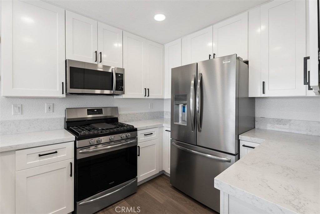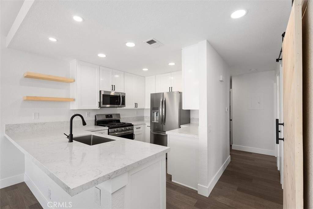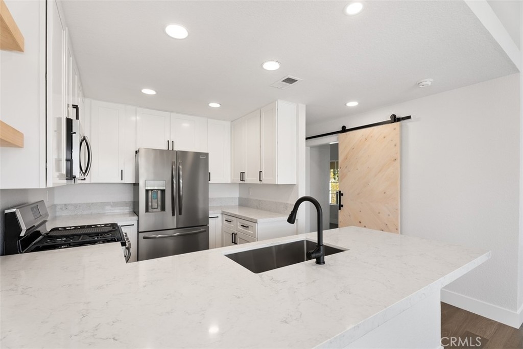 2-bedroom, 2-bath with a 1 car attached one-car garage. This upper, corner unit offers beautiful mountain and city views and high ceilings with plenty of natural light. It is situated in an excellent location, within walking distance to Central Park, City Hall, RSM lake, shopping centers, local pools, sport courts and trails. The property has been remodeled with upgraded, desired features such as quartz counter tops, new kitchen appliances, shaker cabinets, and fresh hardware. The kitchen counter has been dropped to create an eat-in kitchen/bar space. New recessed lighting, fixtures, thermostat, and switch plates have been installed as well as shiplap accent walls and a barn door added to the secondary bedroom. The unit has new flooring throughout, baseboards, bathroom vanities, sinks, toilets, and hot water heater. All window screens have been replaced. The spacious master bedroom as well as secondary bedroom have mirrored closet doors with newly built shelving and hanging rods. This home is move-in ready and available for the next owner.