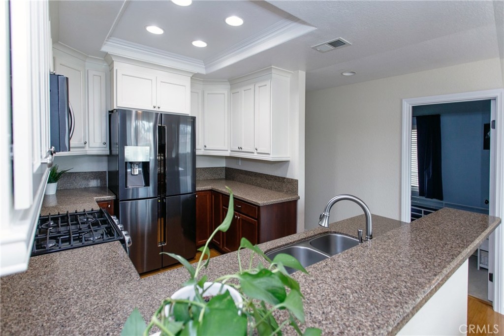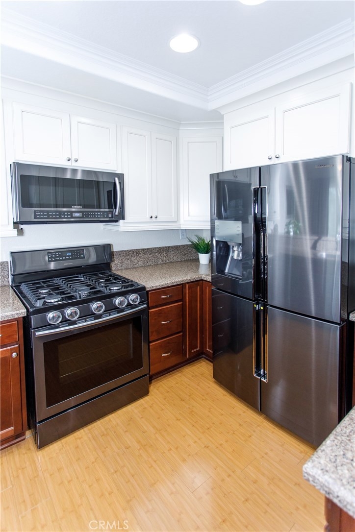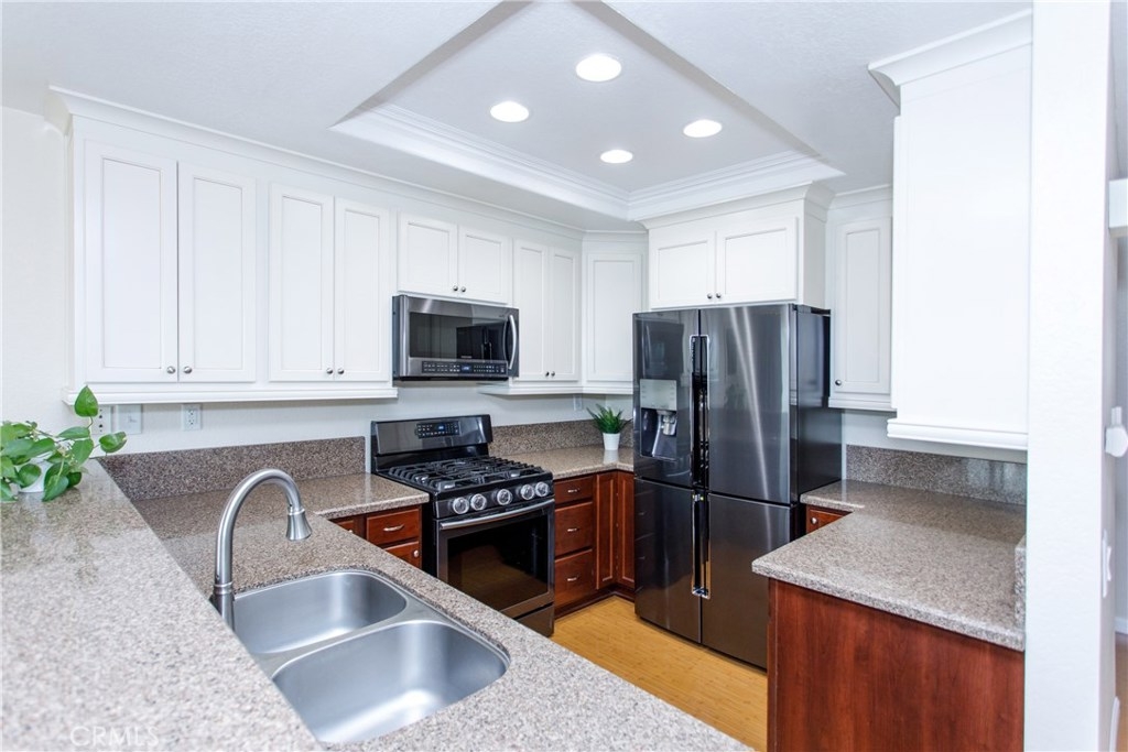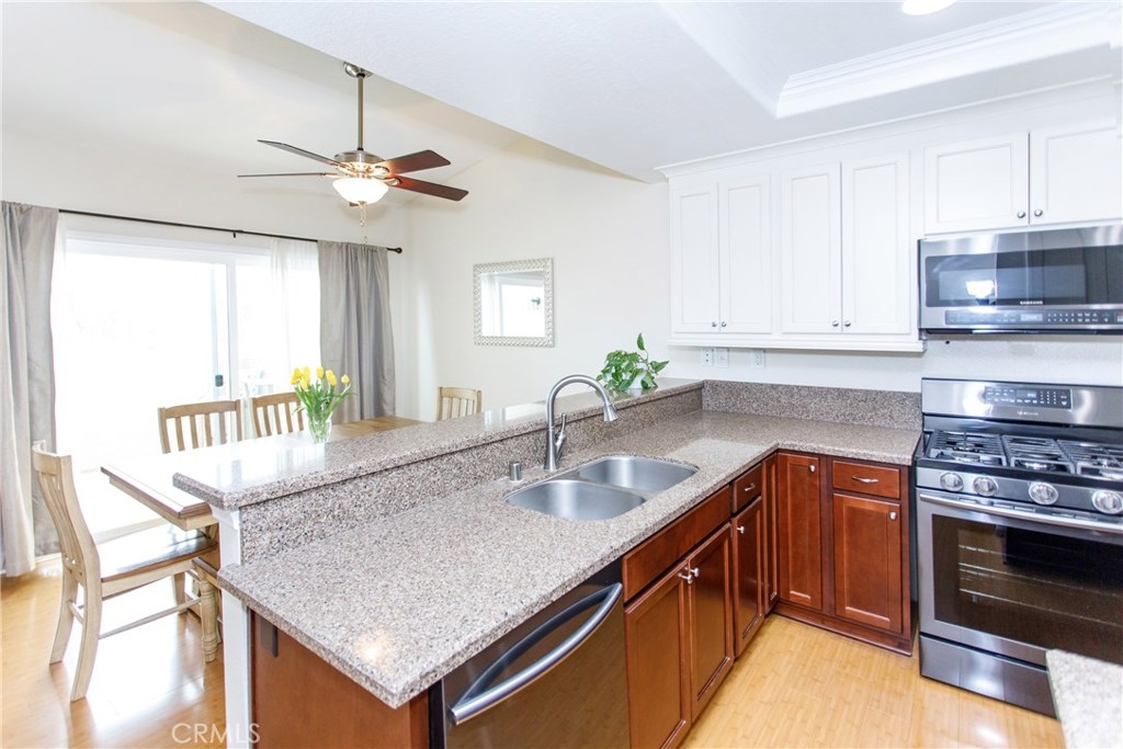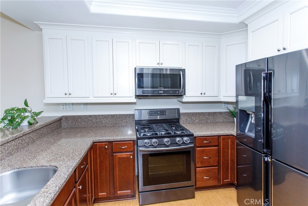 This beautiful condominium with tons of natural light sits just outside the gates of Coto de Caza. Magnificent Saddleback Mountain views abound and can be seen from your own, nicely sized balcony. This loving home has been upgraded with dual pane windows/slider, new kitchen cabinets with generous storage, canned lighting, granite counters, new stainless steel appliances and beautiful bamboo flooring. The well laid out floor plan is an open concept and is ideal for entertaining. Even the guest bath has been tastefully upgraded including a new jet bathtub! Both bedrooms contain organizer closet built-ins with the modern, open-look. Convenient, inside laundry room contains additional storage and leads to the attached garage containing even more storage! The entire complex has been recently tented and re-piped with PEX. WOW! Your lovely home has just been freshly painted, faucets replaced, and so much more. Home is turn-key ready, just for you! A fantastic walking/biking trail is conveniently located just behind the complex, perfect for that morning jog. Award winning schools, SAMLARC amenities including RSM lake, Central park, library, pools, and activities for all ages, are located nearby. Also close, is the 241 toll road. Your new home has low taxes and no Mello Roos! Welcome to this beautifully upgraded home and to this wonderful community’s lifestyle.