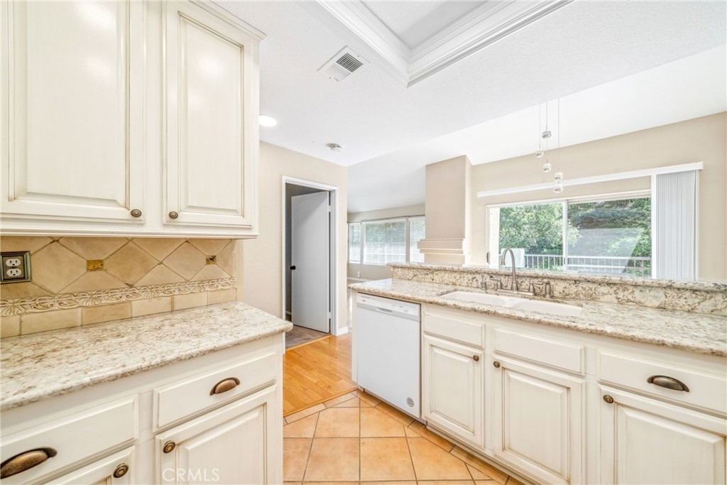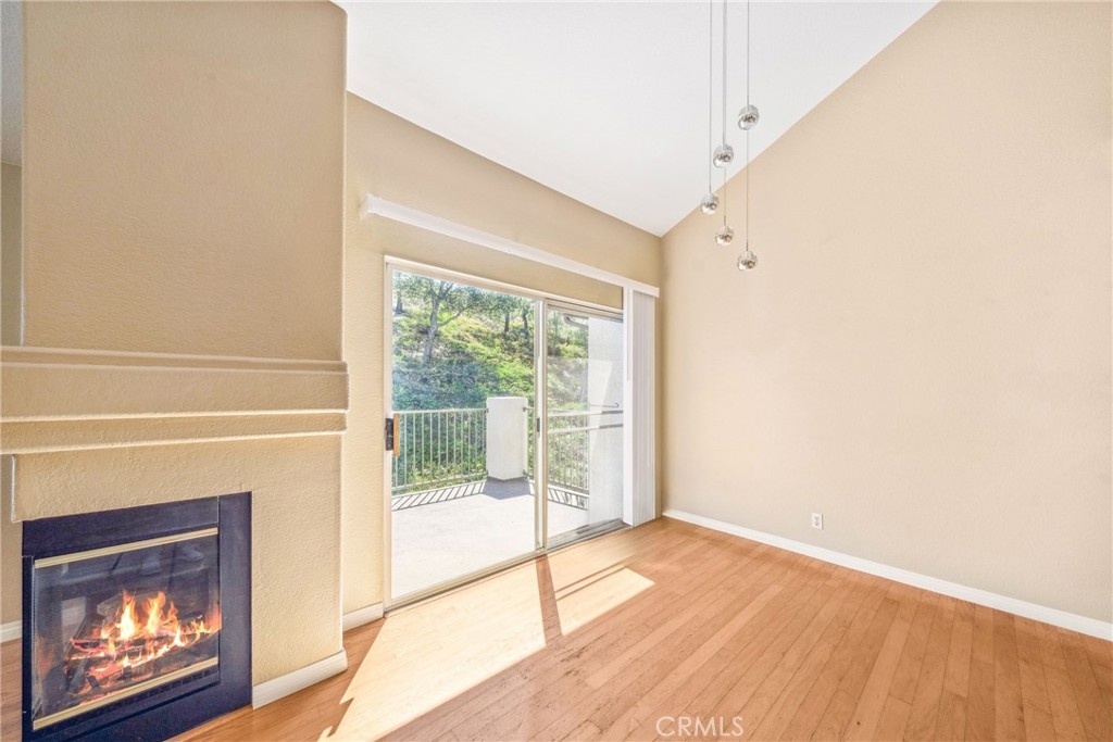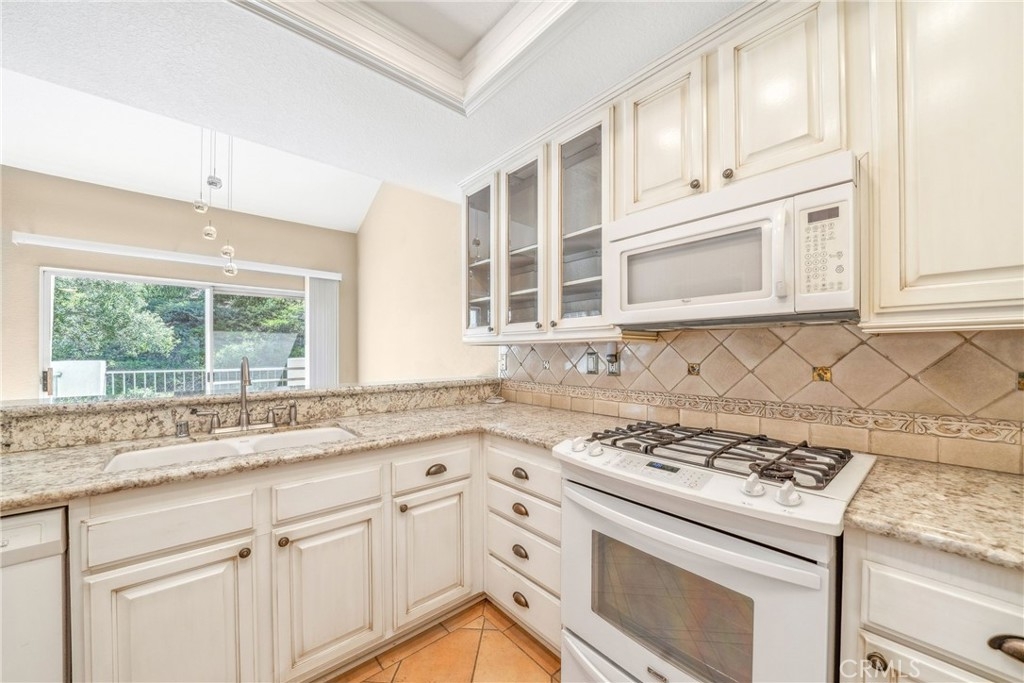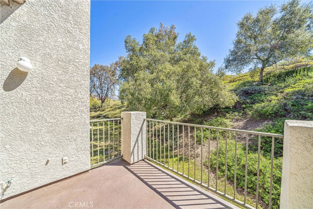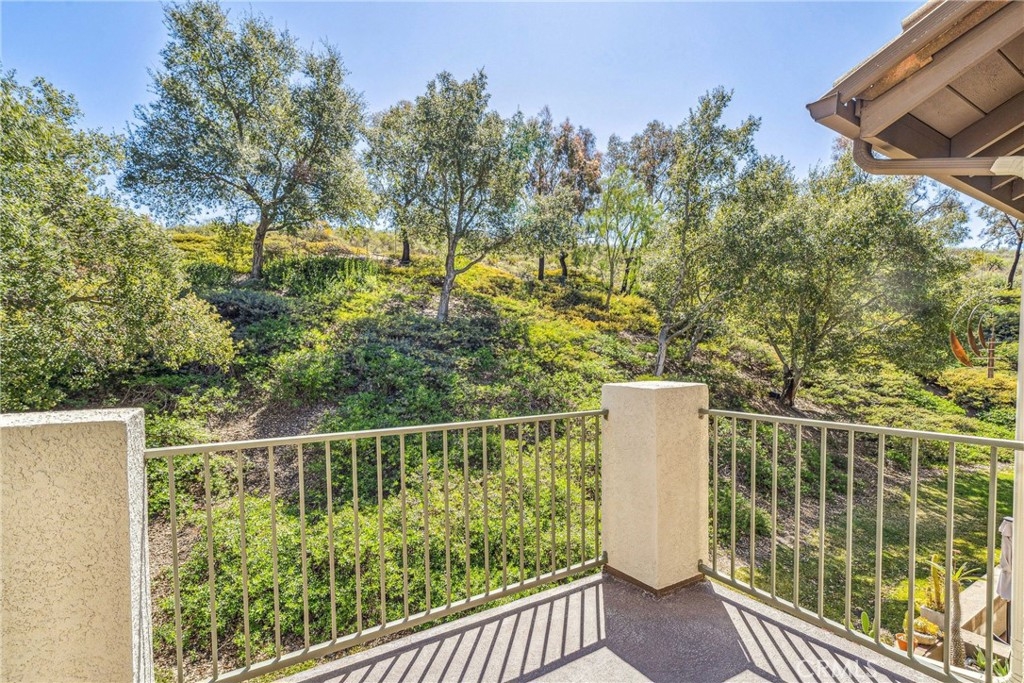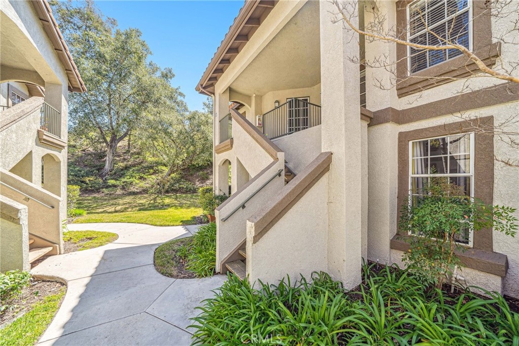 Light, bright and airy is this vaulted ceilings corner upper level condo with great light, a fantastic floorplan and is just steps from the best shopping, dining and entertainment Rancho Santa Margarita has to offer. Situated in the highly sought after enclave of Casafina enjoy sunny afternoons at the community pool and spa complex as well as all the amenities living in RSM provides. From an inviting walk up and spacious landing, with room enough for a café style sitting area, step into a stunning open feel living space with great light from walls of windows that look out to a green hillside with no one looking in. A perk of being on the outer edge of the complex with hills, trees and mountain views. With a cozy fireplace and an abundance of space the living room is open to a stylish dining room, complete with a designer chandelier, which has a large sliding door out to the entertainer’s deck and shares a breakfast bar peninsula with the fully remodeled chef’s kitchen. With warm French cottage inspired cabinetry, a custom tile back splash with inset details, granite counters, recessed lighting, an abundance of prep and storage space and all of this open to the dining room and living room the kitchen has it all. Beyond the living spaces are two large bedrooms, one as a primary with a dual sink vanity ensuite, great light and space and a wall of mirrored closets, a guest bath and a laundry/mechanicals room complete the interior living spaces. A single car attached garage and an assigned parking space are included with the unit. Enjoy enviable access to a multitude of community and RSM lifestyle conveniences, great local schools and an overall fantastic way of life found nowhere else. This is the one! Welcome Home.