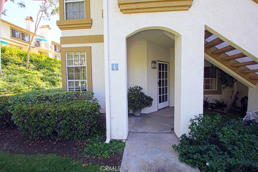 Welcome to 4 Santa Agatha. A beautiful single story end unit situated in the beautiful city of Rancho Santa Margarita. Enter through your own private arch way and you are greeted by a large welcoming living room with a cozy fireplace. Dining nook leads to serene outdoor enclosed porch with views of lush greenery, one of the many benefits of being an end unit. Kitchen features reverse osmosis drinking water system. Main floor master bedroom is spacious and master bathroom is complete with double sink and tub in shower. Direct access to O'neill Park Trails and the closest unit to community pool. Quick walk to Antonio Plaza and El Paseo Plaza. Enjoy Rancho Santa Margarita Lake, Beach Club, Tennis and Pools plus miles of trails. Don't miss your opportunity to own this home! Features low utility costs. No Mello Roos=Low Tax rate.