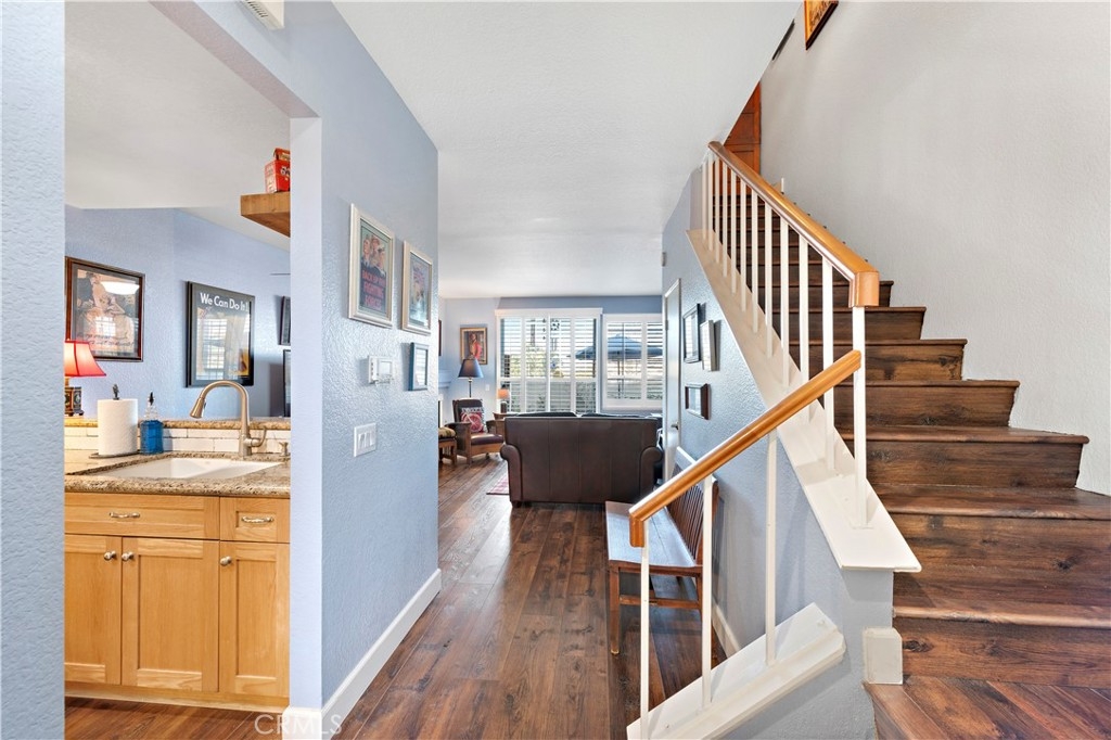 Stunning FHA/VA-approved 2 bedroom 2 1/2 bath townhome just steps from some of the best restaurants, parks, and amenities that Rancho Santa Margarita has to offer. With nobody above or below, you'll enjoy the attached 1 car garage along with an uncovered spot too! Upgraded wood vinyl floors were recently installed to provide a modern look throughout! The first floor also offers an oversized kitchen with lots of cabinet space and granite countertops. A spacious living and dining room flows nicely to your private patio with western-facing views. A powder bathroom on the first floor and laundry are also featured. Upstairs offers two twin master suites! Yes, no size was compromised with the secondary bedroom, each room is oversized with your own private bath! Each bathroom has been upgraded with one offering a walk-in shower while the other a full shower/tub combination. No mello roos, access to the Rancho Santa Margarita beach club, lagoon, tennis courts, and pools as well!