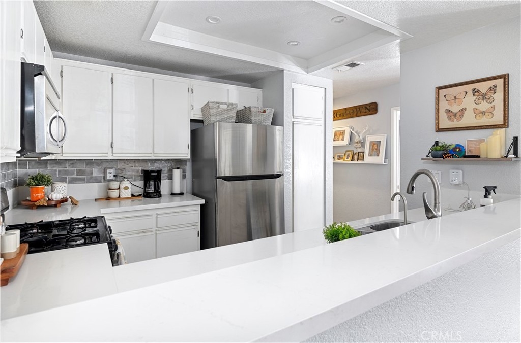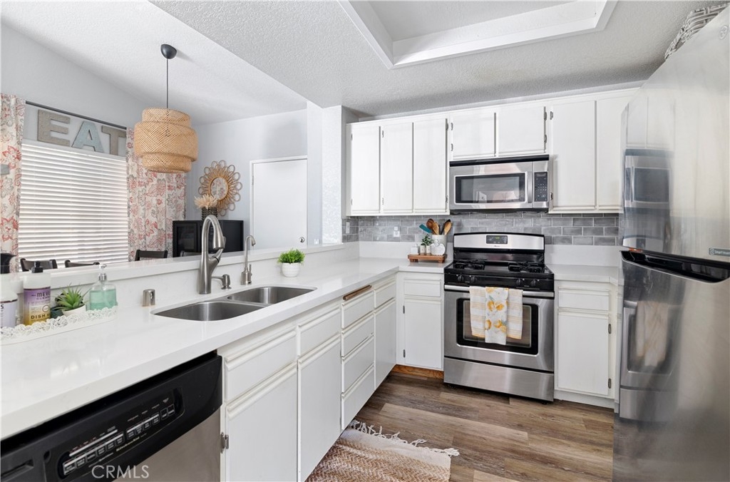 Welcome home to this 2 bedroom 2 bath, townhome-style living in the heart of South Orange County! Enjoy the perks of being an END UNIT with an attached garage and no neighbors above or below you. As you walk up the stairs you are met with a nicely sized patio big enough for seating and a BBQ. Upon entry you will walk into an open concept, kitchen, living, and dining. Down the hallway are the 2 bedrooms and 2 baths. This well appointed residence is conveniently situated within walking distance to Central Park, City Hall, RSM Lake, shopping centers, local pools, sport courts and trails.