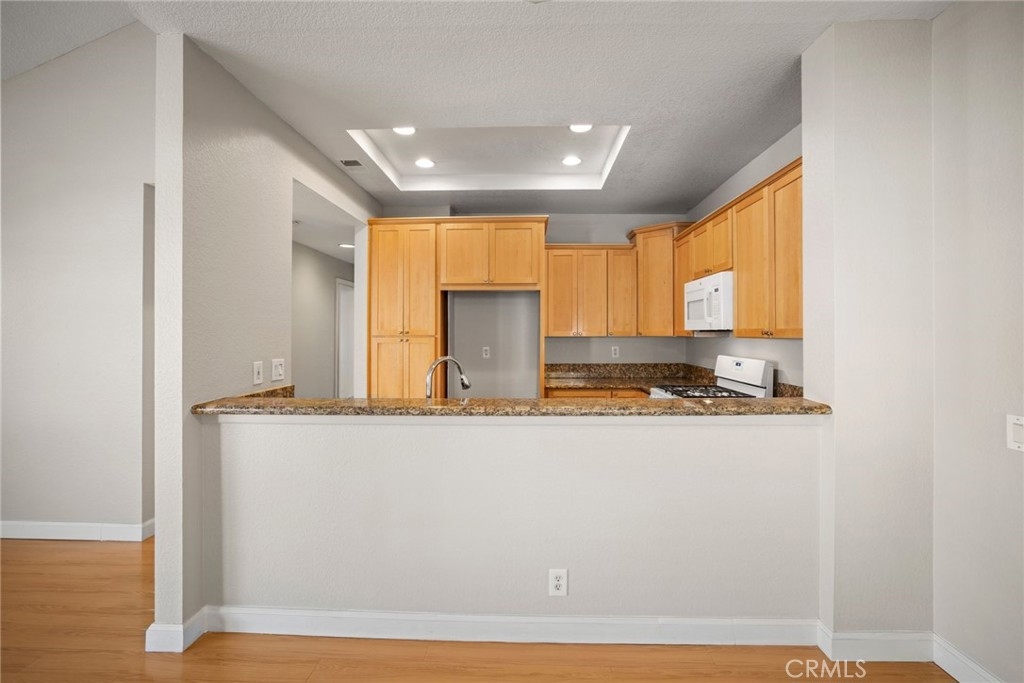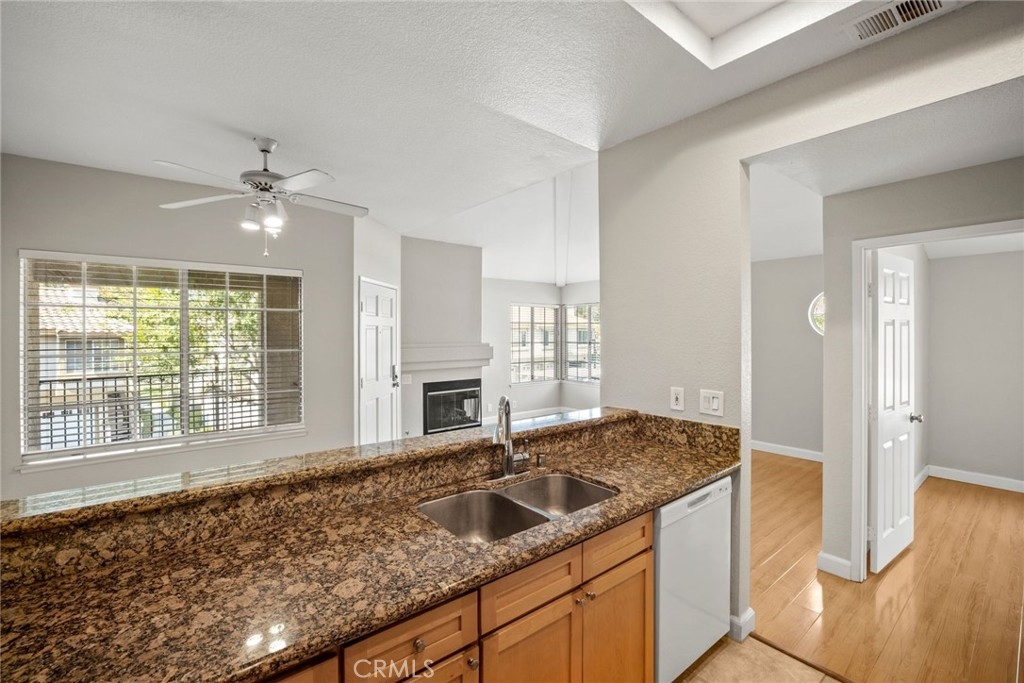Beautiful 2 bedroom, 2 bathroom, upper level, end unit, single story condo with peek mountain views in the community of Casafina in Rancho Santa Margarita! Enjoy laminate wood flooring, an inviting fireplace, and a gourmet-style kitchen. The kitchen offers granite countertops, a breakfast bar, and white appliances. The primary bedroom features a large closet, a dual vanity in the primary bathroom, and a soaking tub-in-shower. Additional property highlights include an entry view patio, garage laundry hookups, and a 1 car direct access garage. Community amenities include a swimming pool, spa, and playground. Convenient to nearby schools, parks, shopping plazas, and easy access to The Toll Roads!