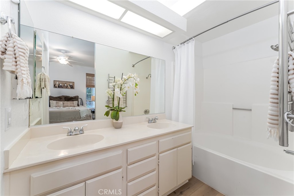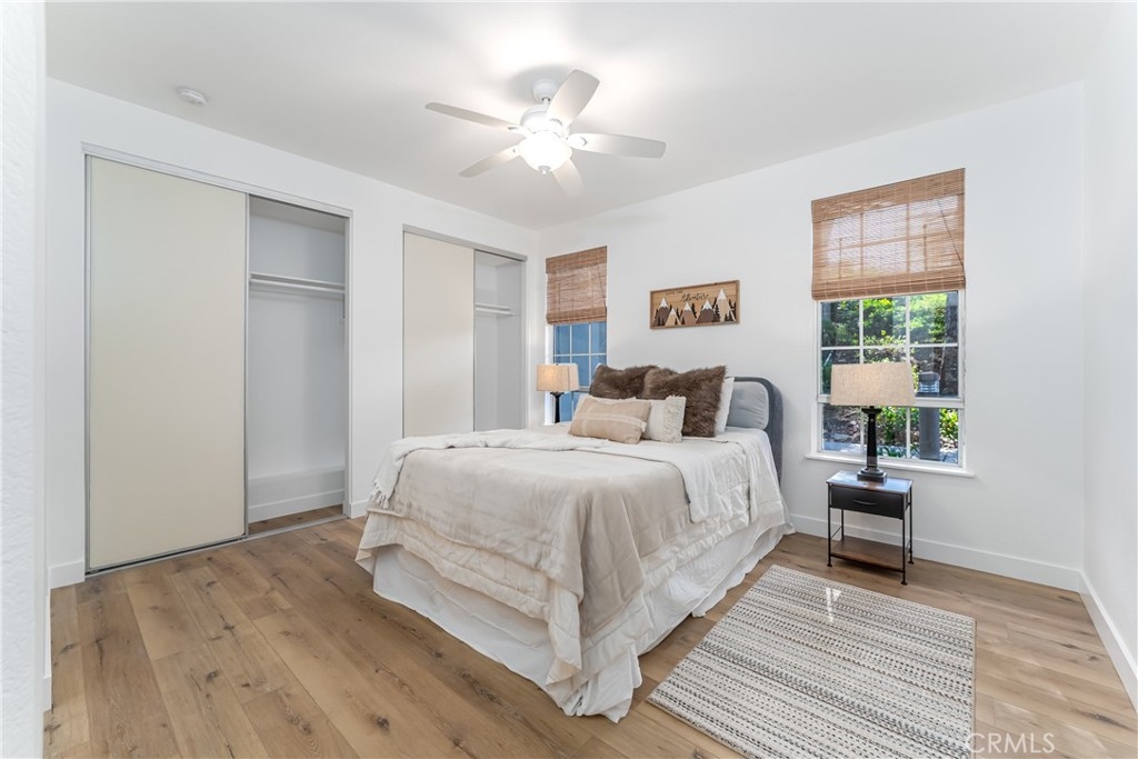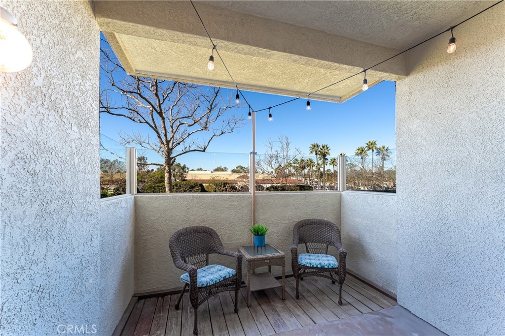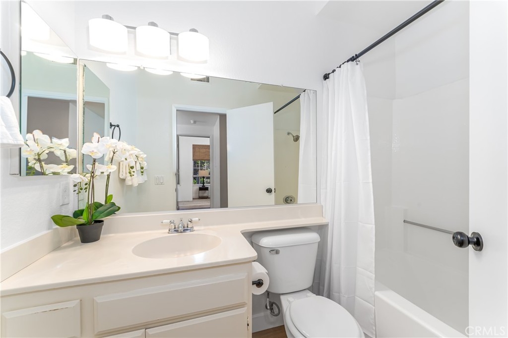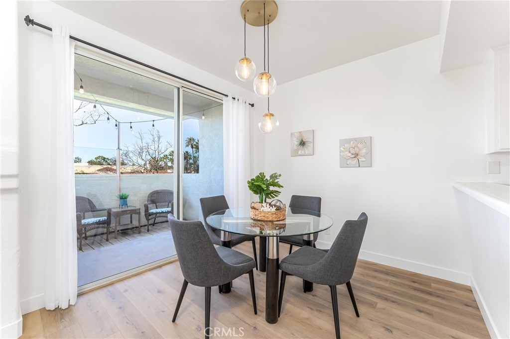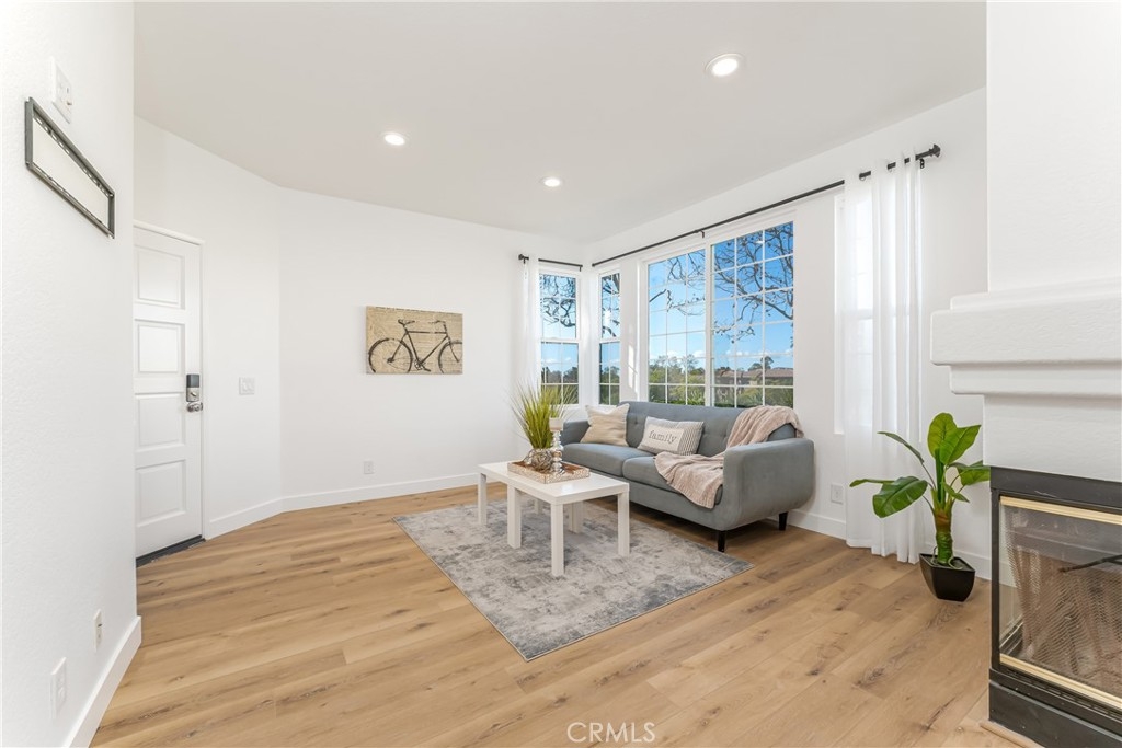 Darling ground level 2 bedroom 2 full baths with a one car ATTACHED GARAGE. End unit tucked in a picturesque corner location overlooking the greenbelt. Feels like your very own backyard. Casafina is a small and highly desirable community located very close to Coto de Caza. As you enter the open and spacious living room you will notice how light, bright and inviting it is. The cozy gas fireplace is a lovely added feature, which separates the dining room; equipped with a beautifully upgraded light fixture, a sliding glass door that gives you access to the entertaining sized patio with peek-a-boo views of the Saddleback mountains, and a counter height bar that opens to the updated kitchen. The kitchen includes: New refaced white cabinets with sleek modern black hardware and matching faucet, brand new stainless steel oven & microwave, stainless steel refrigerator (less than a year old), and recessed lighting. So many other upgrades include: All new LVP flooring & baseboards throughout, beautiful new dual pane windows in living room, new water heater replaced in 2023, and newer A/C replaced in 2020. Freshly painted throughout: All doors, walls, vanities, and cabinets. Brand new black door handles upgraded to give it an updated finishing touch. Both bedrooms include ceiling fans and window coverings. The primary bedroom is spacious with dual closets, en-suite bathroom w/ separate toilet area, dual sinks, and soaking tub. Both bathroom shower heads were also recently upgraded. A bonus closed door laundry room with full size washer and dryer is located off the attached garage. The garage contains added shelving and a spacious closet providing ample storage space. This beauty is perfect in every way! Very close to the pool, sits in the heart of RSM, close proximity to RSM Lake, Beach Club and within walking distance of many shops and restaurants.