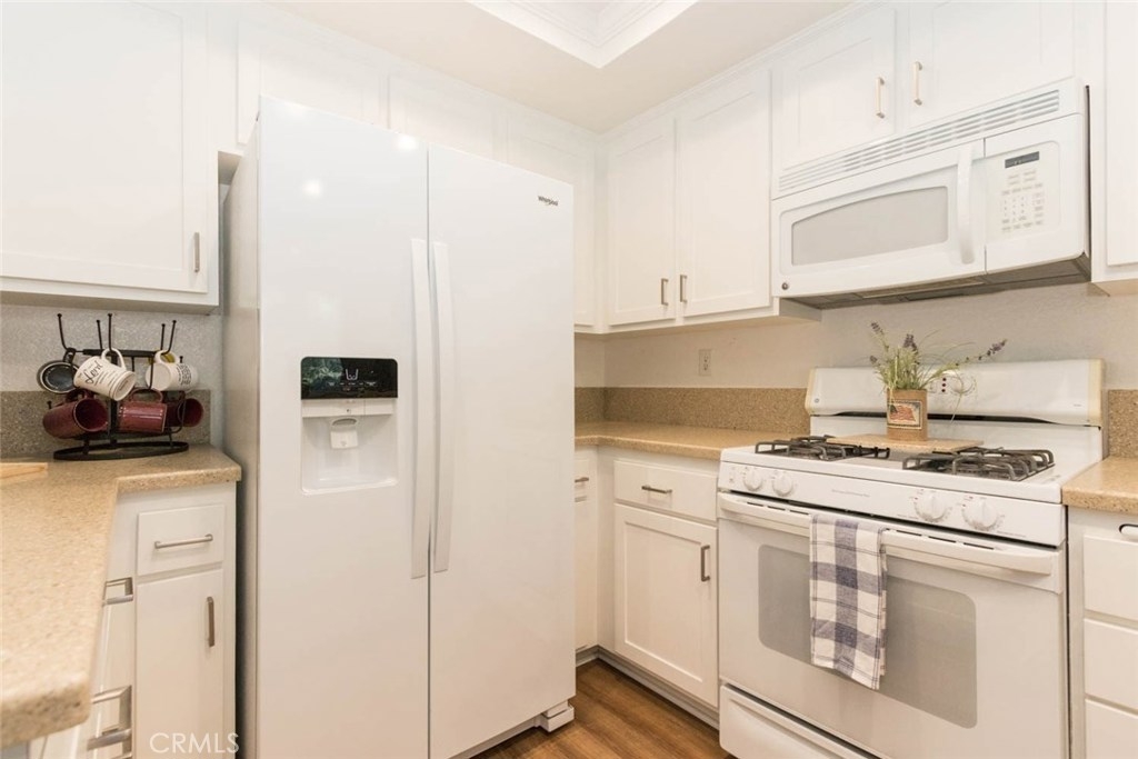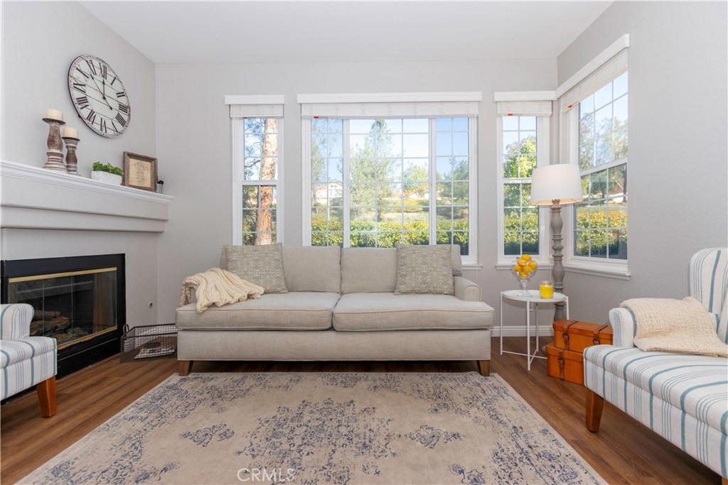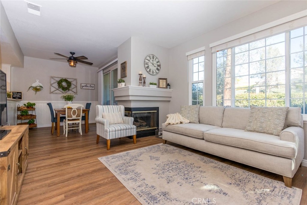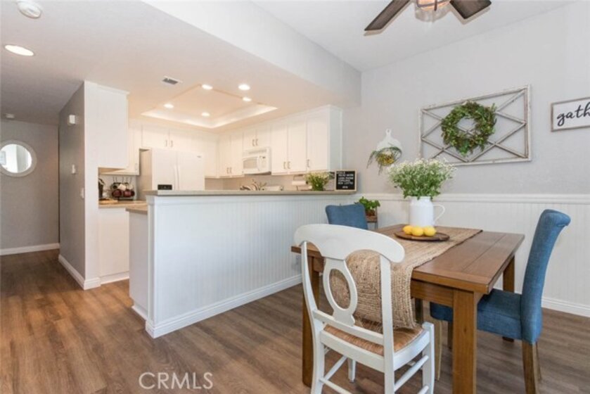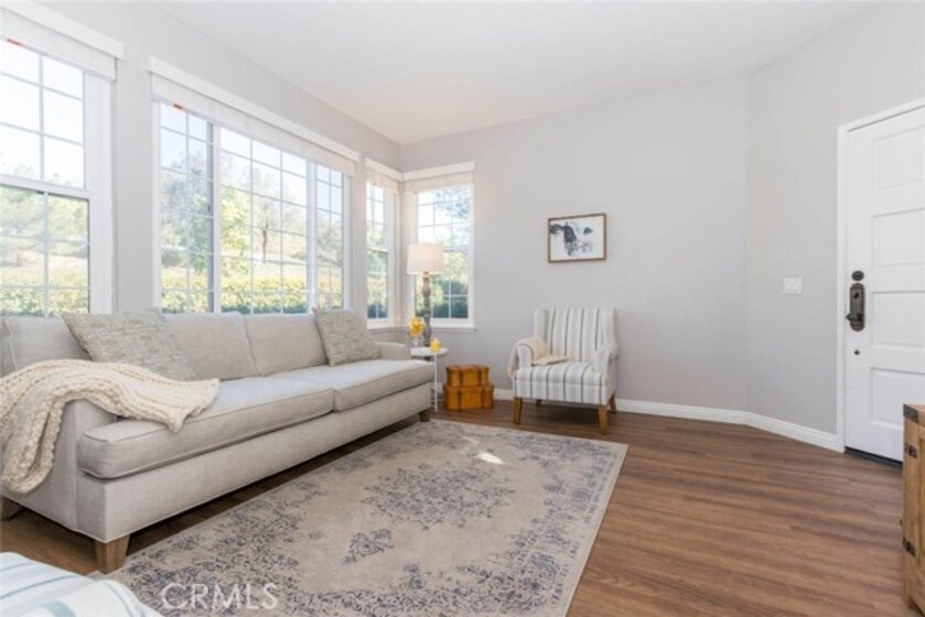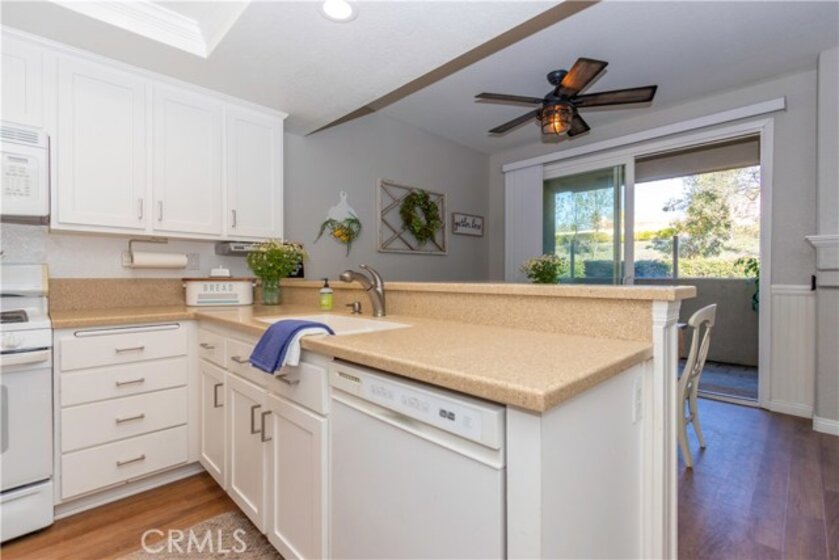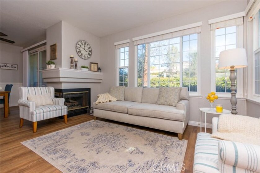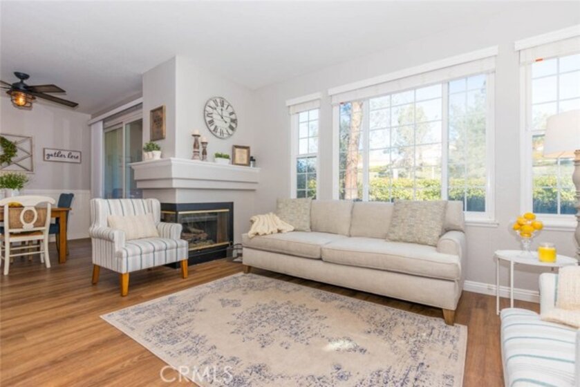 This is the one you have been waiting for! Located in the Casafina Tract this downstairs 2 bedroom, 2 bathroom, end unit has it all! From the moment you enter you will feel right at home. Features include: dual pane windows, upgraded wood laminate flooring throughout, a large spacious kitchen with Corian counters and soft close cabinets and drawers, new ceiling fans in both bedrooms, new light fixtures and decor in both bathrooms, mirrored wardrobes, a new water heater, magnetic door stops and so much more! Enjoy your cozy fireplace in the living room, entertain in your gourmet kitchen or relax on your private patio. This property is totally turnkey and has been freshly painted in designer colors with a neutral color palette. There is a separate laundry area and the attached garage has plenty of storage and shelving. Located near award winning schools, dining, shopping, parks, walking/hiking trails and the RSM Beach Club and lake - you are sure to enjoy all of the amenities that Rancho Santa Margarita has to offer! Welcome to your new HOME!