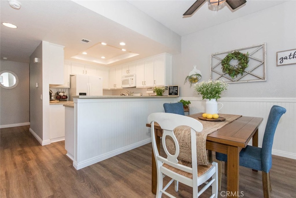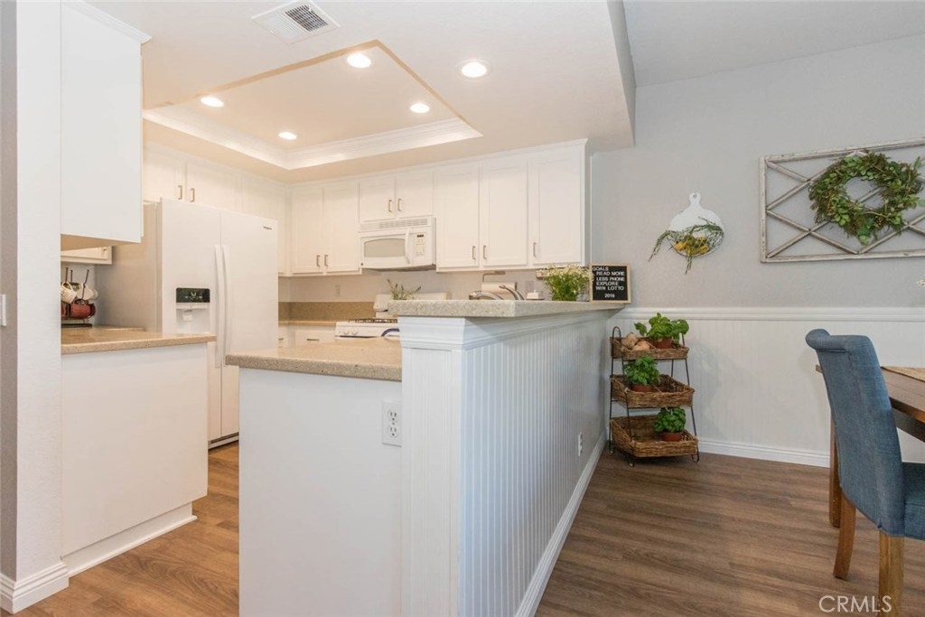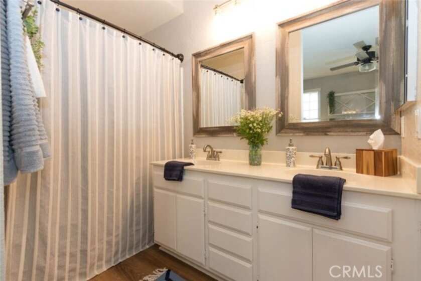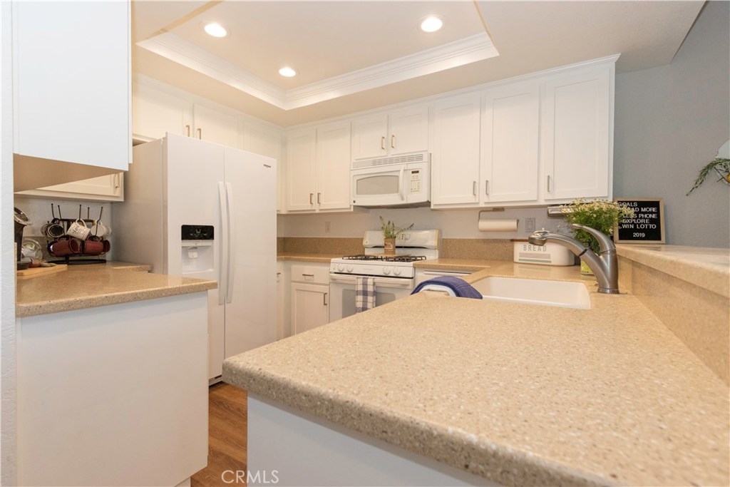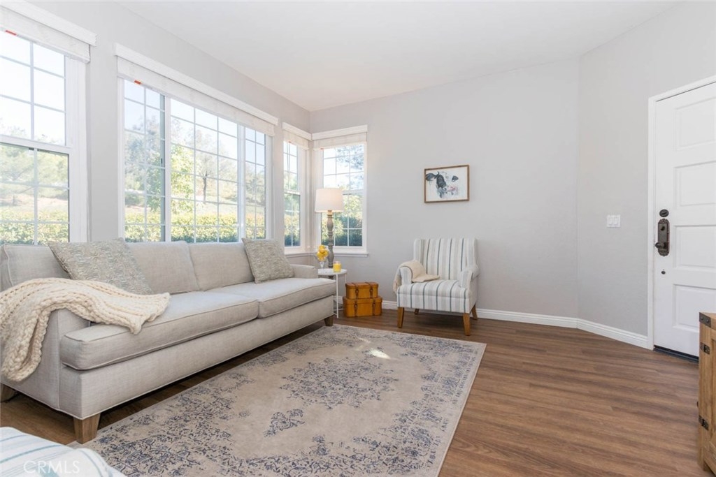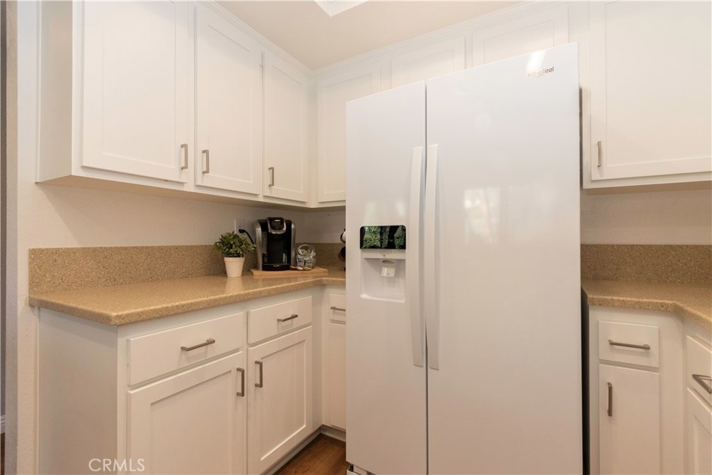 This is the one you have been waiting for! Located in the Casafina Tract this downstairs 2 bedroom, 2 bathroom, end unit has it all! From the moment you enter you will feel right at home. Features include: dual pane windows, upgraded wood laminate flooring throughout, a large spacious kitchen with Corian counters and soft close cabinets and drawers, new ceiling fans in both bedrooms, new light fixtures and decor in both bathrooms, mirrored wardrobes, a new water heater, magnetic door stops and so much more! Enjoy your cozy fireplace in the living room, entertain in your gourmet kitchen or relax on your private patio. This property is totally turnkey and has been freshly painted in designer colors with a neutral color palette. There is a separate laundry area and the attached garage has plenty of storage and shelving. Located near award winning schools, dining, shopping, parks, walking/hiking trails and the RSM Beach Club and lake - you are sure to enjoy all of the amenities that Rancho Santa Margarita has to offer! Welcome to your new HOME!