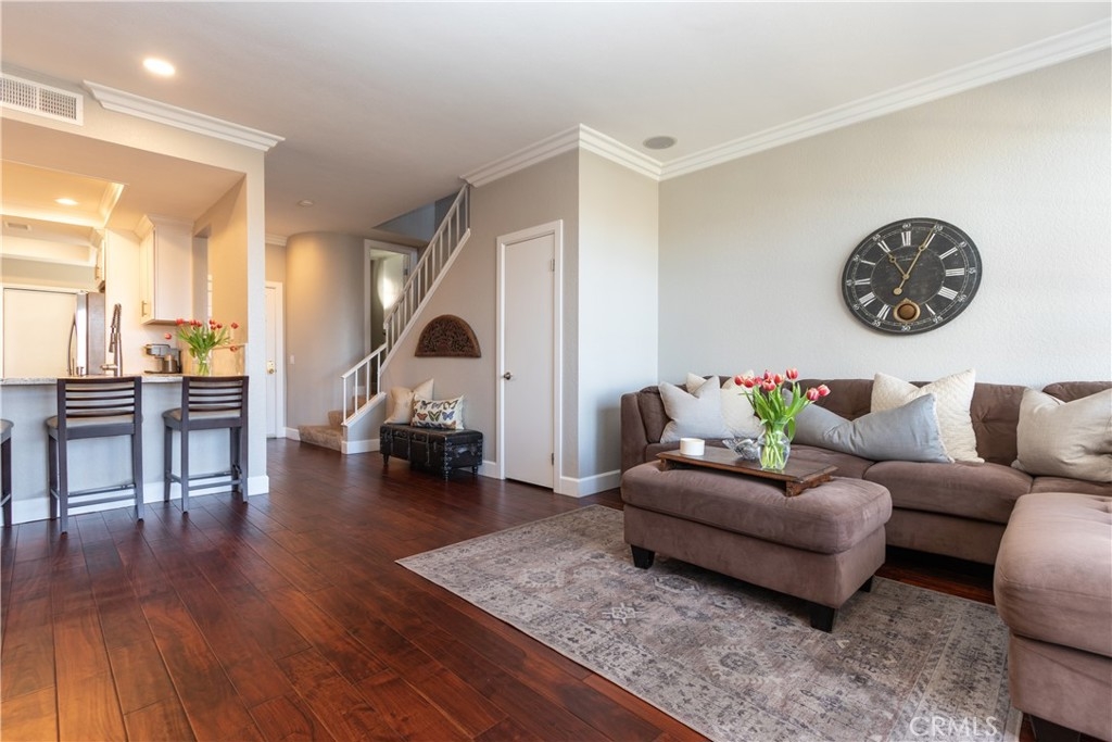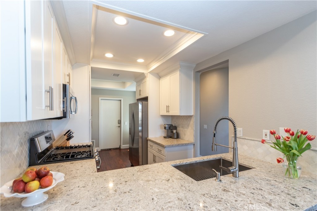Welcome to your new home located in the highly desirable neighborhood of Casafina. Just outside the gates of Coto de Caza. As soon as you enter you will be impressed by the spacious interior bathed in lots of natural light. Decorated in a light and neutral palette, the home features wood floors, downstairs, soft neutral carpet upstairs, fresh paint, recessed lighting and fireplace. The kitchen has been completely remodeled with quartz counters and breakfast bar, marble backsplash, white shaker style cabinets, decorative pulls and stainless steel appliances. Check out the area between the kitchen and the garage. It is so versatile for a home office, homework area or a variety of other options. The dual bedroom suites are a key feature of this home. The upgraded backsplashes and spacious closets compliment both bedrooms. The rear patio is just right for a BBQ and outdoor entertaining. It bodes a view of the trees and hills beyond. One car direct access garage and space for another car outside. Enjoy the HOA pools, spas, tennis courts, picnic areas and lake.