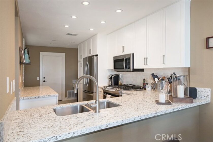 Enjoy your NEWLY UPGRADED kitchen in this nicely appointed two story condo in the heart of RSM. A gorgeous new kitchen featuring white cabinetry, quartz counters, custom backsplash, stainless steel appliances, recessed lighting and a convenient breakfast bar for your morning coffee. This home also features newer dual paned windows including sliding glass door, custom mantel over the cozy living room fireplace, wood laminate flooring, real wood flooring on stairs, all new paneled interior doors and frames, upgraded lighting and fixtures, new outlet covers, switches, and baseboards throughout. This dual master home has mirrored wardrobes, expansive ceilings and lots of space. One of the bedrooms features a custom shiplap accent wall. Both have full baths have dual sinks with new faucets, shower heads, mirrors, and toilets. The laundry is in the oversized garage. This community has a wonderful association pool and spa. There are shops, restaurants and a grocery store an easy walk away. You will also Love the SAMLARC Amenities! Sports Courts, Pools, Beach Club, Walking Trails and Parks! Close to the 241 Toll Road and just minutes from Shopping, Theaters and Restaurants! Don't Miss this Rare Opportunity!