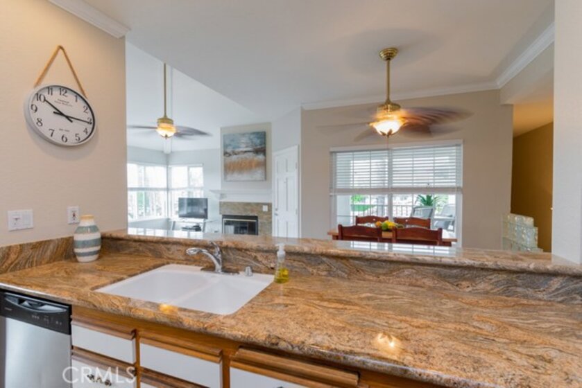 Rancho Santa Margarita is the home of the much sought after community of Casafina. Just outside of the gates of Coto de Caza, this move-in ready, rare corner building location carriage unit with no one above or below and expansive views is now available. This wonderful home has many recent upgrades: dual pane windows, granite kitchen counter tops, crown molding, custom mantle above the ocean blue reflective glass fireplace and an extra deep Koehler soaking tub in hall bathroom. Newly installed carpeting, cordless Levolor cordless blinds and custom paint. The huge master bath suite contains a step in double shower, double sinks and large walk in closet. From your patio enjoy views of the Saddleback Mountains and breathtaking sunrises and sunsets. There is a direct access attached garage and a close reserved parking space, with plenty of guest parking available. Casafina pool and spa are heated year round! Located in the award winning Saddleback Valley School District, Casafina has low HOA's, and no Mello Roos. Adjacent to walking/biking trails, shopping and the 241 toll road, it is priced below the last comparables! Enjoy Central Park activities, the dog park, assorted RSM pools, parks and the beach club our own lake. This is your opportunity to live the Rancho Santa Margarita lifestyle!