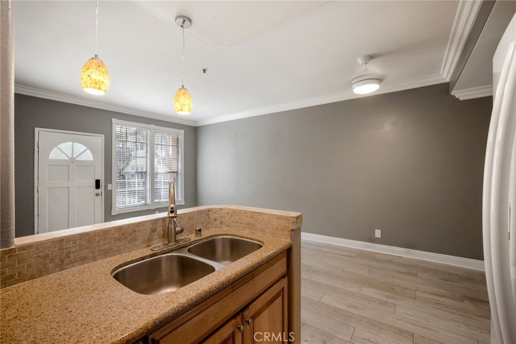 Lovely 2 bedroom, 2 bathroom, 2 story condo with a private front patio entry in the community of Montana Del Lago in Rancho Santa Margarita! Enjoy laminate wood flooring, an inviting fireplace in the family room, and a main floor bedroom. The bedrooms offer walk-in closets, ceiling fans, and a shower-in-tub in the bathrooms. The kitchen features granite countertops, a stylish tile backsplash, a breakfast bar, soft close drawers, and white appliances. Additional property highlights include courtyard views, a stackable laundry closet, crown molding, and a 1 car garage. Community amenities include a swimming pool, spa, and walking paths. Within walking distance to the lake, area shops, restaurants, and easy access to The Toll Roads!