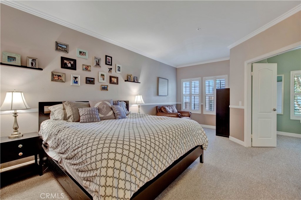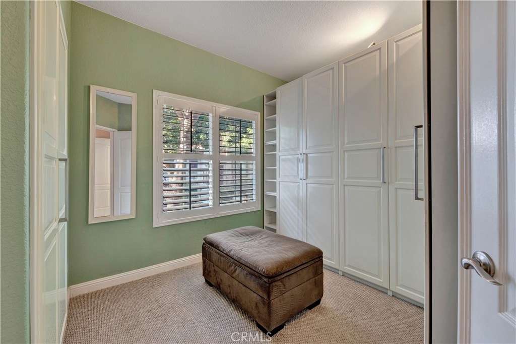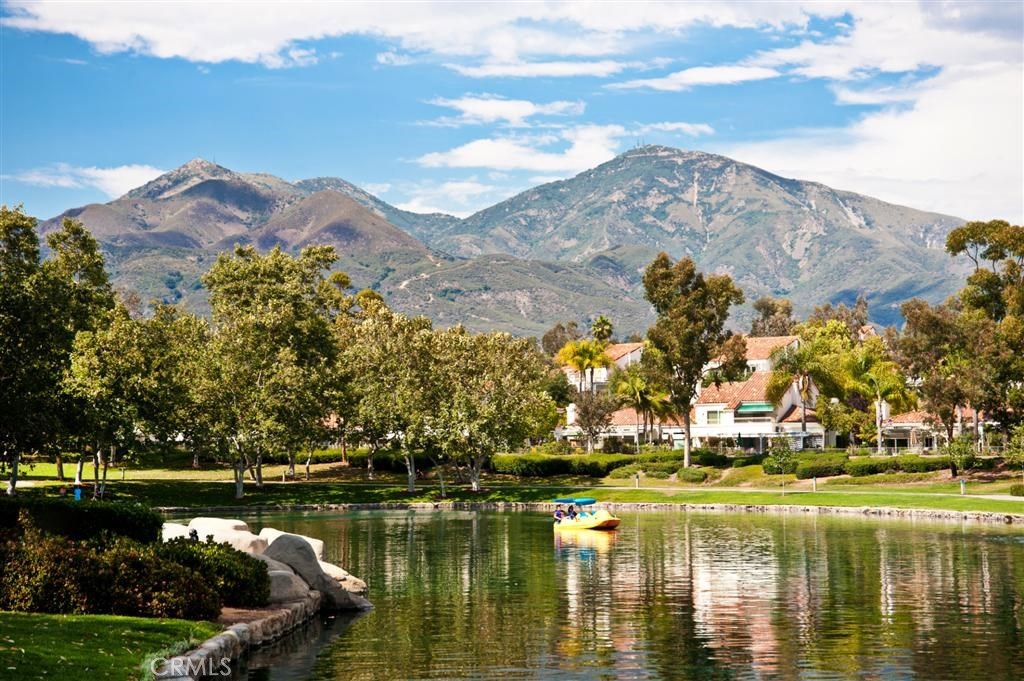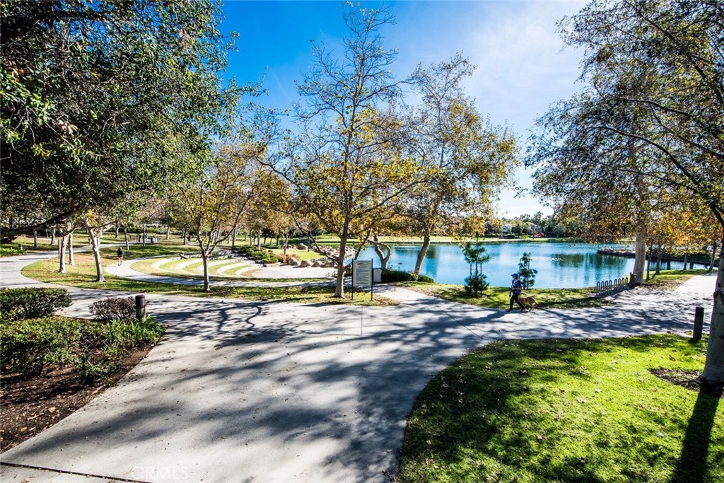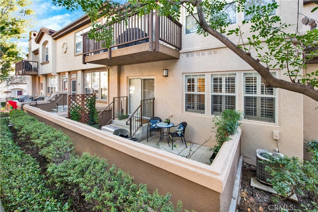 Elegant, Corner lot, enclosed large private patio, one of the best locations, couple of minutes walk to the lake through the community. From every window in the home, it feels very private, boasts of Upgrades. Plantation shutters including sliding doors leading to porch, Kitchen Granite Counters, Stainless Steel appliances, canned lighting, pendant lights, inSinkErator, added storage for dishes or food pantry along back wall, crown molding. This home features an open concept, and allows for a natural flow from the kitchen to the eating area and out to the living room. Enjoy your morning coffee or a BBQ on your private, enclosed porch large enough for patio table and bbq and planters, just off your eating area and Kitchen, that is surrounded with trees. Newly installed high traffic durable carpet is featured throughout the bedrooms and stairs leading down to the 3rd Bedroom which can also be used as a bonus room/office/ den or movie room for example. Originally a 4 bdrm but previous owner made the 4th into a walk in closet but can easily be converted back Master Bedroom features a sitting area and a ensuite/walk-in closet with floor to ceiling built-ins. Both bathrooms feature storage linen closets and bathtub/shower. Direct access to attached 2-Car Tandem Garage. Pride of Ownership throughout this Home. Walk to Community Pool/Spa, restaurants, shops, schools, the lake, hiking and biking trails, parks and so much more. HOA $277 (incl $65.25/mo Rec fee).