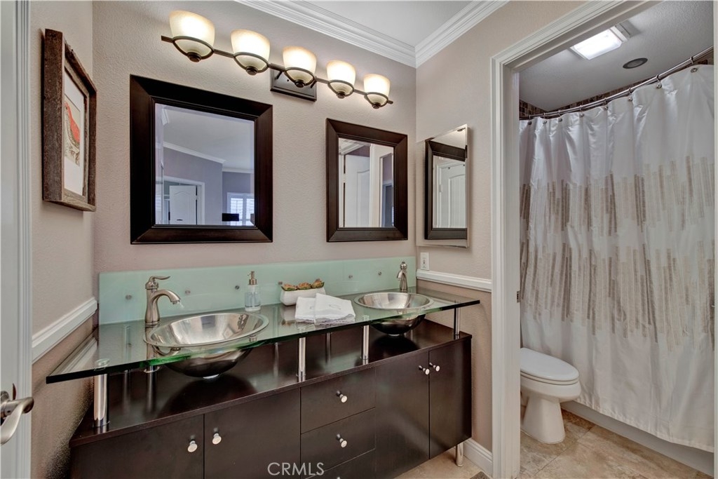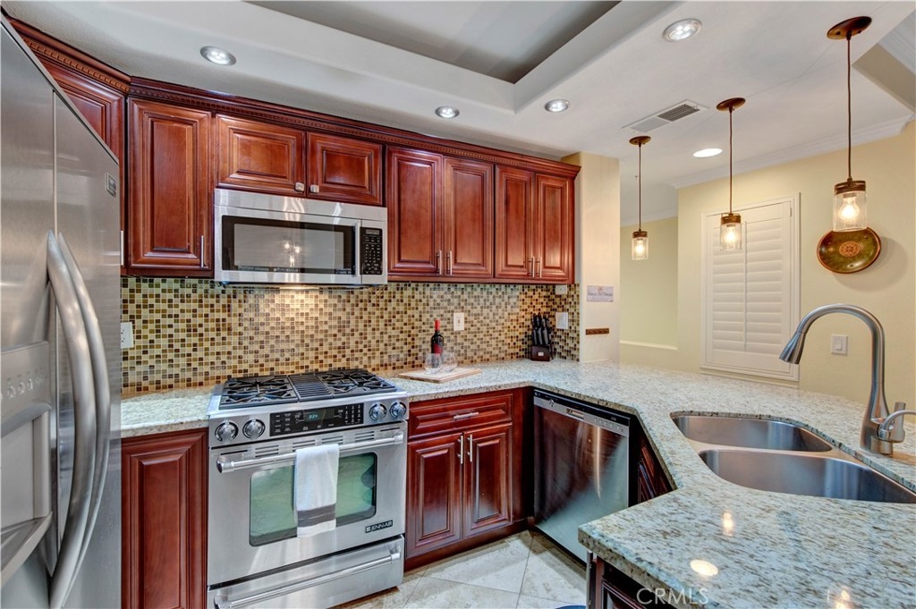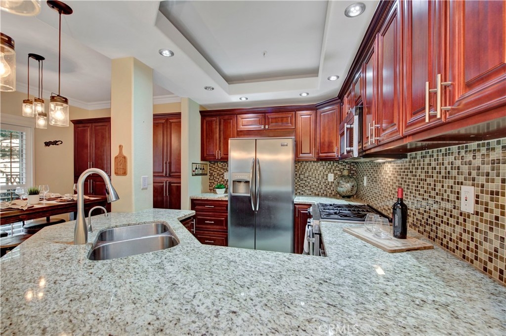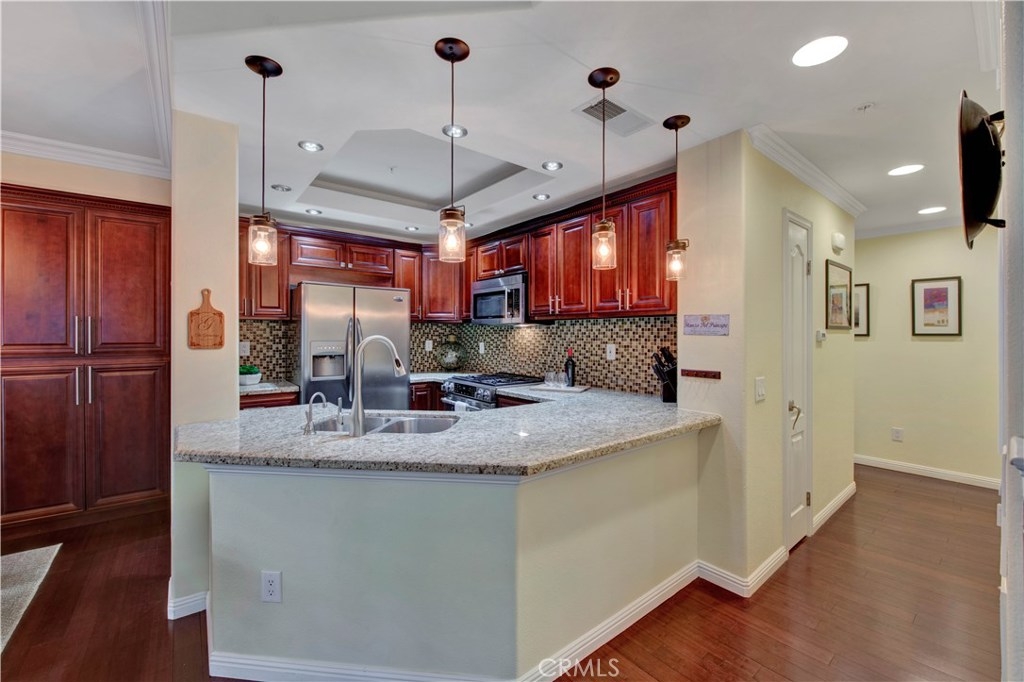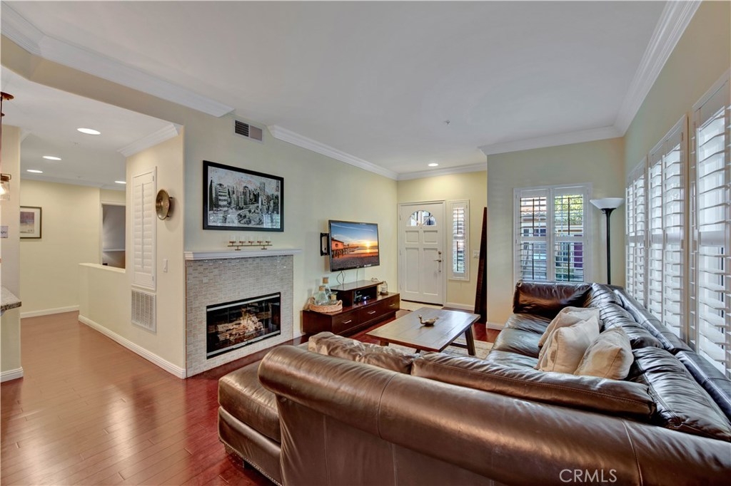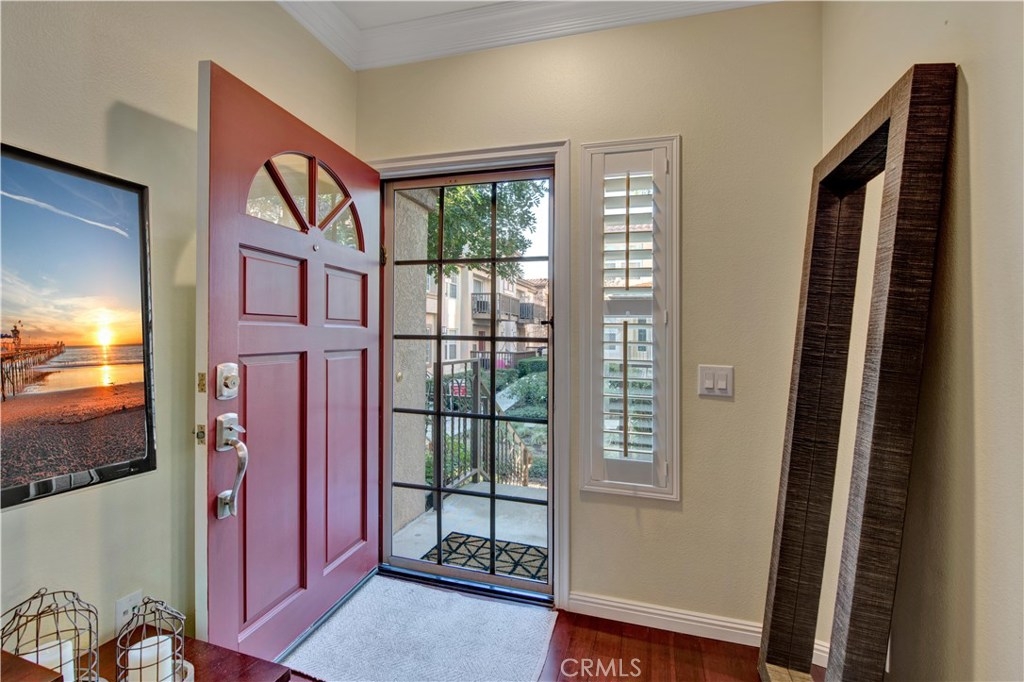 Elegant, Corner lot, enclosed large private patio, one of the best locations, couple of minutes walk to the lake through the community. From every window in the home, it feels very private, boasts of Upgrades. Plantation shutters including sliding doors leading to porch, Kitchen Granite Counters, Stainless Steel appliances, canned lighting, pendant lights, inSinkErator, added storage for dishes or food pantry along back wall, crown molding. This home features an open concept, and allows for a natural flow from the kitchen to the eating area and out to the living room. Enjoy your morning coffee or a BBQ on your private, enclosed porch large enough for patio table and bbq and planters, just off your eating area and Kitchen, that is surrounded with trees. Newly installed high traffic durable carpet is featured throughout the bedrooms and stairs leading down to the 3rd Bedroom which can also be used as a bonus room/office/ den or movie room for example. Originally a 4 bdrm but previous owner made the 4th into a walk in closet but can easily be converted back Master Bedroom features a sitting area and a ensuite/walk-in closet with floor to ceiling built-ins. Both bathrooms feature storage linen closets and bathtub/shower. Direct access to attached 2-Car Tandem Garage. Pride of Ownership throughout this Home. Walk to Community Pool/Spa, restaurants, shops, schools, the lake, hiking and biking trails, parks and so much more. HOA $277 (incl $65.25/mo Rec fee).