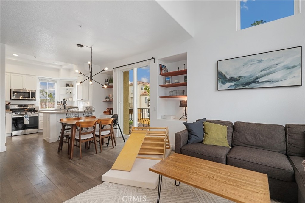 Step into this beautifully remodeled 2-bedroom, 2-bathroom townhome, featuring a bonus room and a host of luxurious upgrades throughout. The property includes a versatile garage, originally designed for two cars, now partially converted into a home office—easily reverted if desired. Located in the prestigious Corte Melina community within the SAMLARC Homeowners Association, you’ll enjoy exclusive access to amenities like the Lago Santa Margarita Beach Club & Lagoon, five stunning pools, and numerous parks. Residents of Rancho Santa Margarita also benefit from public amenities such as the family-friendly Splash Zone and an array of high-end restaurants for a perfect night out. This home highlights the following features; Master suite on the top floor, Second bedroom conveniently located on the main floor, oversized Garage, Newly updated neutral quartz countertops, white cabinetry, and stainless steel appliances. The Open floor plan with high ceilings, abundant natural light, and laminate flooring throughout features a cozy gas fireplace with mosaic tile surround. Not to mention two private balconies for outdoor relaxation. This townhome is ideally situated within walking distance to shops, a luxury movie theater, restaurants, and local schools. Enjoy easy access to RSM Lake, the SAMLARC Beach Club, parks, playgrounds, community pools, and O’Neill Regional Park, all with convenient connections to the 241 and just minutes from the 5 Freeway. Don’t miss the opportunity to make this stunning property your new home!