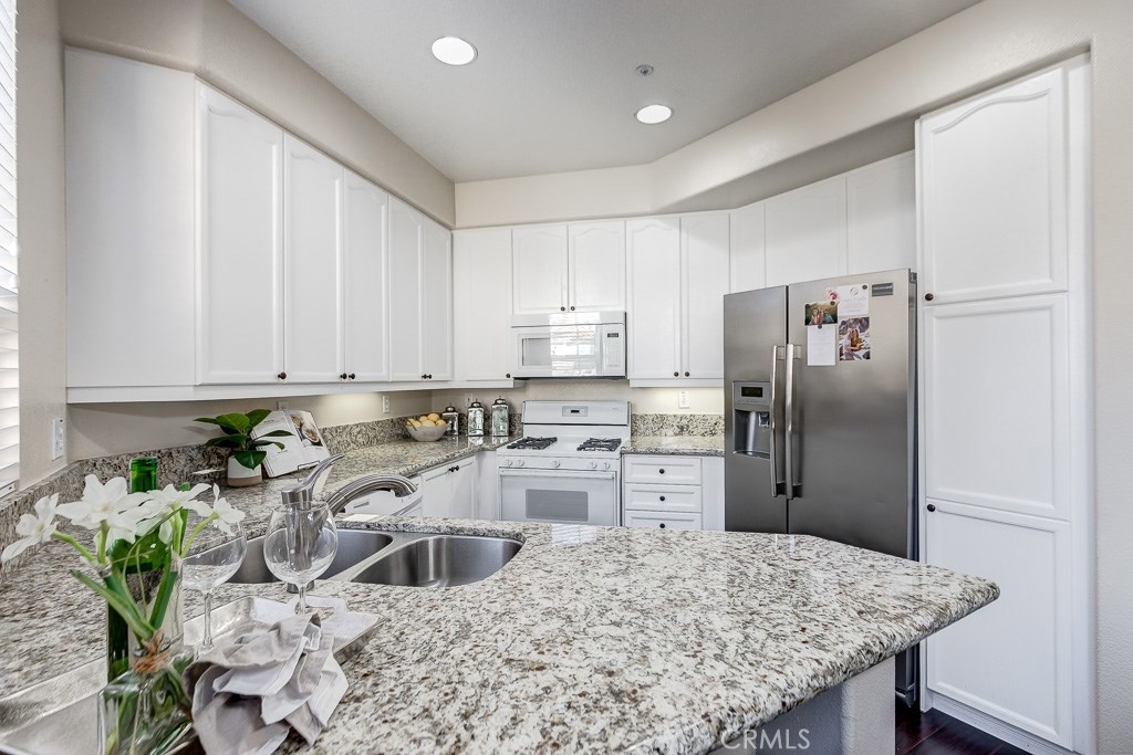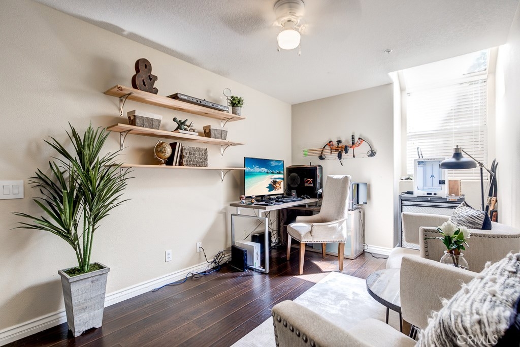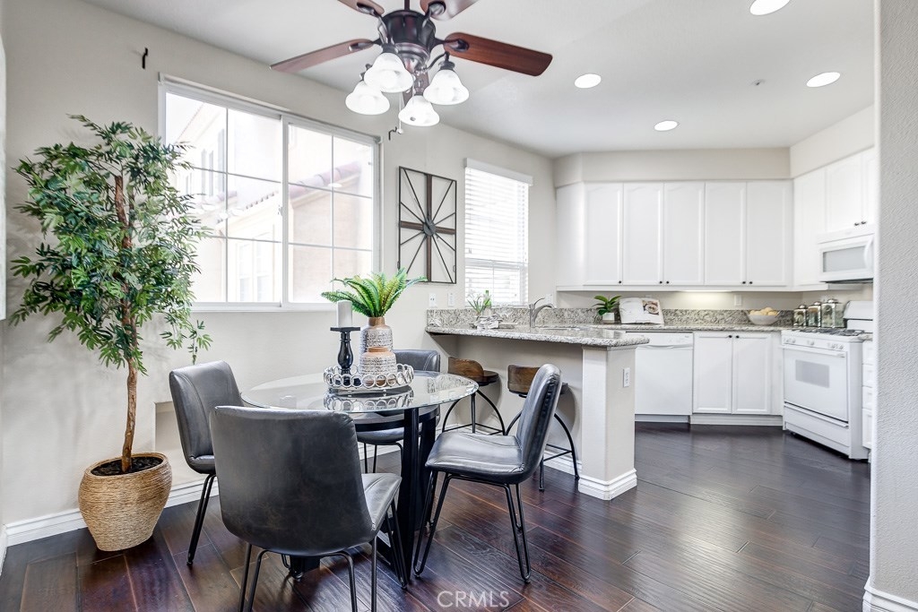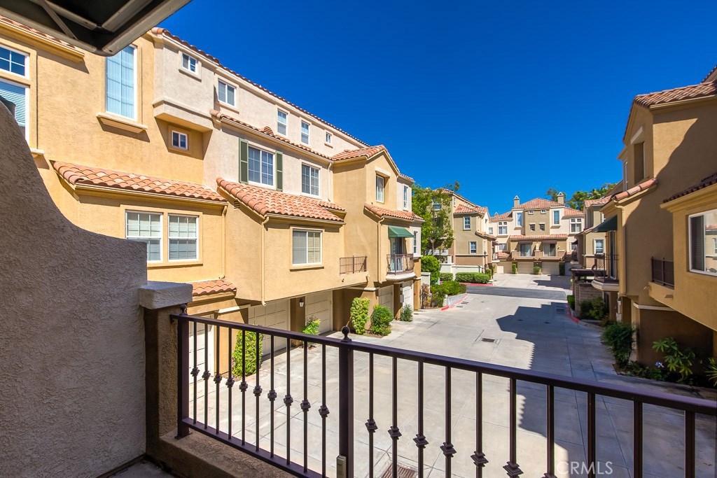 This charming home in the sought after community of Corte Molina will speak to you immediately. Gorgeous wood flooring sweeps through the entire main floor, perfectly anchoring the space. Prepare a meal for friends or loved ones in your beautiful kitchen with white cabinets and light granite counters. A perfectly sized dining area gives the opportunity for formal meals or the breakfast bar is ready for a snack too! On those cooler nights cozy up by your fireplace, or relax with a movie on any occasion. At the end of the day, your master bedroom is spacious and peaceful, with large sliders out to a lovely balcony. Downstairs you will find an extra bedroom, a laundry space and direct access to your one car garage. It's good to be Home!