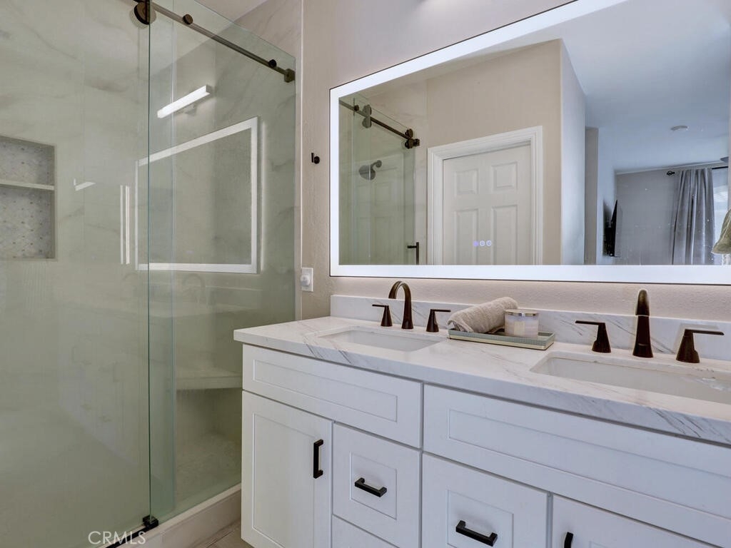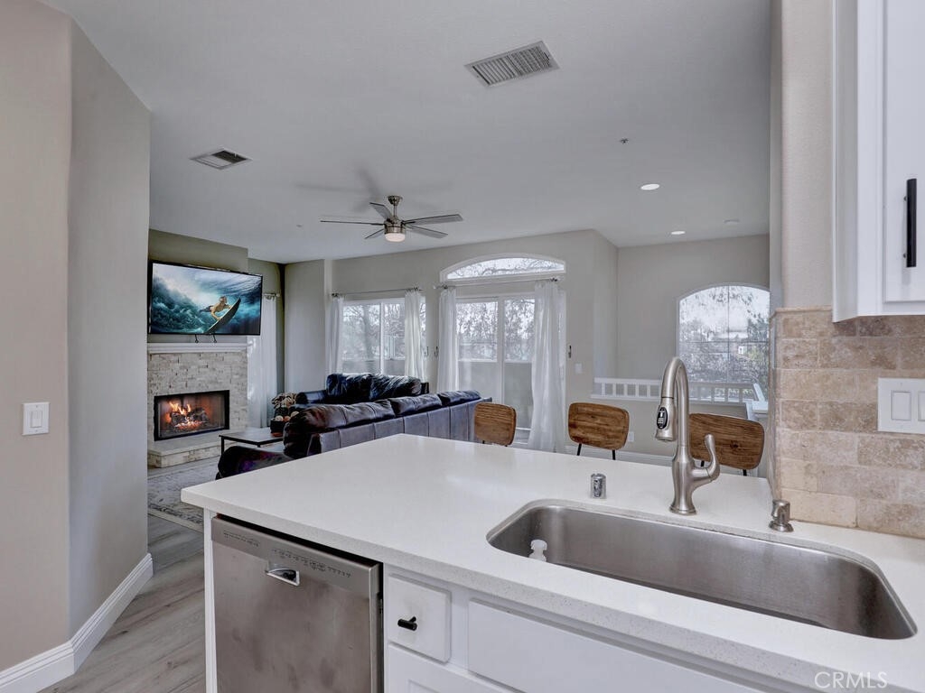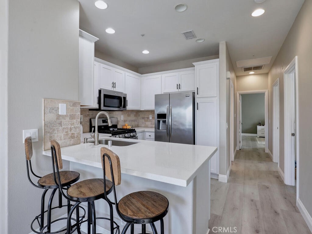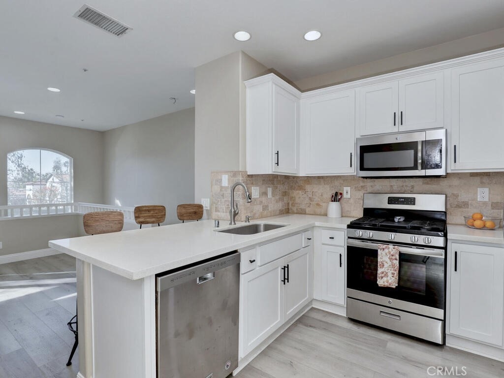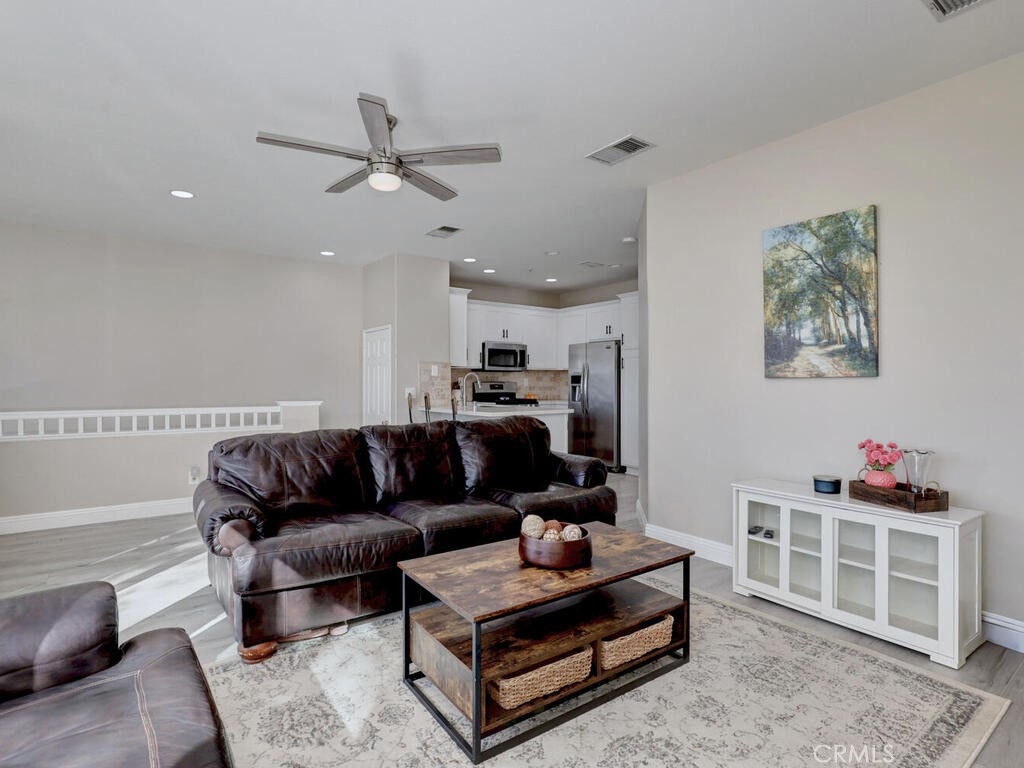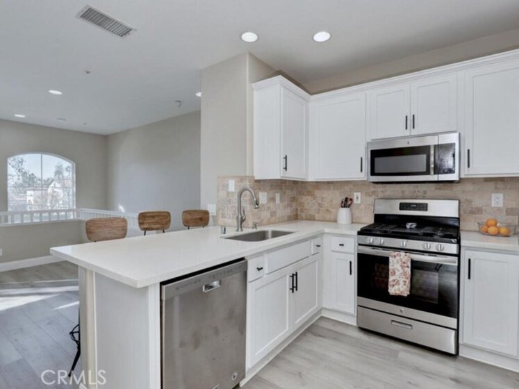 3 Bedroom, 2 full bath Carriage Unit Condo - End unit with no one below or above! Located in the heart of Rancho Mission Viejo, center to the shops and restaurants, concerts in the park, the Lake, and many areas for all sorts of recreation! This home has been renovated with wood style flooring throughout, updated kitchen and bathrooms, added the third bedroom where the space use to be opened on one wall, new baseboards, ceiling fans added to all rooms! Washer and dryer and Refrigerator all included. High ceilings and lots of windows that bring the natural light in! The garage is located below and provides a private entrance into the foyer of the entrance stairs. The complex offers it's own pool, gym, and dog park but residents enjoy the amenities of the City of RSM has to offer!
