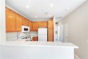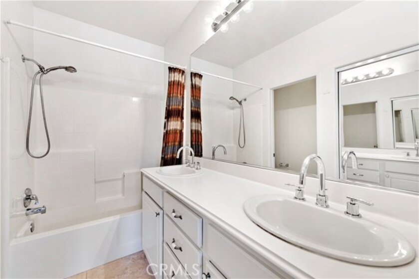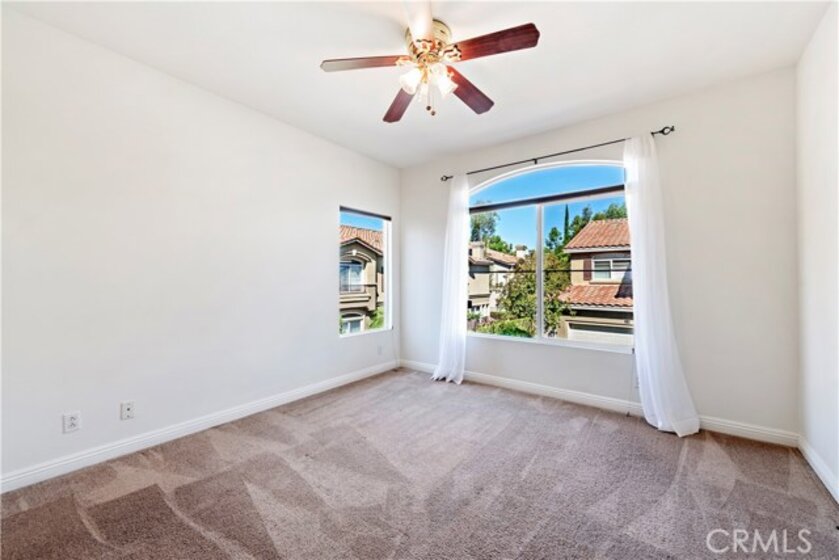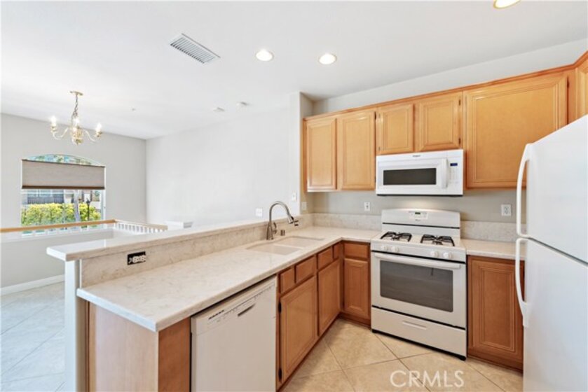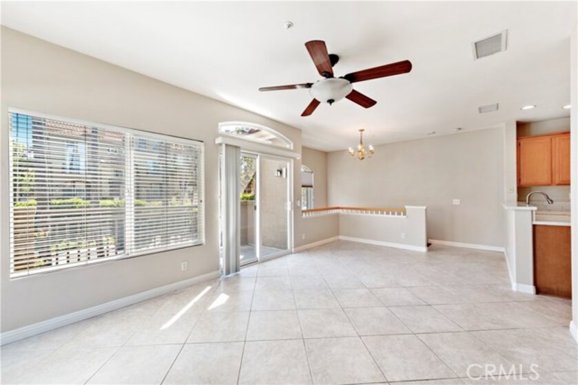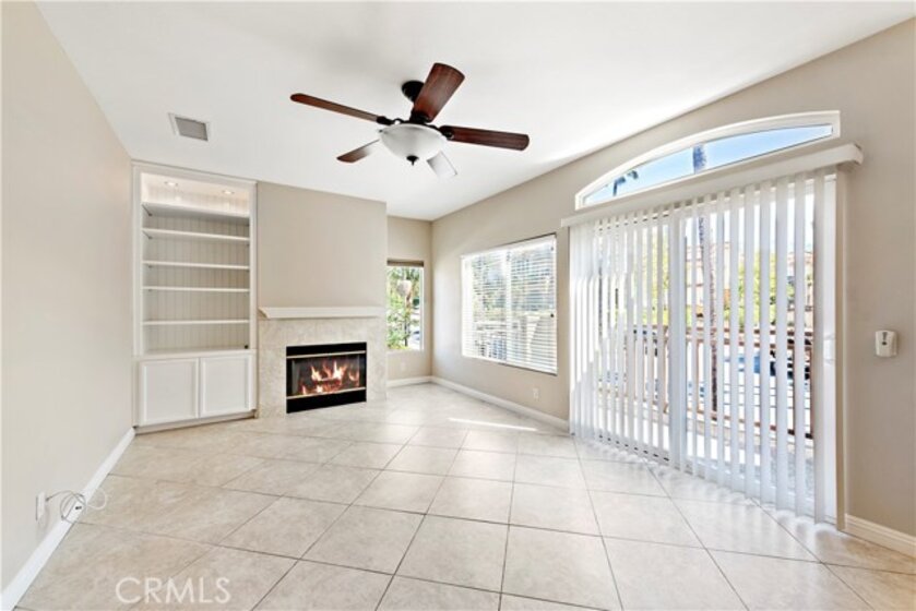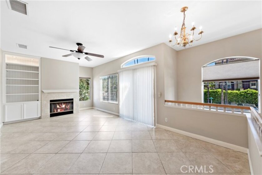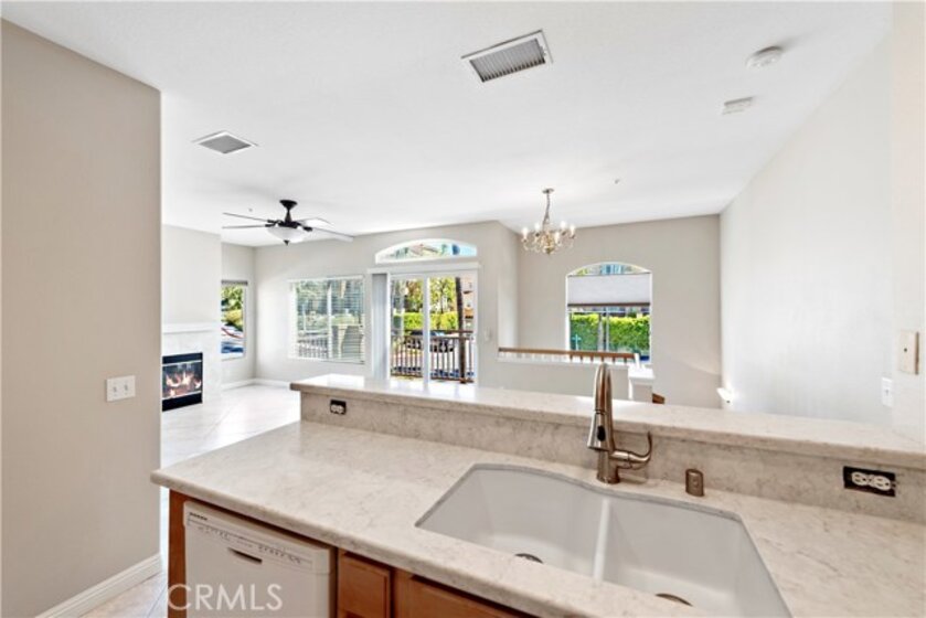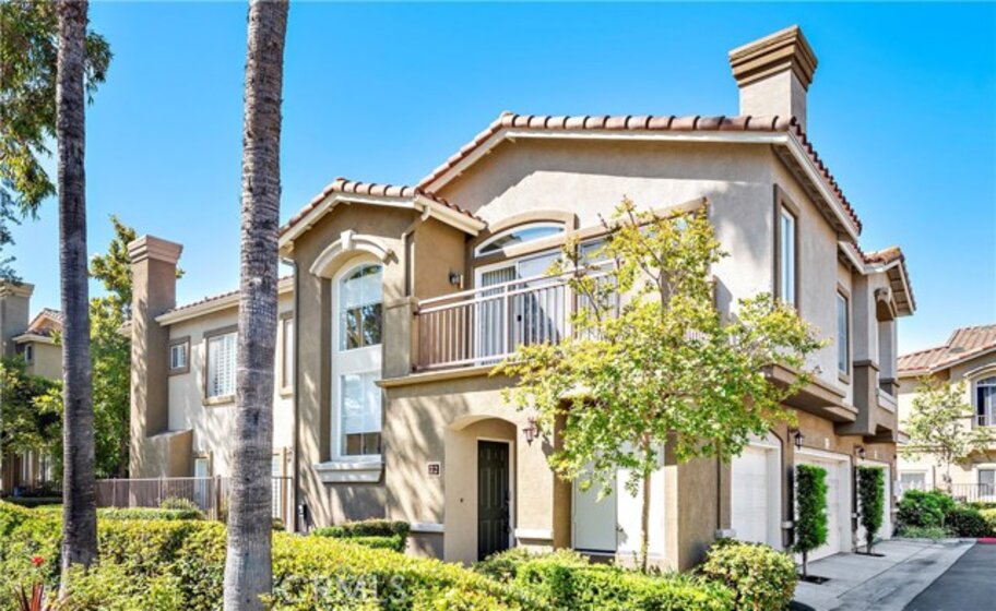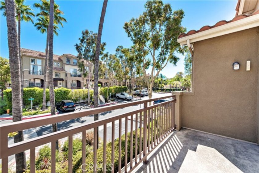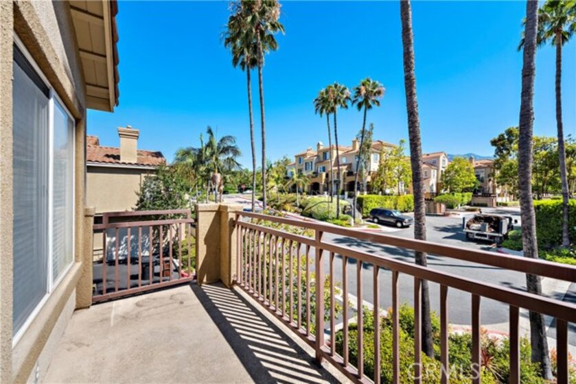 Fantastic location in Rancho Santa Margarita. Walk to shopping, restaurants, park and more! Lovely "carriage style" end unit condo. Lovely living room with custom built-ins, fireplace and slider to large balcony with mountain view. Tile flooring throughout except for bedrooms. New quartz kitchen counter tops. New Range and Microwave, dishwasher and refrigerator. Inset lighting and ceiling fans in living room and both bedrooms. Spacious master bedroom with attached master bath with dual sinks and tub and shower. Large walk in closet. Secondary bedroom with mirrored wardrobe doors and nearby full hall bath. Direct access 1 car garage with new opener PLUS reserved car space. Washer and dryer hookup in garage. Washer and dryer provided , without warranty. Central AC and forced air heating. Neutral decor and move in ready! Steps from community pool and spa. Wonderful Rancho Santa Margarita amenities, Lake, pools and more.