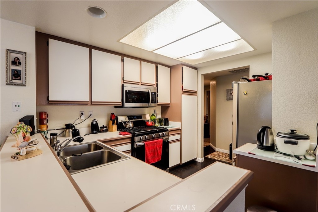 Welcome to this charming one-level nestled in the heart of Rancho Santa Margarita, CA. Offering 2 bedrooms, 2 bathrooms, and a generous 1,047 sqft of living space, this residence provides a delightful blend of comfort and style. The attached garage ensures convenient parking, granting easy access to your new abode. Upon entering, a spacious living room welcomes you with a cozy fireplace, creating the perfect ambiance for relaxation. Large sliding glass doors seamlessly connect the indoor and outdoor spaces, leading to a private patio where you can enjoy serene green belt views. The well-designed kitchen, adjacent to the dining area, forms the heart of the home and sets the stage for culinary delights. Enhanced by upgraded flooring and baseboards, this home offers a canvas for personalization. The master bedroom is a retreat in itself, featuring access to a private patio, dual mirrored closets, and an en-suite bathroom with a double vanity adorned with upgraded granite countertops. The second bedroom is generously sized and includes mirrored closet doors and interior closet organization. The guest bathroom showcases a beautifully upgraded shower, adding a touch of luxury. Convenience meets functionality with in-home laundry facilities, while ample linen and cabinet storage space ensures a clutter-free living environment. This property is not just a home; it's an opportunity to create a haven uniquely yours. Beyond the doorstep, discover the convenience of top-rated schools, entertainment options, dining establishments, and shopping destinations just moments away. Enjoy the lifestyle Rancho Santa Margarita has to offer with community amenities, including multiple pools, a lap pool, spa, lagoon with a lake, tennis courts, picnic areas, and more courtesy of the SAMLARC community.