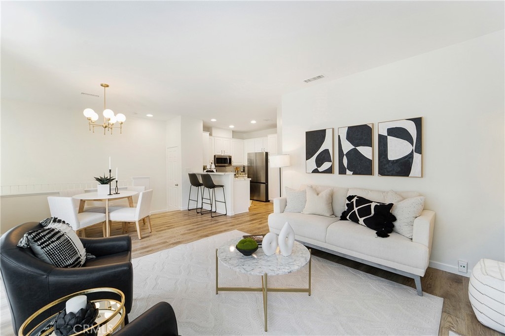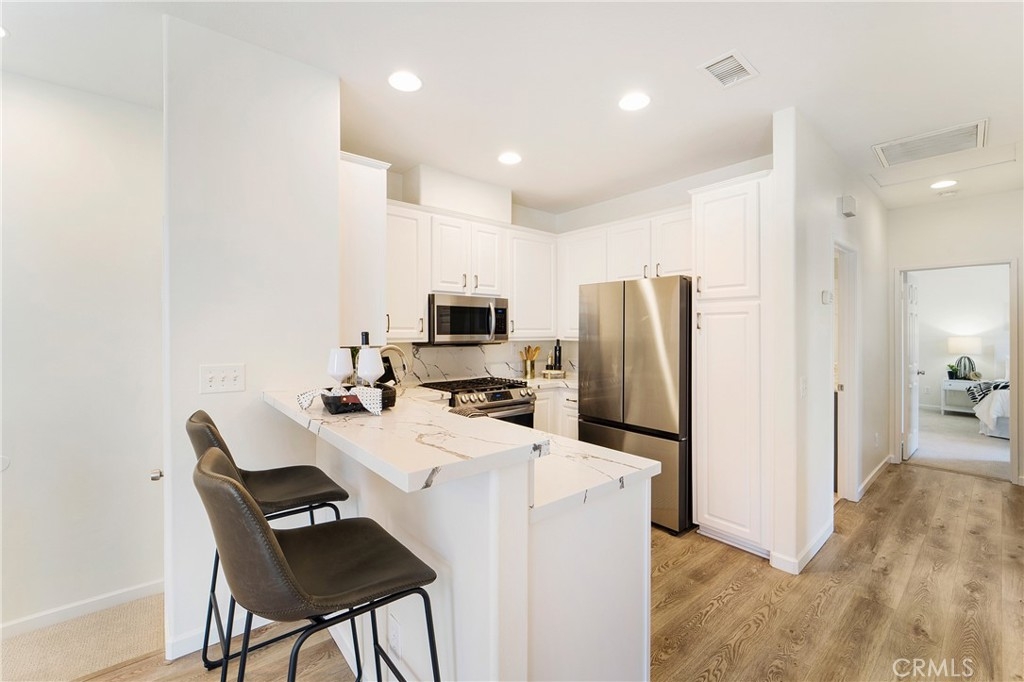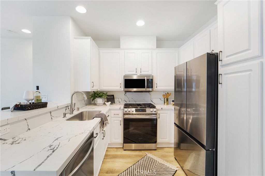 Come experience this GORGEOUS 3-bedroom 2-bathroom home nestled in the Bella Ventana community of RSM. 62 POMELO is a turn-key condo that offers an open floor plan with a ton of natural light along with vinyl wood flooring, new carpet and paint, and recessed lighting. The BEAUTIFUL kitchen includes quartz counters and a breakfast bar, white cabinets and stainless steel appliances. The primary bedroom shines with new carpet and paint, a walk-in closet and its own en-suite bathroom. The direct access 1-car garage has laundry hook ups and room for storage. Access to Rancho Santa Margarita's master-planned community amenities like the beach club, lake, tennis courts, pools, trails, and much more are included with your HOA dues. Other amenities include dog park, skate park, hiking and biking trails steps away as well as distinguished schools, low taxes, and no Mello Roos. Schedule to see this beauty today!