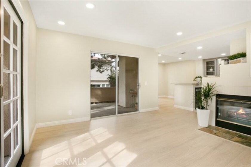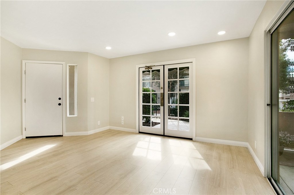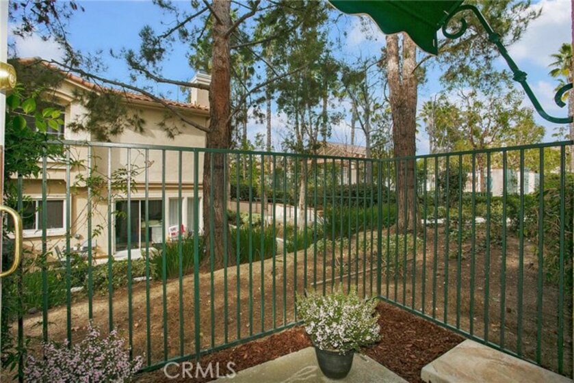 Light and Bright 2 bedroom 2 bath condominium with 4 patios! This corner unit was a former model and includes 2 sets of custom french doors and awnings not found in other units. Remodeled kitchen with custom cabinets, new stainless appliances including 5 burner gas range and refrigerator. Remodeled baths with double vanity and separate tub and shower in the master. Both large bedrooms have mirror wardrobe doors with his and her closets in the master. Other upgrades include new laminate flooring, LED recessed lighting, new fixtures, door hardware and upgraded baseboards throughout. Freshly painted attached garage plus a reserved parking space conveniently located just outside. Member of SAMLARC with pools, tennis courts, parks, picnic areas, boat rentals, beach club and a splash pad water park coming soon! walking distance to hiking and biking trails and park with tot lot, tennis, sand volleyball and picnic areas. Highly rated award winning schools. Centrally located near shopping, cinemas, restaurants and the 241 toll road. LOW HOA!
