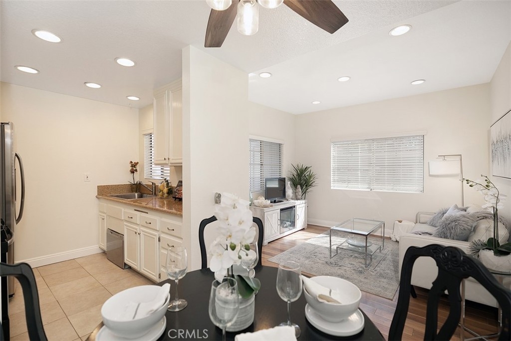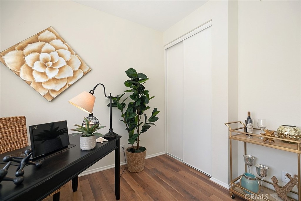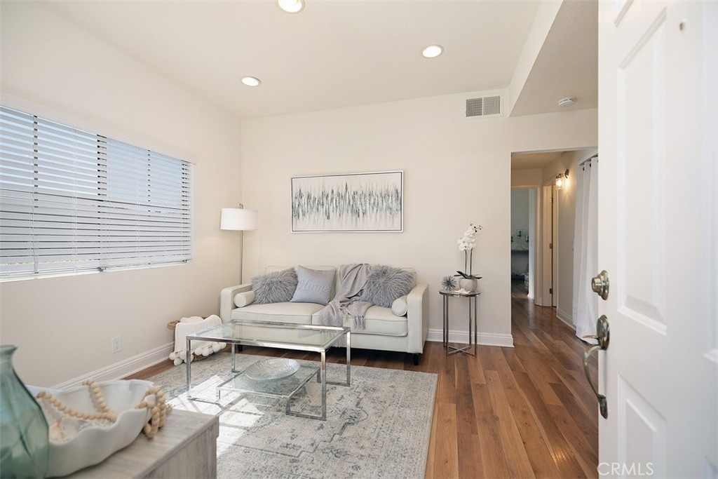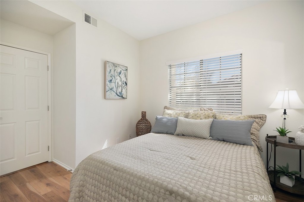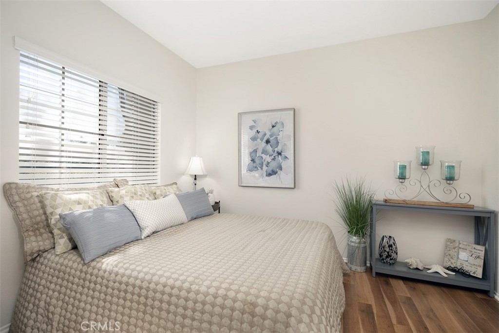 Location! Location! Location! Wonderful opportunity for a turnkey ground level unit at a GREAT VALUE... Available NOW in the desirable community of Las Flores III! This gorgeous corner unit is so LIGHT and BRIGHT... and CLEAN! Enjoy a freshy painted floor plan, complete with upgraded laminate flooring throughout provides single level living at its finest. Interior of floor plan includes a spacious living room leading to dining area and upgraded galley kitchen with granite counters, highly desired White cabinetry, stainless steel appliances and newer fixtures. Two bedrooms each with sliding closet doors, a full bathroom and interior laundry closet with stackable washer and dryer also included. Newer window blinds installed throughout and a Newer Air conditioner and Water Heater. Outdoor living space includes a welcoming covered porch area with charming entry gate access. Reserved covered carport space within close proximity to property as well as one more parking space in open parking area. Located in a convenient location to allow enjoyment of nearby community pool and spa as well as access to all of the amenities available to residents of the Rancho Santa Margarita community including beach club, sport courts, parks, shopping and dining. Low HOA and property taxes. DONT MISS THIS ONE!!