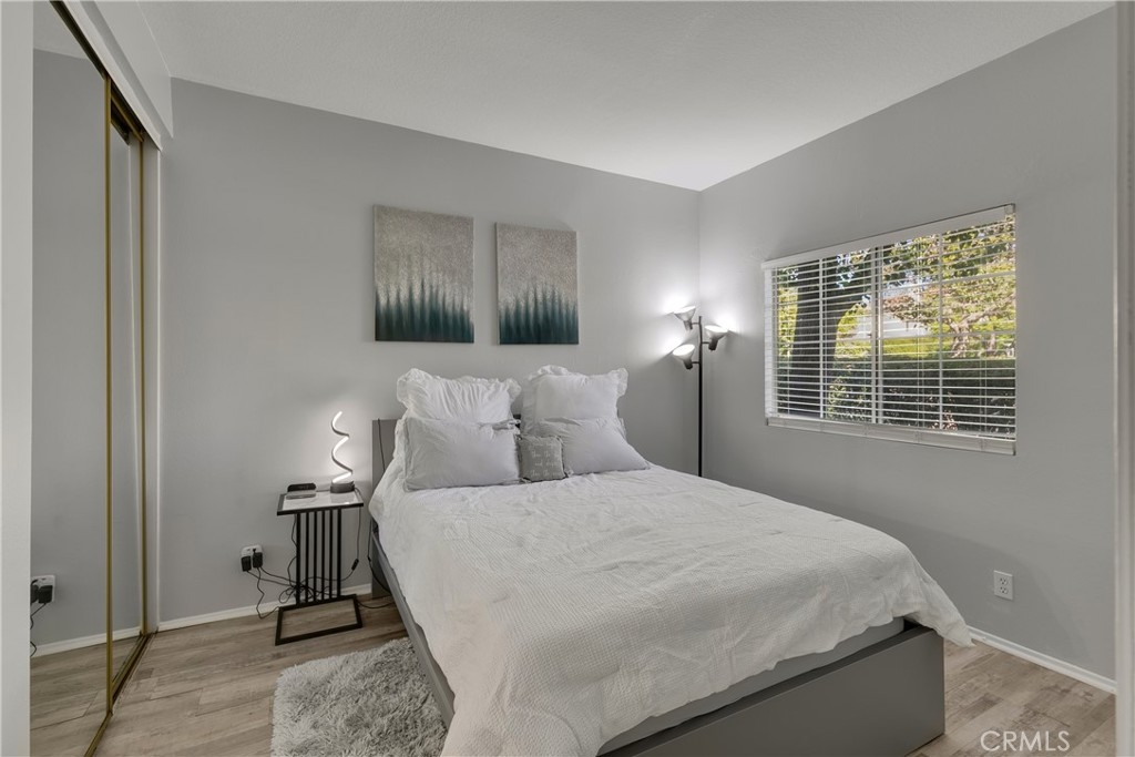 Recently upgraded condo with new flooring, countertops, backsplash, and stainless steel appliances! The kitchen has an upgraded quartz countertops with a complimentary pebble backsplash, all with a brand new energy efficient dishwasher. This unit is located in a great location and offers an incredible opportunity to own a corner unit 2 bedroom, 2 bathroom condo in the heart of gorgeous Rancho Santa Margarita. One of the best floorplans in the community and features almost just over 800 square feet. Both bedrooms are separated by a spacious living room, kitchen, and dining room. Enjoy the covered private patio with outside storage closet, as well as the excellent location near the community pool and spa. Centrally located within the SAMLARC community that includes 13 community parks, 4 pools, the Beach Club Lagoon, and the Lago Santa Margarita. Within walking distance to shops, grocery stores, restaurants, top-rated schools, and more! Easy access to the 241 Foothill Transportation Corridor.