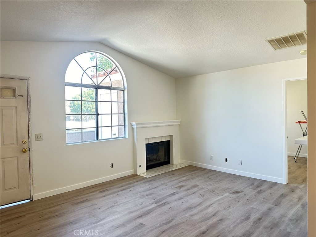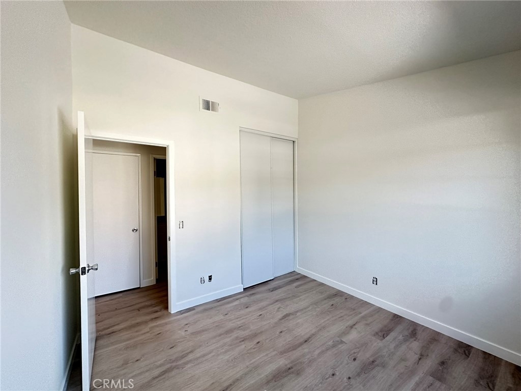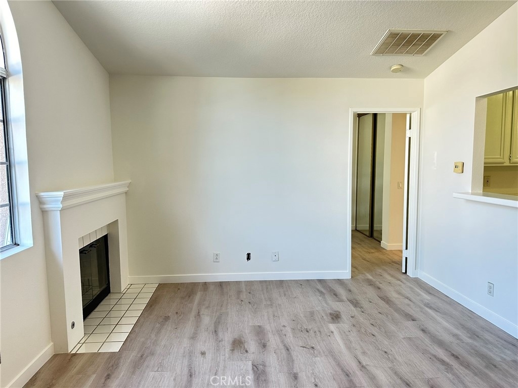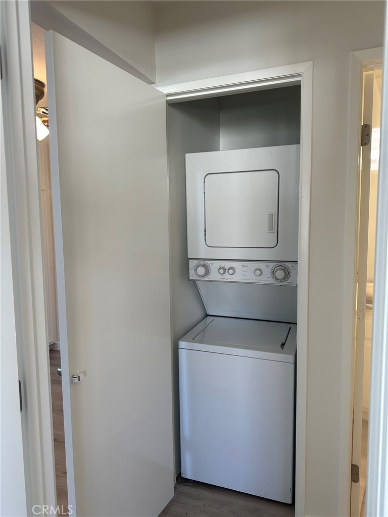 lowest priced 2 bed 2 bath home in Rancho Santa Margarita. It has New Luxury Vinyl flooring through out, new interior paint, tall craftsman style baseboards. Spacious living room with a gas burning fireplace. The dining area includes a ceiling fan. The kitchen includes a gas stove and is open to the living room. Primary suite includes 2 large closets each with mirrored closet doors. Full bath includes shower over tub. Full sized closet includes stacked washer and dryer. Front patio includes a storage area. Rancho Santa Margarita has been named the #1 safest city in California by SafeWise. Las Flores III includes a resort style pool and spa. Shopping and dining are close by. Rancho Santa Margarita Lake is only 1.3 miles away and provides fitness stations, fishing spots, kayak and pedal boat rentals, amphitheater and includes several events throughout the year including July 4 event. Award winning schools.