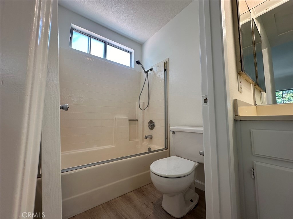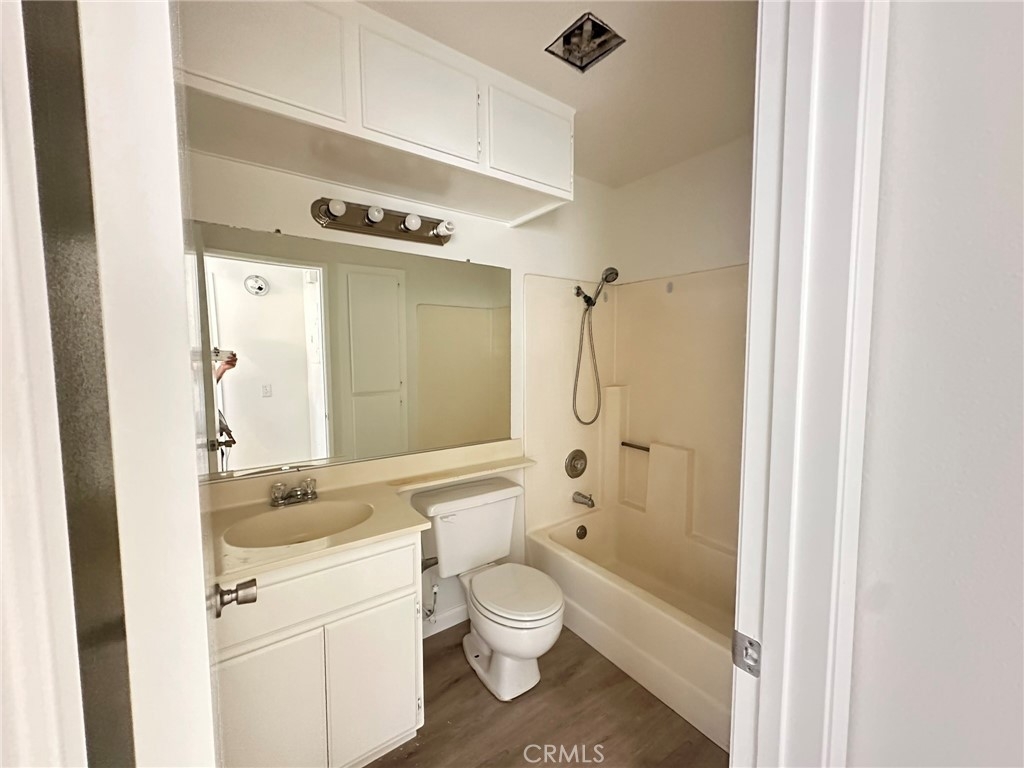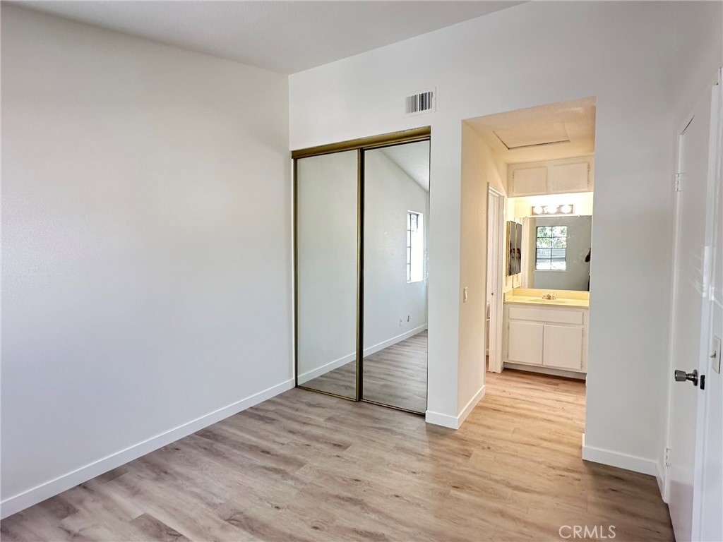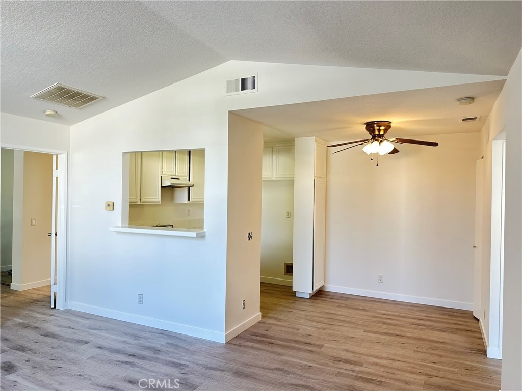 lowest priced 2 bed 2 bath home in Rancho Santa Margarita. It has New Luxury Vinyl flooring through out, new interior paint, tall craftsman style baseboards. Spacious living room with a gas burning fireplace. The dining area includes a ceiling fan. The kitchen includes a gas stove and is open to the living room. Primary suite includes 2 large closets each with mirrored closet doors. Full bath includes shower over tub. Full sized closet includes stacked washer and dryer. Front patio includes a storage area. Rancho Santa Margarita has been named the #1 safest city in California by SafeWise. Las Flores III includes a resort style pool and spa. Shopping and dining are close by. Rancho Santa Margarita Lake is only 1.3 miles away and provides fitness stations, fishing spots, kayak and pedal boat rentals, amphitheater and includes several events throughout the year including July 4 event. Award winning schools.