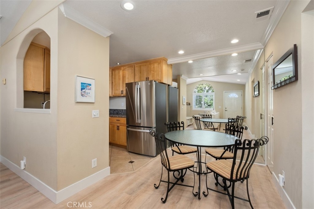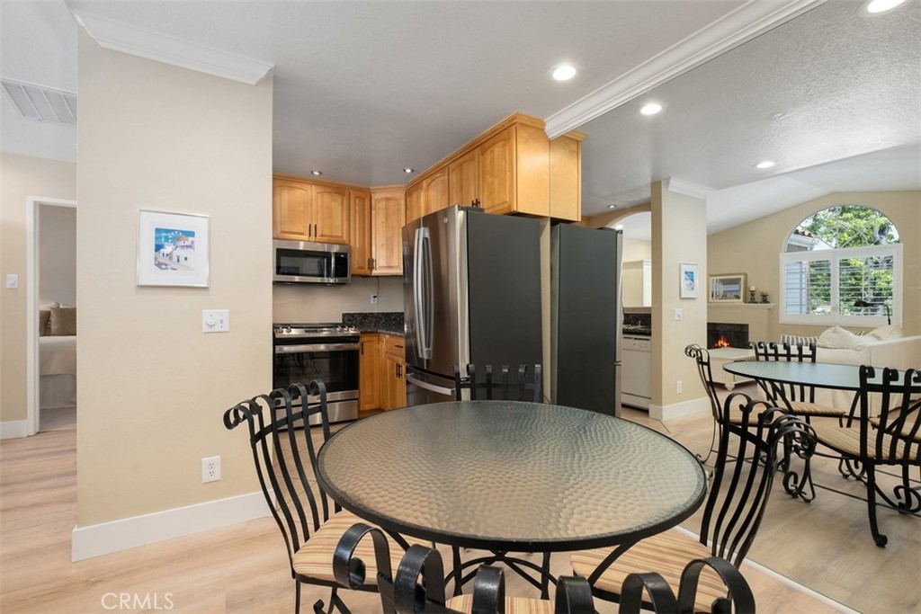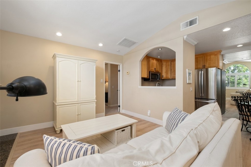 Welcome to your dream home in the heart of Rancho Santa Margarita! This beautiful upper-unit condo offers 808 square feet of modern living space, featuring 2 spacious bedrooms and 2 full bathrooms. With high ceilings and recessed lighting throughout, the home feels bright and airy from the moment you step inside. The open-concept living area boasts white oak LVP flooring, creating a seamless flow from the living room to the upgraded kitchen. The kitchen is a chef’s delight, equipped with stainless steel appliances, ample cabinet space, and stylish granite countertops. Both bathrooms have been tastefully updated, with elegant fixtures and finishes. The master suite offers a serene retreat with its own en-suite bathroom and ample closet space. Step outside to your private porch and enjoy the breathtaking mountain views – the perfect spot for morning coffee or evening relaxation. Additional features include a cozy fireplace in the living area, ideal for those cooler nights. Situated in a prime location, this condo is just a short distance from local amenities, shopping, dining, and top-rated schools. Enjoy the best of Southern California living with access to community pools, parks, and hiking trails. Don’t miss this opportunity to own a piece of paradise in Rancho Santa Margarita! Schedule your private tour today and experience the charm and comfort this home has to offer.