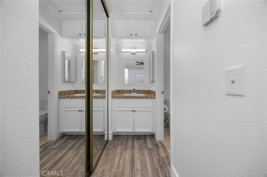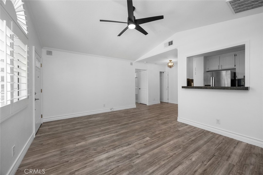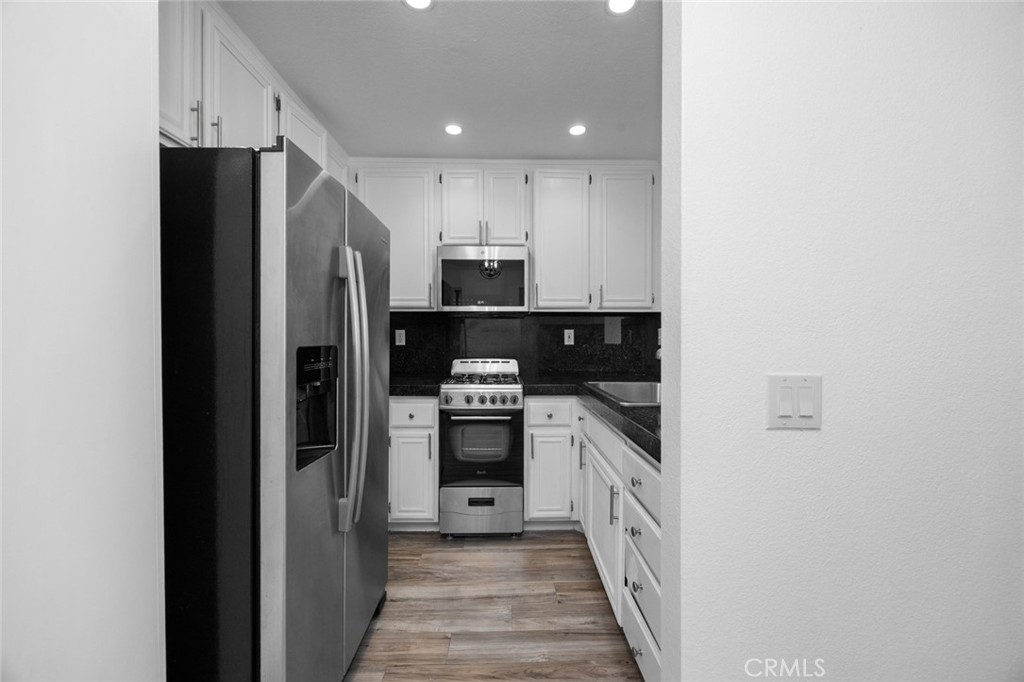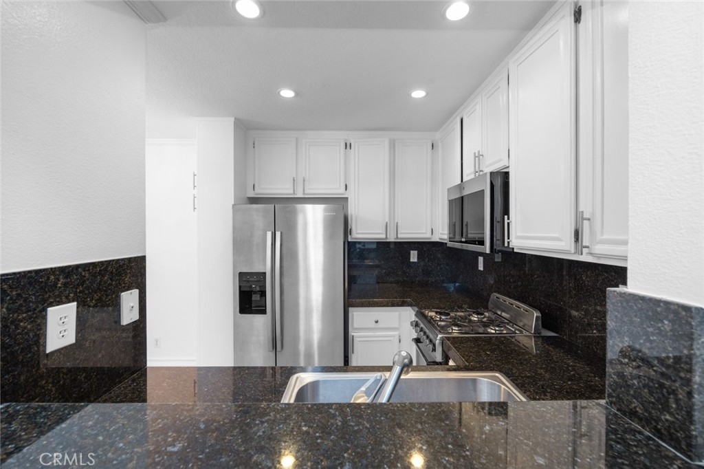 A great opportunity to own your own condo, one of the cleanest 2 bedroom and 2 bath with fantastic mountain views from the patio in this community. This home is completely refreshed with a remodeled kitchen, newer counters, newer sink, stainless appliances, vinyl flooring throughout, new recessed LED lighting and plantation shutters. In the bathroom you will find newer flooring, vanity with granite countertop, new sink, new mirror and lighting and a tub and shower. The master bedrooms feature sliding mirrored closet doors and closet organizers. The kitchen has a stainless French door refrigerator ,stone countertops and a vented microwave with contemporary recessed LED lighting. A stackable washer and dryer is included in unit. It is almost like a new home. No expense spared. Being a second-floor home, there is no one above you and the unit has higher ceilings and tons of light. All windows have plantation shutters, Large outdoor deck and storage closet on the patio. Home includes one covered carport and additional parking on the premises.Residents of Las Flores III enjoy private access to an on-site community pool, along with full membership to SAMLARC’s impressive array of amenities. These include the Beach Club & Lagoon, multiple swimming pools, sports courts for tennis, pickleball, and basketball, scenic walking and biking trails, beautifully maintained parks, shaded picnic areas, community clubhouses, outdoor amphitheater, and the fun-filled Central Park splash pad. Ideally located close to acclaimed schools, popular shopping centers, local dining spots, and easy access to the 241 Toll Road, this residence offers a lifestyle of ease and accessibility, set within a community known for its exceptional amenities and welcoming atmosphere.