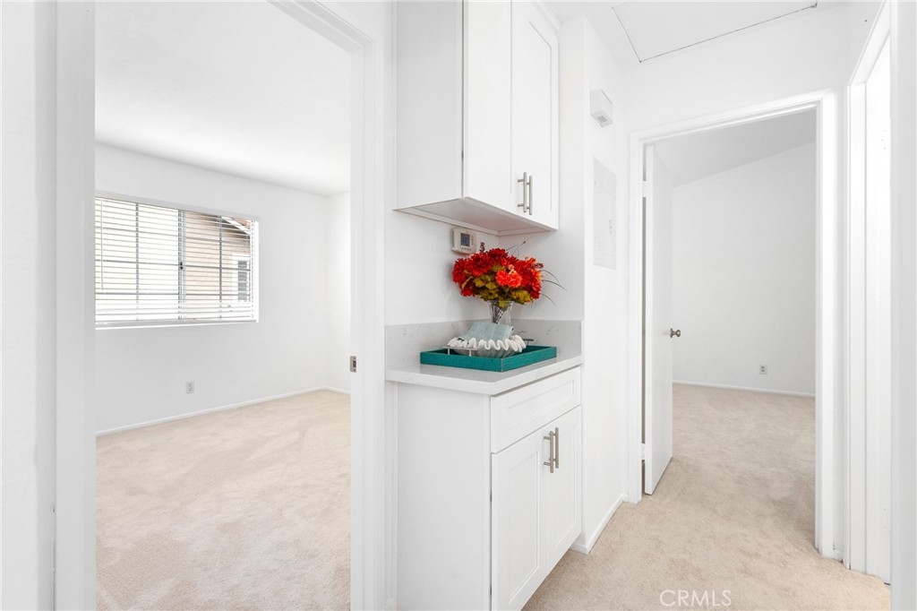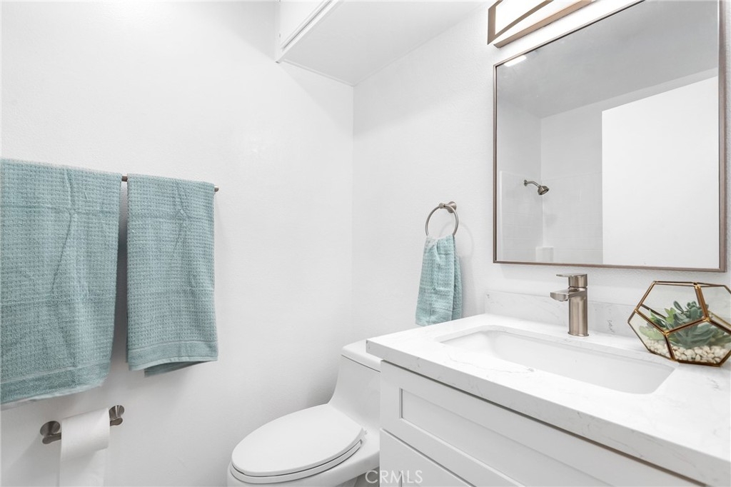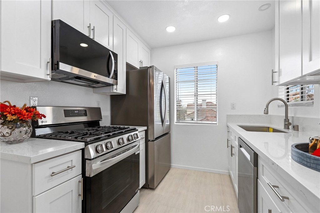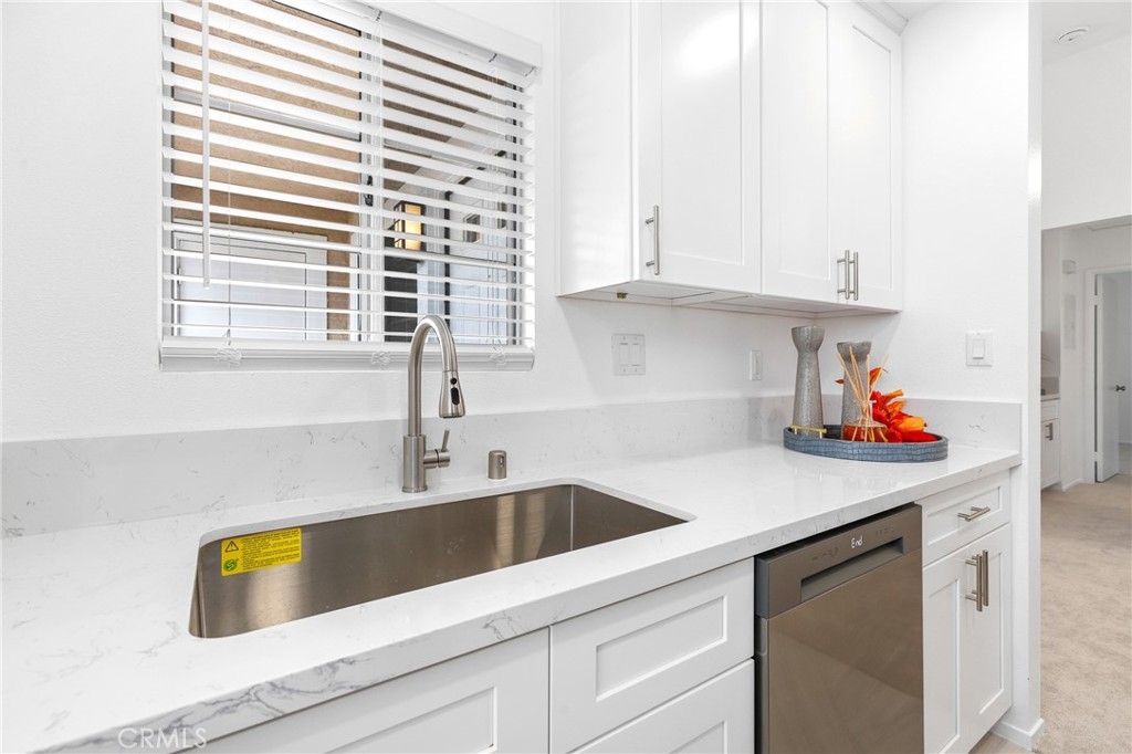 A GREAT opportunity to own your own condo, one of the cleanest 2 bedroom and one bath with fantastic sunset views from the deck in this community. This one owner home is completely refreshed with a completely NEW kitchen, new cabinets, new counters, new sink, new stainless appliances, new tile flooring, new recessed LED lighting and new blinds. In the bathroom you will find new tile flooring, new vanity, new sink, new mirror and lighting and a freshly glazed shower and tub with new accents and covers. For sound proofing new stainmaster carpet in the living room and bedrooms. The two bedrooms feature new sliding mirrored closet doors and all fresh paint throughout. The kitchen has a stainless French door refrigerator, built-in full-size dishwasher, full size range with a vented microwave with contemporary recessed LED lighting. A stackable washer and dryer in unit!! It is almost like a new home. No expense spared. Being a second-floor home, there is no one above you and the unit has higher ceilings and tons of light. Large outdoor deck and storage closet on the patio. Home includes one covered carport and additional parking on the premises. Great home for owner or investors. Enjoy all the benefits of the SAMLARC association with many community parks, pools, The Beach club lagoon and Lago Santa Margarita. Walking distance to restaurants, coffee, shopping and gyms. Enjoy your life in Rancho in this great condo.