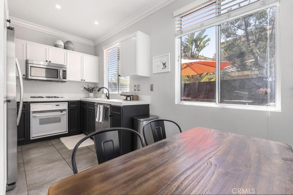 Located in the awesome community of RSM, this charming 2 bedroom 2.5 bath home is sure to please. Custom-built fireplace, remodeled kitchen, built-in microwave, stainless steel dishwasher, and dining nook. Head upstairs and unwind in the master bed/ bath combo. Guest bedroom has spacious walk-in closet. Additional full bathroom also upstairs for overnight guests. Half-bath on main floor for guests. 5 ½ inch custom crown molding throughout. Private entertainer’s backyard with built in BBQ and sit up bar, play area plus eating area to enjoy summer fun! and ample bar space. Two car garage is equipped with workbench and bonus storage. Community gives access to 12 different parks, 4 different swimming pools, a beach club lagoon, the RSM lake, several hiking trails, and is walking distance to the town center with lots of fun restaurants. This community is part of Saddleback Valley Unified School District.