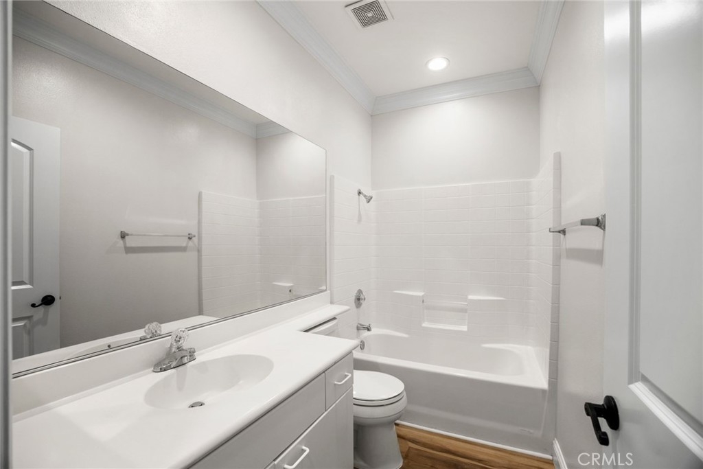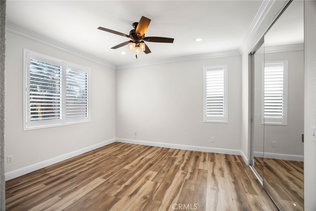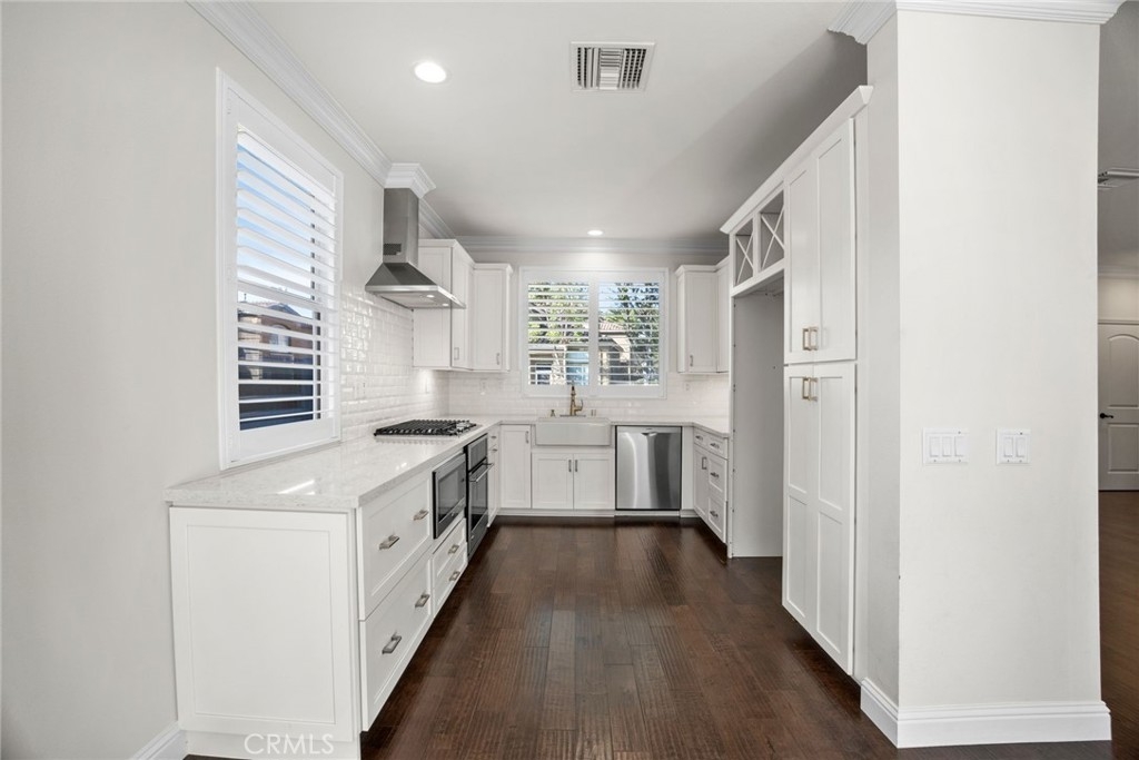 Beautiful 4 bedroom, 2.5 bathroom, 2 story home in the community of Los Abanicos in Rancho Santa Margarita! Enjoy high ceilings, wood flooring, an inviting fireplace in the living room, and a gourmet kitchen. The kitchen offers elegant white countertops, white cabinetry, and a breakfast nook. The primary bedroom features a spacious closet, a walk-in shower in the primary bathroom, and a separate tub. Sliding doors lead to the charming outdoor patio with a dog run and plenty of room for outdoor entertaining. Additional property highlights include shutters, garage laundry hookups, and a 2 car garage. Community amenities include a swimming pool, spa, walking paths, playgrounds, and more. Within walking distance to nearby parks, trails, and convenient to area markets, dining, and The Toll Roads!