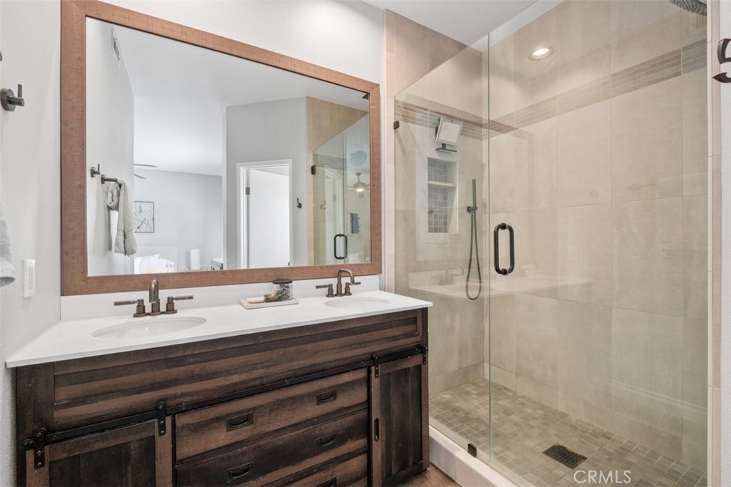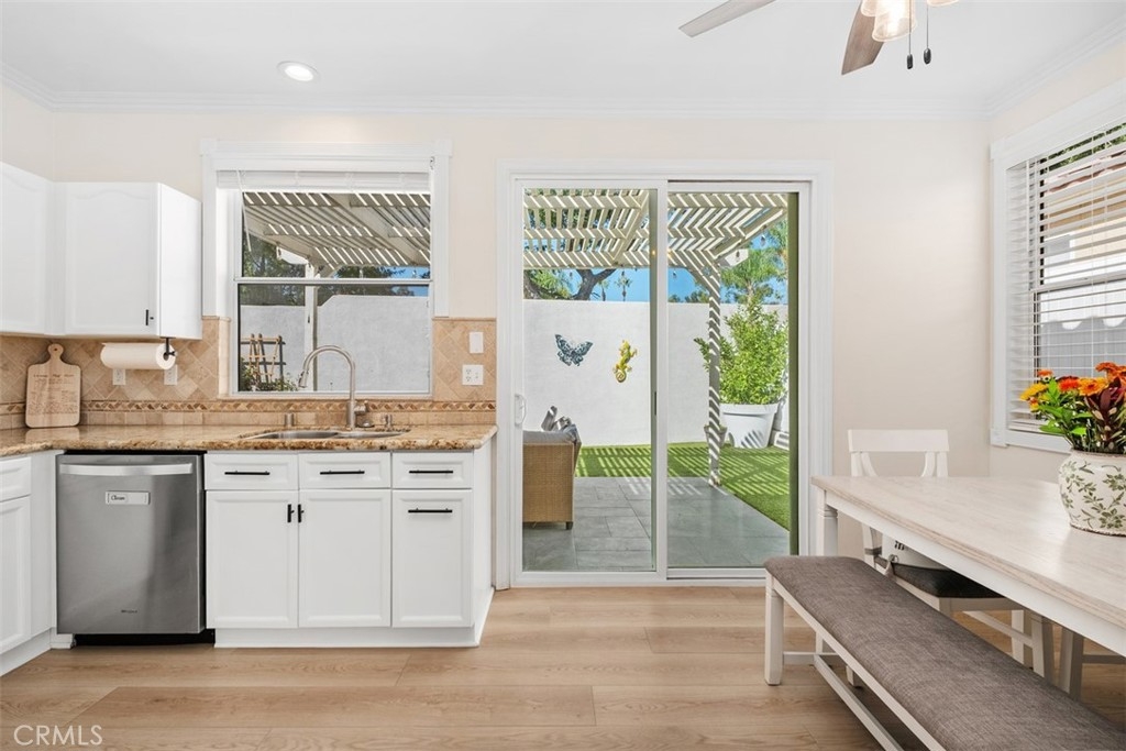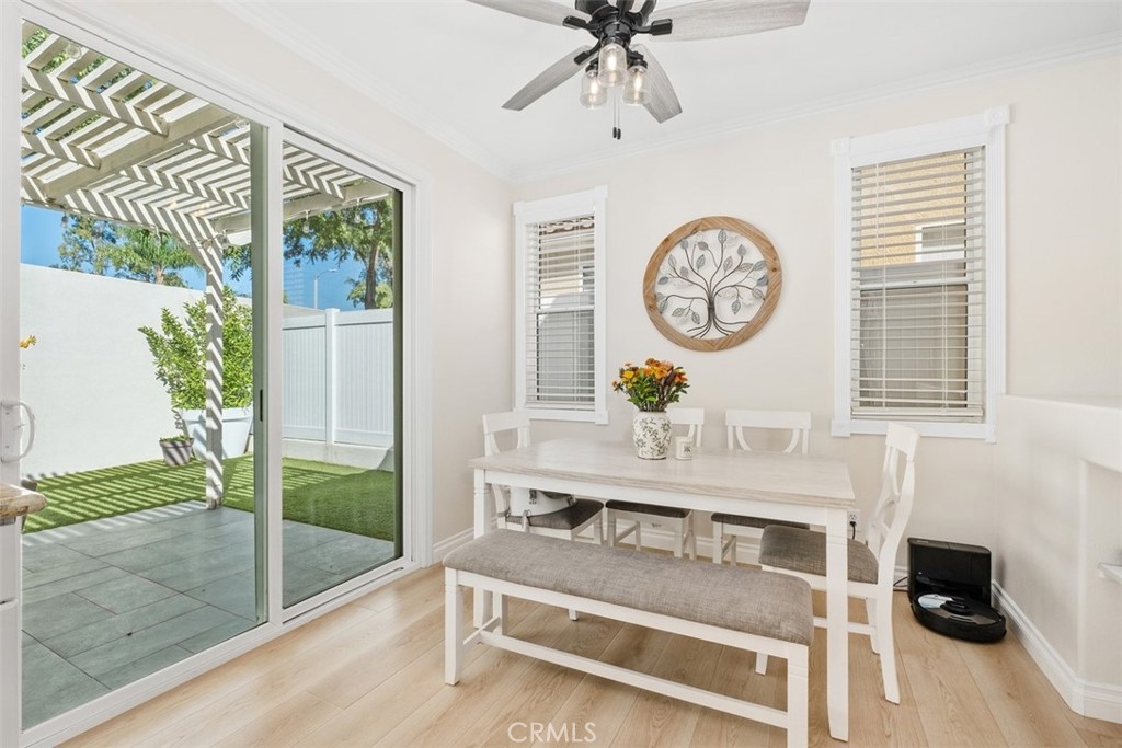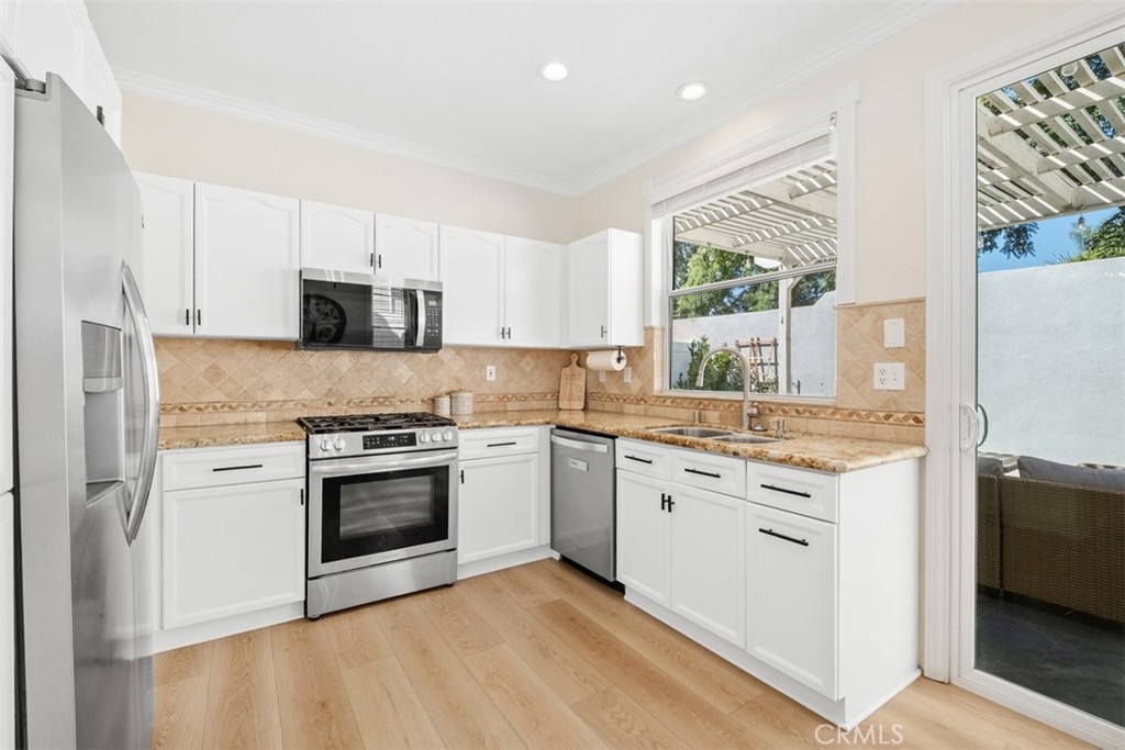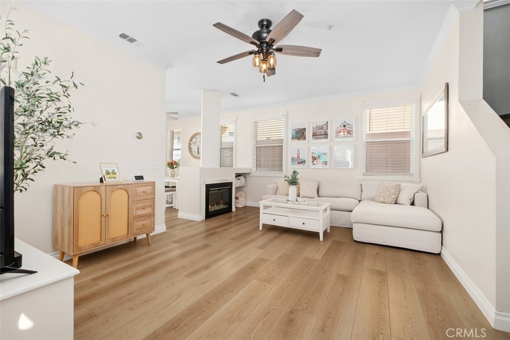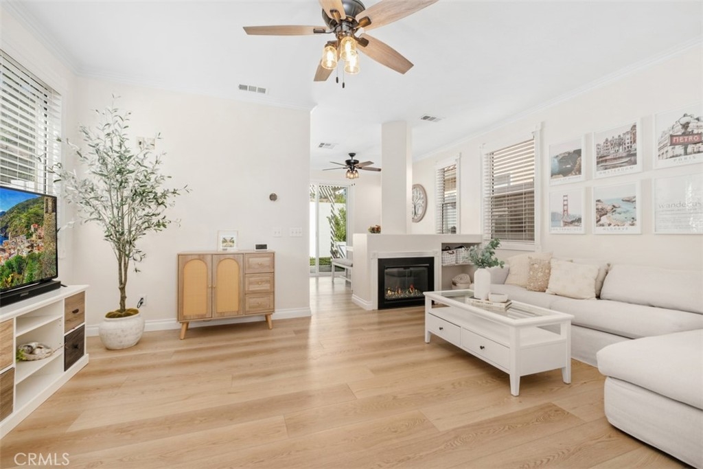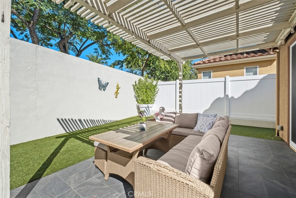 Welcome Home to 87 Calle De Felicidad – Heart of Rancho Santa Margarita Living! Perfectly positioned in one of Rancho Santa Margarita’s most sought-after neighborhoods, this beautifully updated detached home in Los Abanicos offers the charm of a single-family residence with the ease of low-maintenance living. Nestled on a quiet cul-de-sac, this home features one of the largest backyards in the community, a private retreat ideal for entertaining, complete with a tile patio, artificial turf, vinyl fencing for total privacy. Step inside to find modern upgrades throughout: vinyl plank flooring, crown molding, recessed lighting, stylish bathroom vanities, and ceiling fans in every room. The inviting family room features a gas fireplace for cozy evenings, while the kitchen boasts granite countertops, stainless steel appliances, and ample space for casual dining. Upstairs, you’ll find three comfortable bedrooms including a spacious primary suite with a remodeled ensuite bath, dual sinks, and a walk-in shower with dual shower heads. Enjoy year-round comfort with a brand-new HVAC (2025). The garage includes a 240V NEMA 14-50 outlet for EV charging. The benefits of being part of the SAMLARC community offering access to RSM’s iconic Beach Club Lagoon, multiple pools, tennis courts, parks, and scenic trails. All of this within walking distance to shopping, dining, parks, and the town center, in a city consistently ranked among #1 California’s safest cities to live in. This home is move-in ready, lifestyle-ready, and holiday-ready. Don’t wait, homes like this don’t last long in Rancho Santa Margarita.