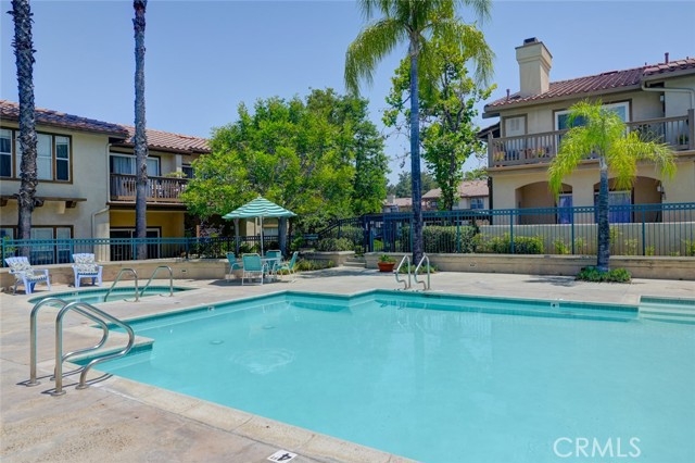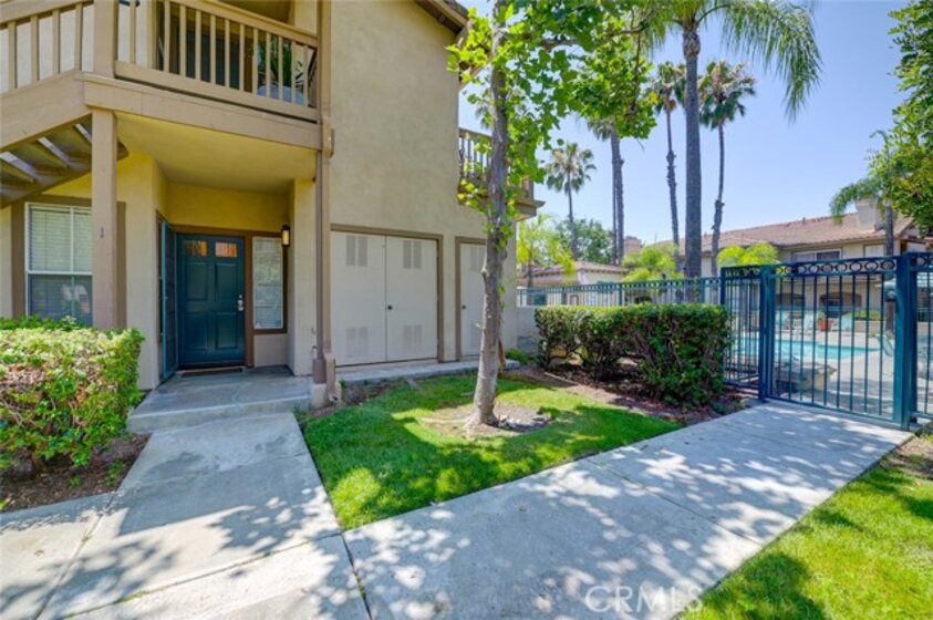 Most sought out floor plan 2 bed 2 bath with a 1 car attatched garage. Located in the private community of Los Portillos, this beautifully updated lower-level condo offers a prime location with picturesque views of the sparkling pool from your private, large enclosed patio. Step inside and be greeted by a freshly painted interior, enhancing the modern and inviting ambiance of this lovely home. The spacious living room features high 9' smooth ceilings, a cozy gas fireplace, built-in bookshelf and media cabinet, and a large sliding door that seamlessly connects indoor and outdoor living. The chic kitchen is a chef's delight, boasting recessed lighting, butcher-block countertops, an oversized undermount stainless steel sink, stainless steel LG and GE Profile appliances, and a brushed aluminum backsplash. With ample cabinet space and a convenient pantry, this kitchen is both functional and stylish. Enjoy casual family meals or elegant entertaining in the dining room, highlighted by a designer contemporary light fixture. The newly upgraded guest bathroom features modern finishes and fixtures, ensuring comfort and style for your guests. The large primary bedroom offers a serene retreat, complete with dual vanity sinks, double closets, upgraded light fixtures, faucets, and picturesque wall mirrors in the master bath. The new plush carpets throughout the home add a touch of luxury and warmth.Additional amenities include a one-car enclosed garage with interior access, an additional carport, and close proximity to shops, great dining, entertainment, and parks. This condo is the perfect blend of comfort, convenience, and contemporary living.Don't miss the opportunity to experience resort-style living in this stunning condo! Schedule your viewing today and make this exceptional property your new home.