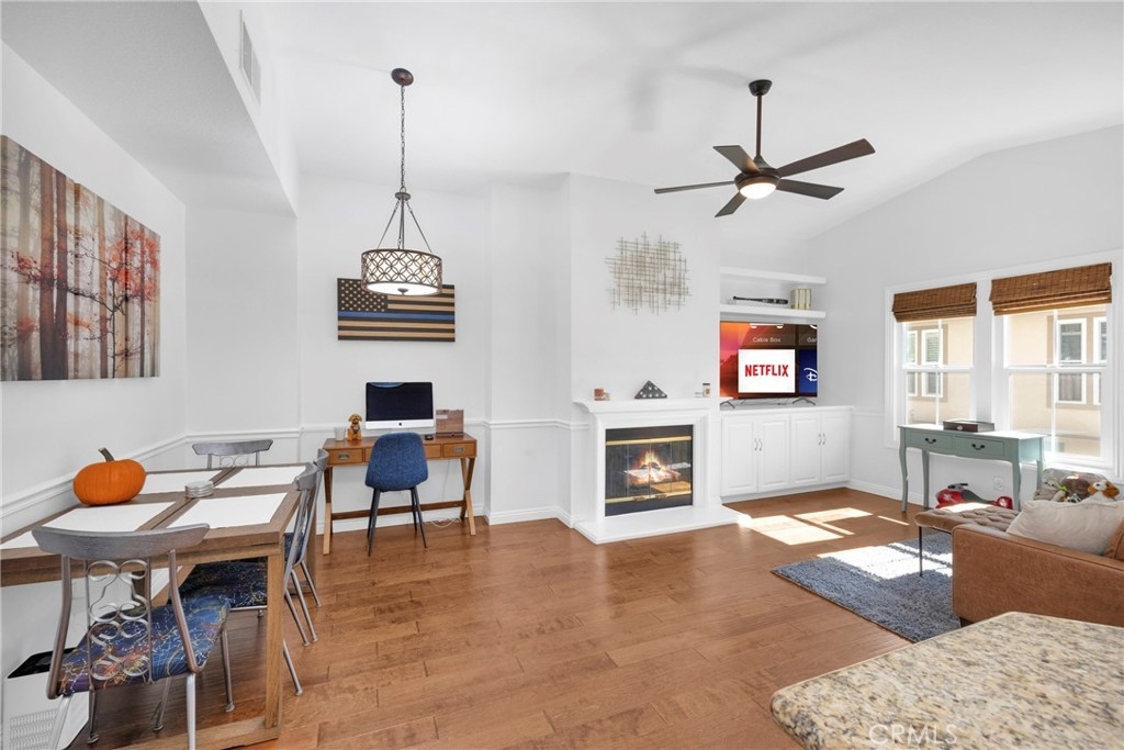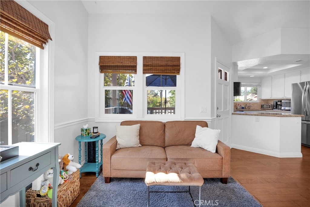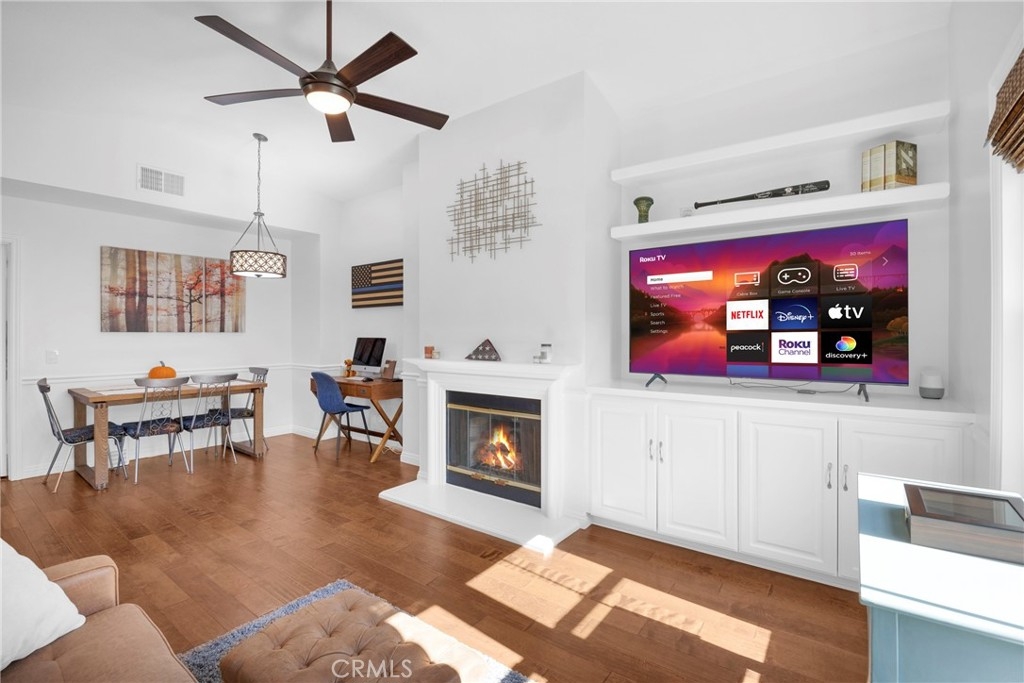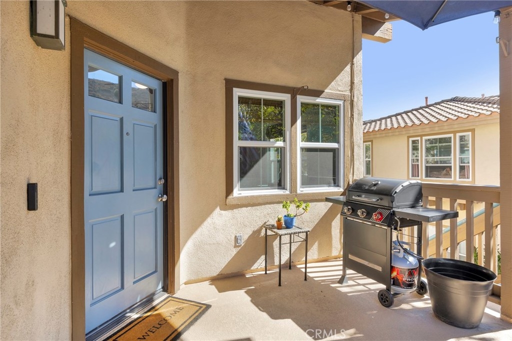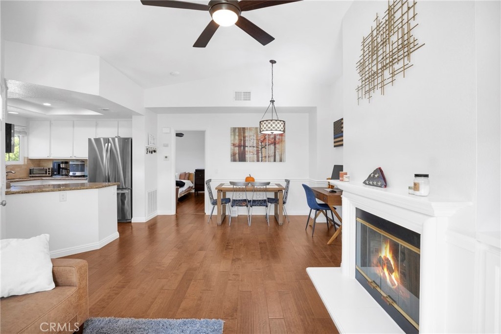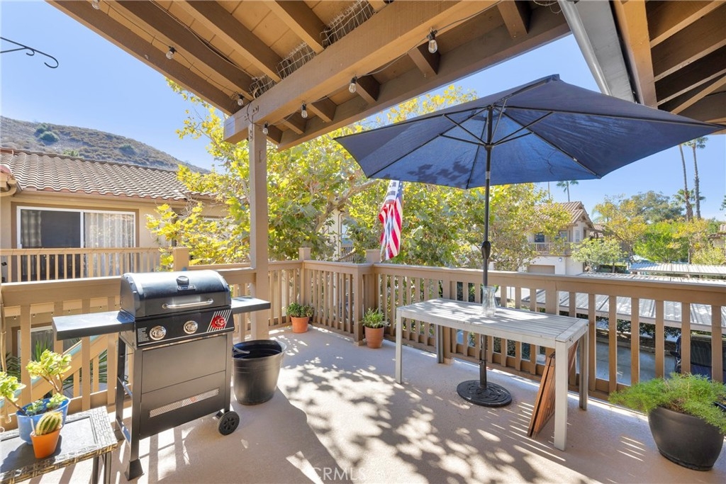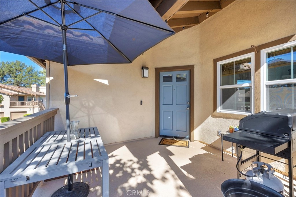 Tastefully updated throughout and move-in-ready, 106 Timbre presents a spacious open floor-plan, impressive vaulted ceilings, plenty of natural light, and spectacular views of the surrounding hillsides scattered by mature Sycamore trees. Premium corner end-unit location with large shaded private patio, perfect for BBQ's and entertaining friends, sipping coffee in the morning, watching the sunset with your favorite drink in the evening, or working from home on your laptop. Inside, you'll notice the luxurious fireplace, attractive wood flooring, custom built-in cabinetry, and recently updated kitchen with stainless steel appliances. The bedroom is spacious and offers a sizable walk-in closet, washer/dryer in another separate closet, and en-suite bathroom with attractive stone countertops. Located in the established neighborhood of Los Portillos, 106 Timbre has all of the amenities you want, low HOA, and no Mello Roos.