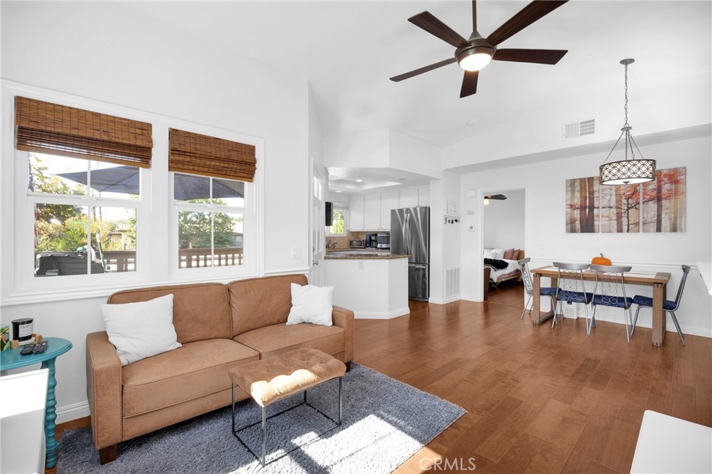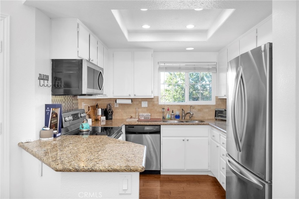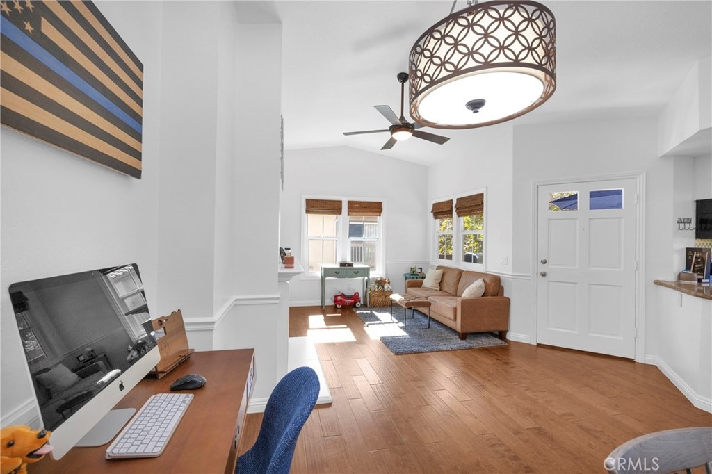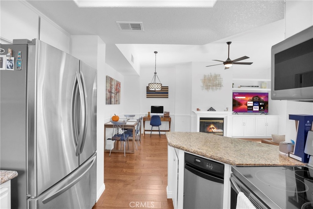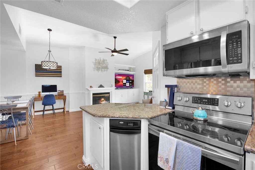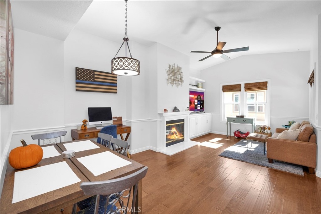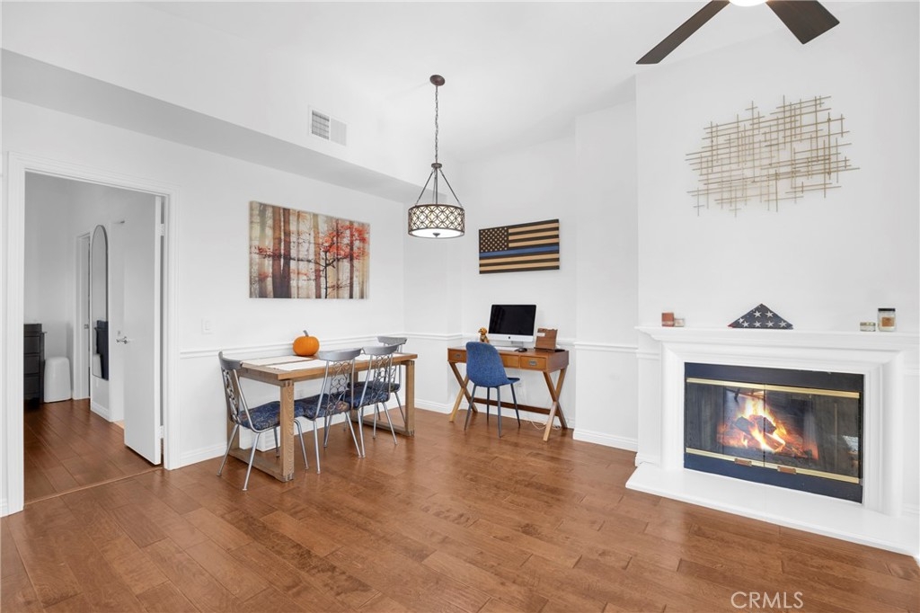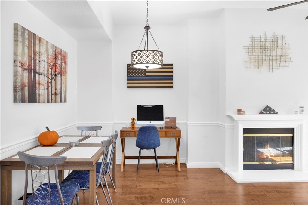 Tastefully updated throughout and move-in-ready, 106 Timbre presents a spacious open floor-plan, impressive vaulted ceilings, plenty of natural light, and spectacular views of the surrounding hillsides scattered by mature Sycamore trees. Premium corner end-unit location with large shaded private patio, perfect for BBQ's and entertaining friends, sipping coffee in the morning, watching the sunset with your favorite drink in the evening, or working from home on your laptop. Inside, you'll notice the luxurious fireplace, attractive wood flooring, custom built-in cabinetry, and recently updated kitchen with stainless steel appliances. The bedroom is spacious and offers a sizable walk-in closet, washer/dryer in another separate closet, and en-suite bathroom with attractive stone countertops. Located in the established neighborhood of Los Portillos, 106 Timbre has all of the amenities you want, low HOA, and no Mello Roos.