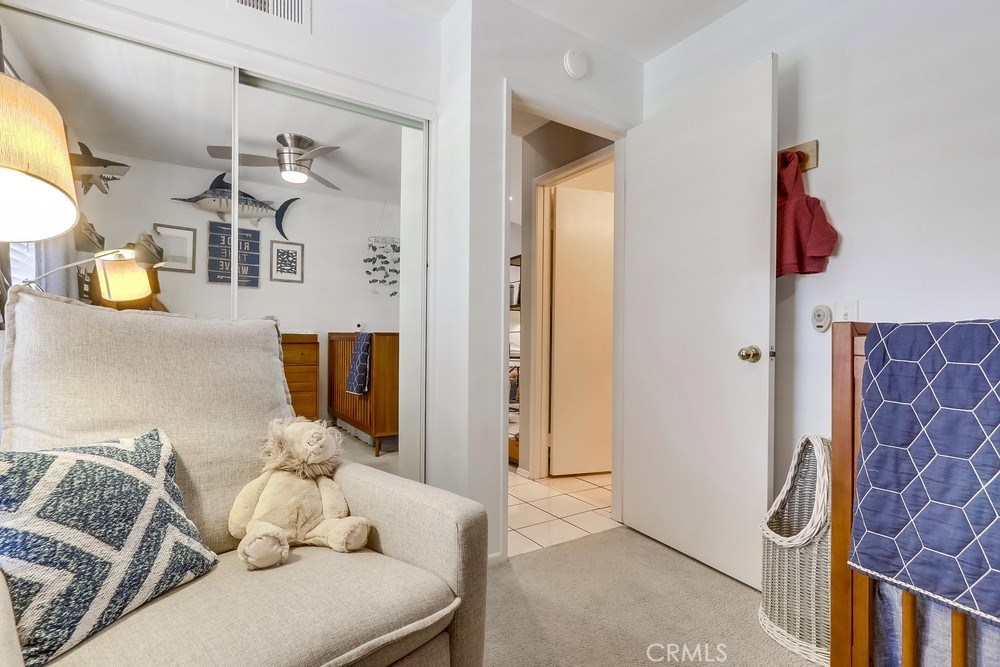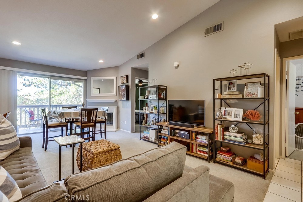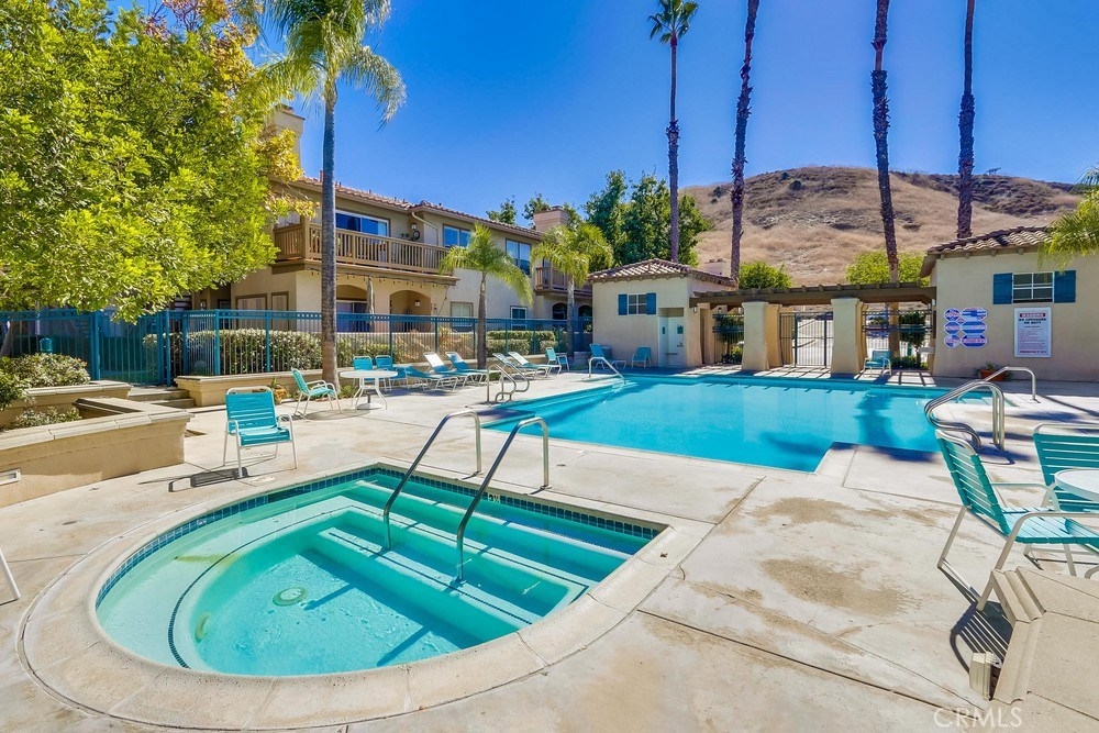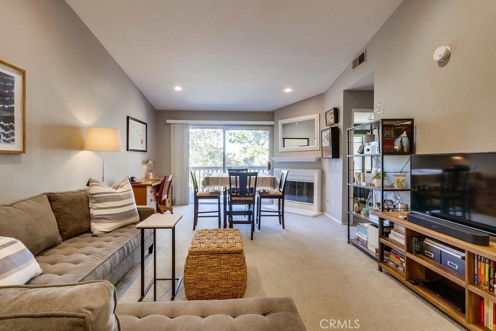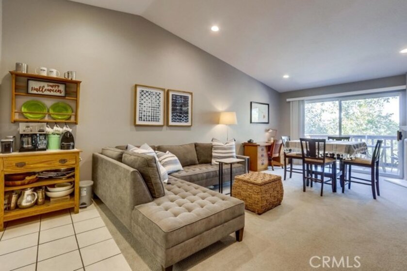Turnkey home in the beautiful community of Los Portillos. This 2 bed, 2 bath upper unit feels abundantly spacious with vaulted ceilings and recessed lighting. Open concept, with the upgraded kitchen overlooking the great room. Continue out on to your private patio with endless views of nature. Master retreat with dual closets and ensuite bathroom. Central AC! This home also comes with a detached one car garage with private laundry hookups (stackable washer/dryer included!). Garage includes electrical vehicle charger! Amenities include community pool and spa, as well as access to the beautiful SAMLARC beach club!