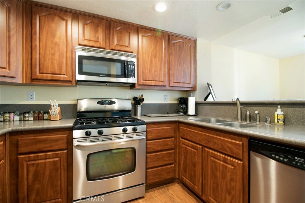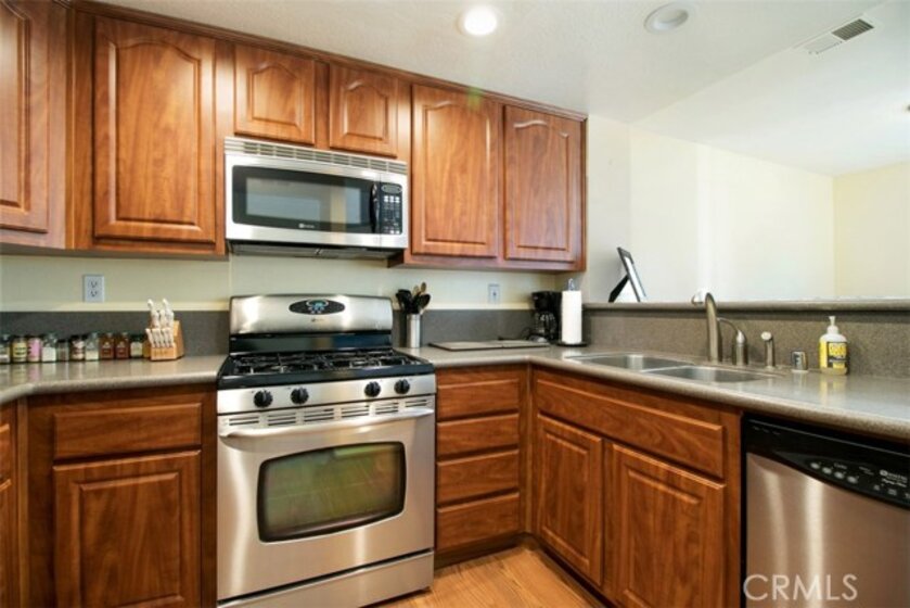 Turnkey! This is the lowest priced home in the beautiful community of Los Portillos! This is perfectly located off of RSM parkway, close to the toll road, shopping and award winning schools! This gorgeous end unit has upgrades galore! This two bedroom, two bath has an attached garage. The washer and dryer are on the main floor! The upgrades include, new carpet, granite counter tops in the kitchen, and bath, NEST thermostat, mirrored wardrobe doors, newer central air conditioning and heating, ceiling fans in Master bedroom and the living room! There is plenty of storage too. There are two decks one is off of the master bedroom the other in the front of the home. Very, very clean! This will not last!!
