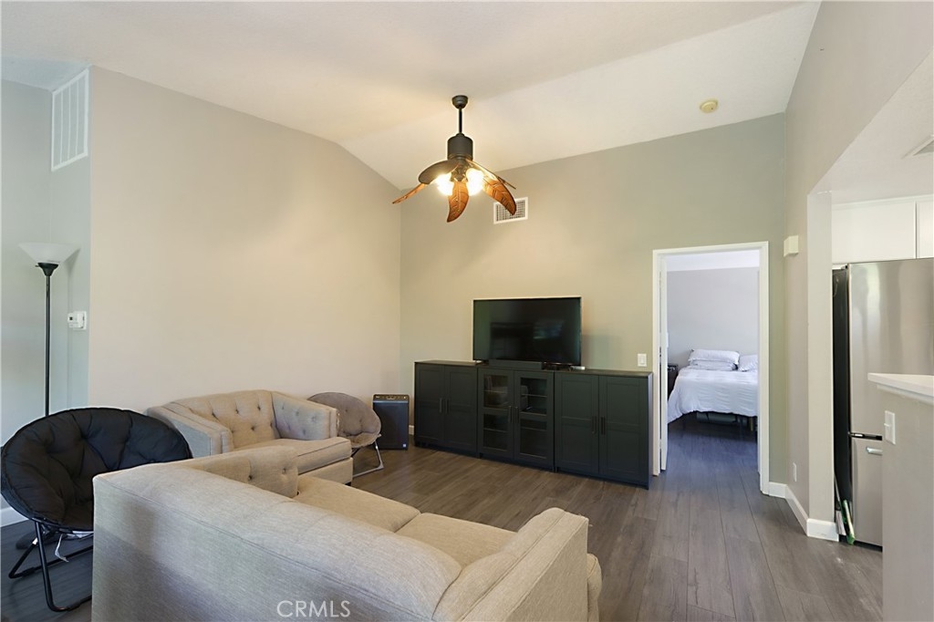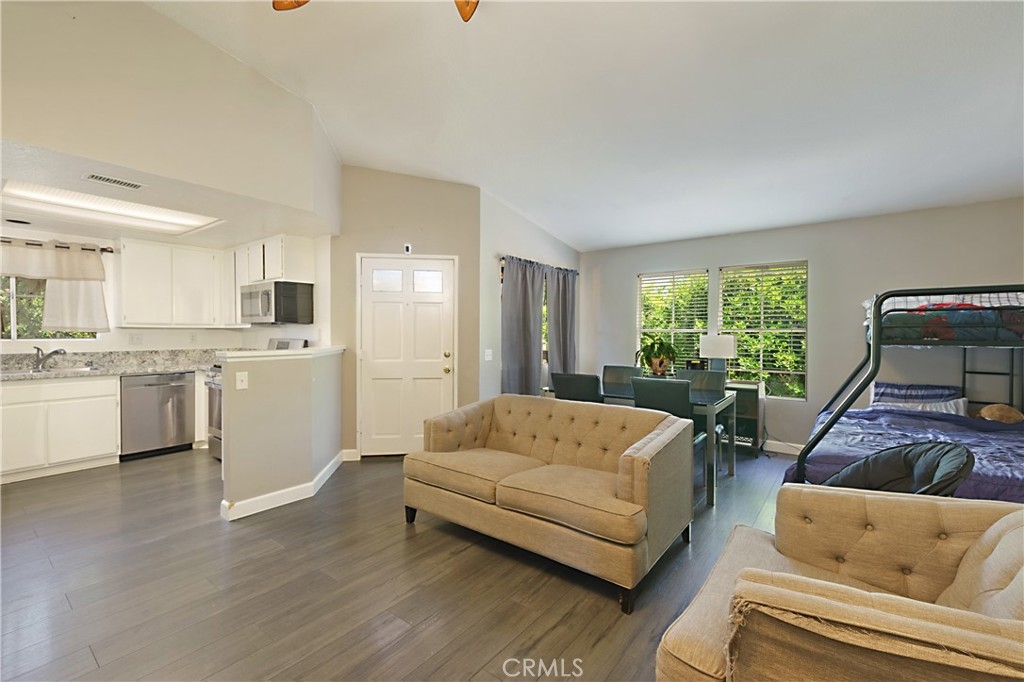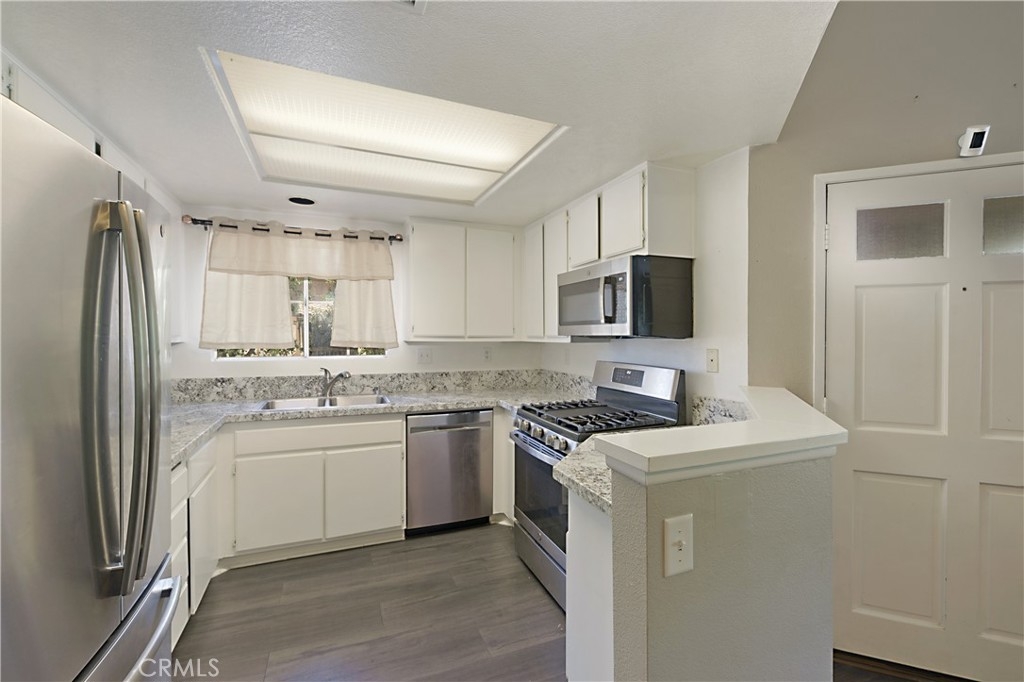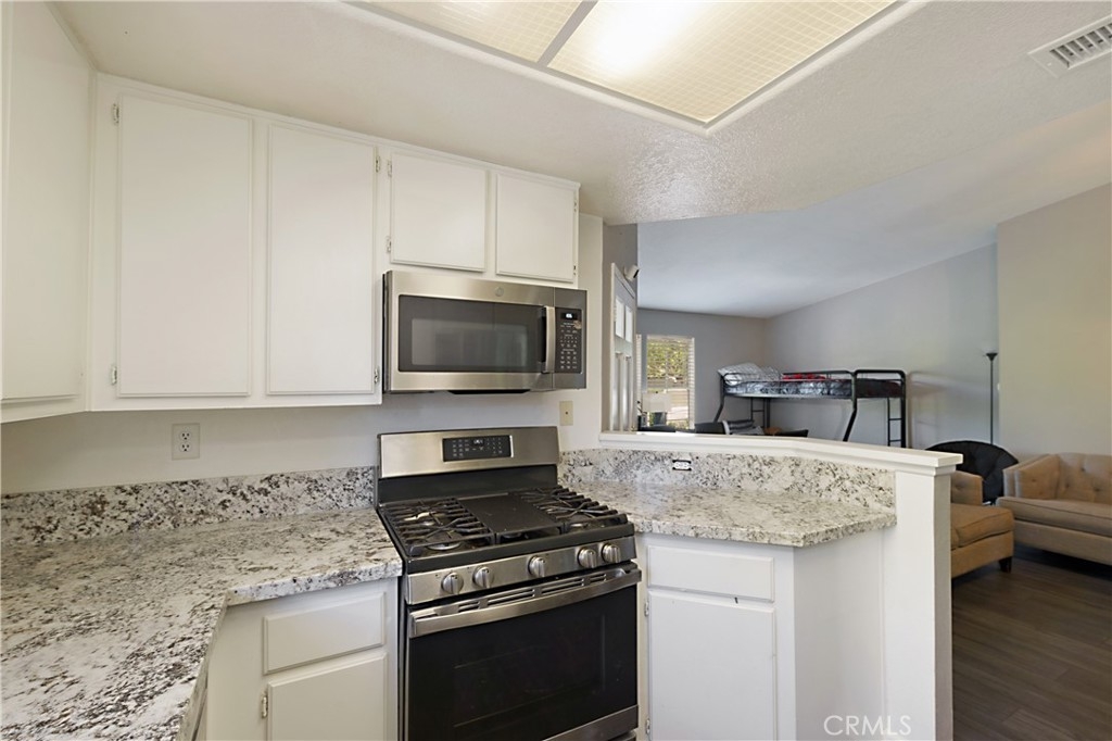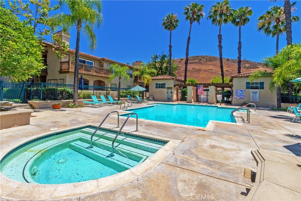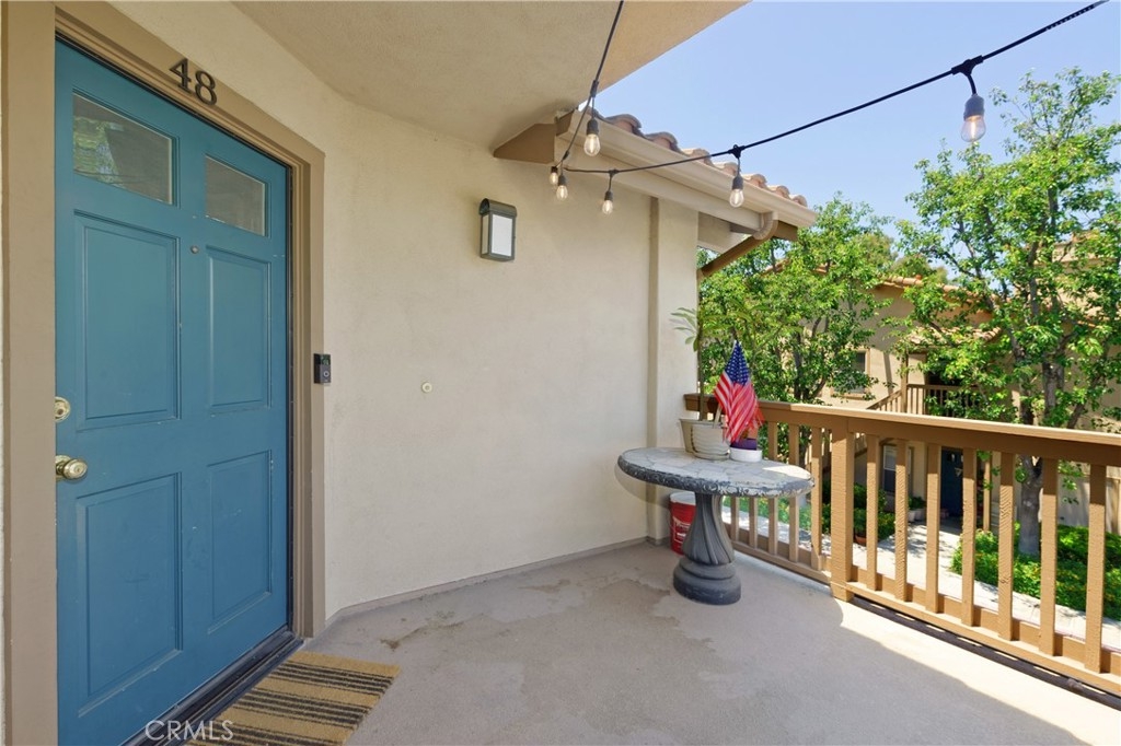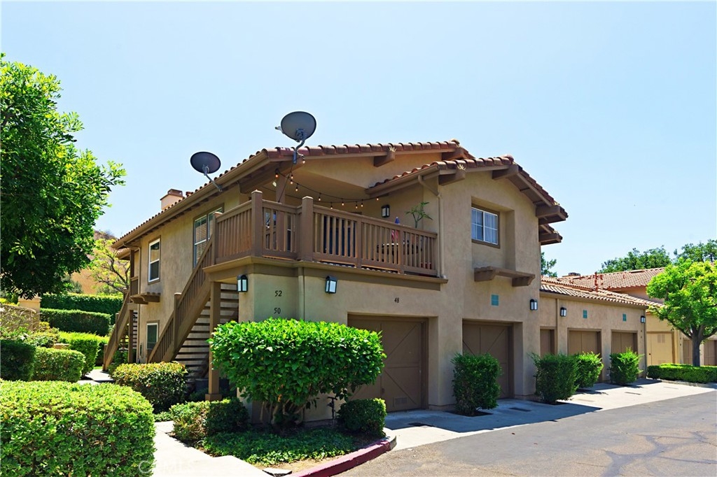 Charming 1 bedroom carriage unit with an attached garage located in the wonderful Los Portillos community! This spacious upper end unit has the upgrades and the view, along with a large single-car garage directly below in a fantastic location for guest parking within the neighborhood. What more could you ask for? Inside you'll find a nicely updated kitchen with new appliances, brand new granite countertops, and room to cook and create warm memories. Newer laminate wood flooring and a recent paint job show that this unit has been highly cared for. The entire unit has recently been repiped. The location is fantastic for a multiple reasons, one being that the parking is plentiful just around the corner for visitors and overnight guests. And the secondary reasons are the view of Saddleback mountains, and accessibility to the pool. The oversized patio is great to sip your morning coffee and read, or unwind at the end of the day and enjoy a beverage in the shade while enjoying the view. Conveniently close to shops, dining, schools and freeways, this is one of the best areas in Rancho Santa Margarita to live. You'll fall in love with this adorable home!