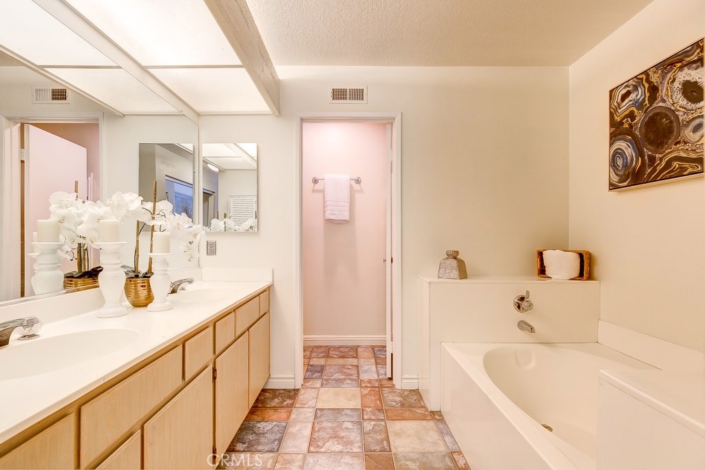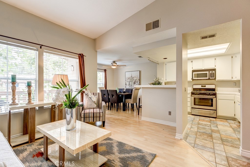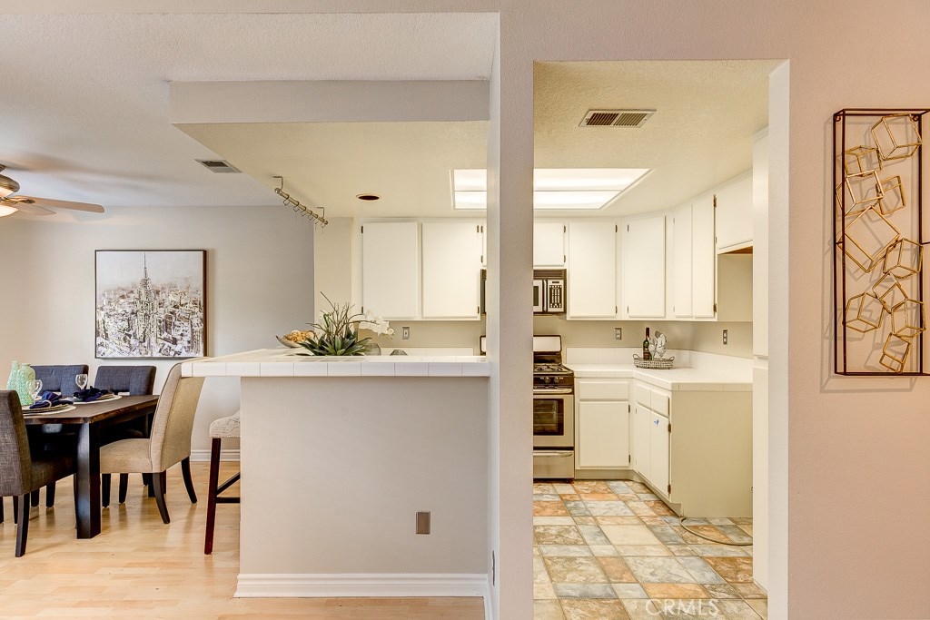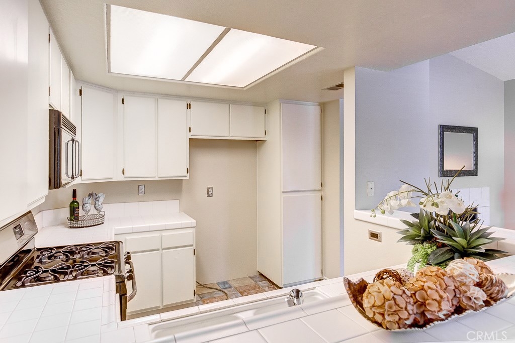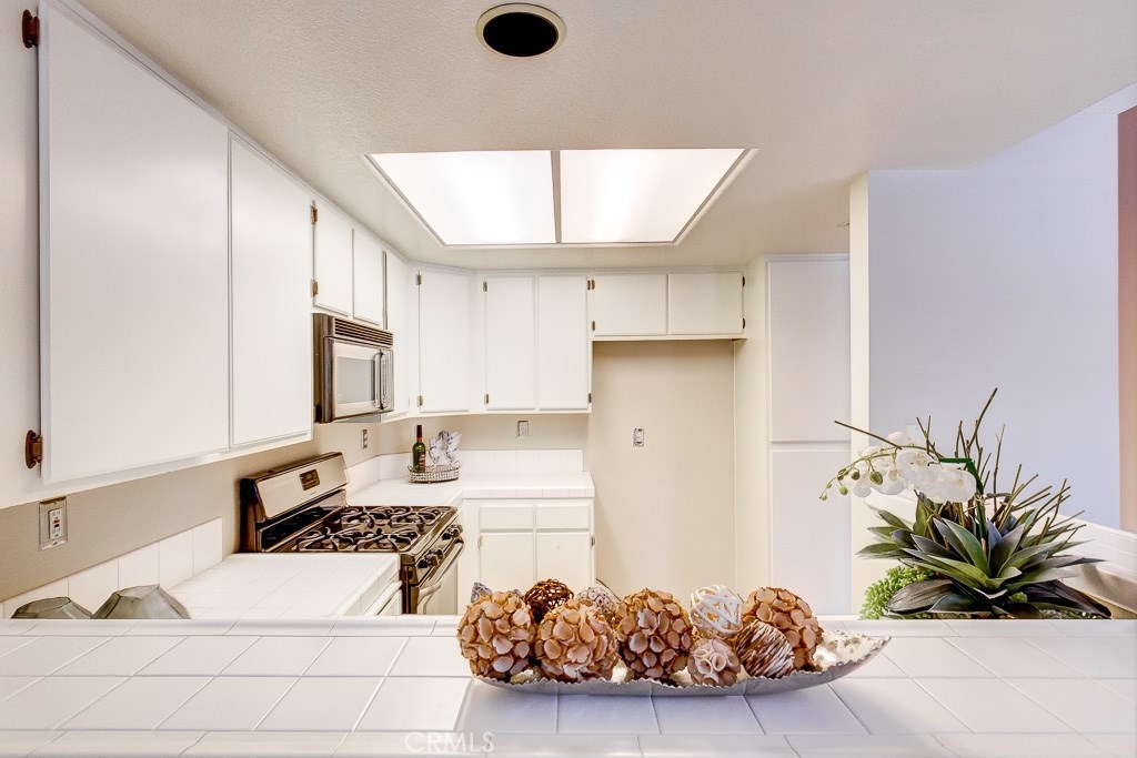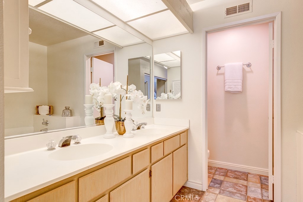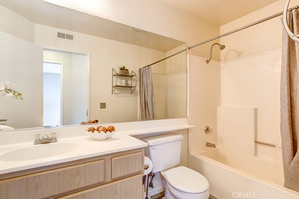 Opportunity knocks in the heart of Rancho Santa Margarita! Spacious 2 bed/2 bath upper level end unit with a direct access one car garage and one assigned carport. Prime, interior location. Volume ceilings with lots of light. Desirable open concept floor plan. Living room has fireplace and door out to balcony. Separate dining area. Kitchen features a breakfast counter and stainless steel appliances. 2 spacious bedrooms. Master has a private balcony, mirrored wardrobes, and bathroom with soaking tub and dual vanities. Laminate wood and tile flooring throughout. Freshly painted interior. Enjoy the community pool and spa and nearby parks, RSM Lake and hiking & biking trails. Conveniently located in central RSM, near shopping, dining and entertainment. Easy access to the 241 toll road. Excellent first time buyer or investor opportunity.