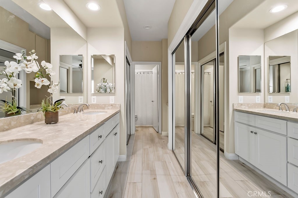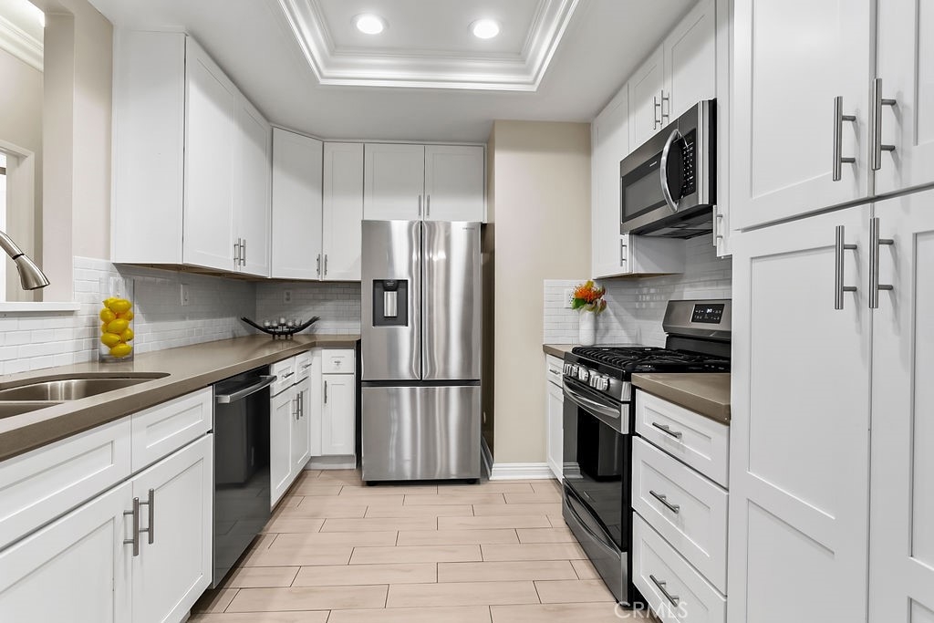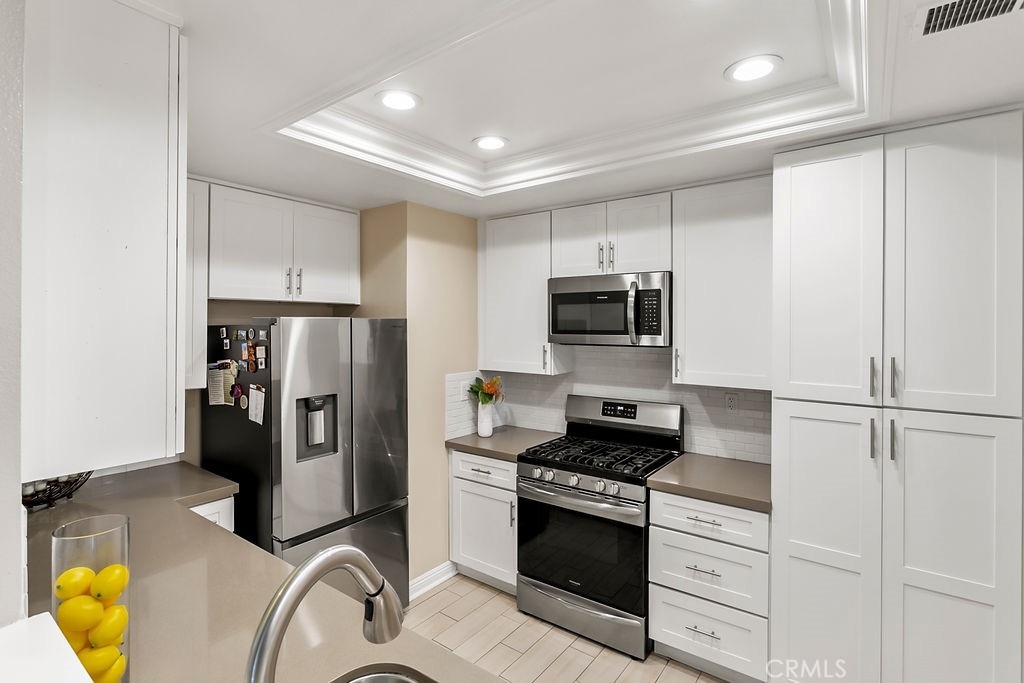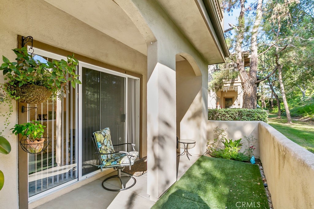 Welcome to this charming, single-level, lower-unit condo located in the highly desirable community of Los Poortillos. This 2-bedroom, 2-bathroom home offers an open and airy floor plan perfect for comfortable living. This tranquil corner unit is perfect for those seeking some privacy. The spacious living room features ample natural light, with a fireplace creating a warm and inviting space. The well-appointed kitchen is equipped with modern appliances, plenty of cabinet space, and quartz countertops, making meal preparation a breeze. Just Adjacent to the kitchen is a wonderfully sized dining area. You will love the spacious primary bedroom with a ceiling fan, an ensuite bath, and a large vanity. On the opposite end is another inviting secondary bedroom and secondary bathroom. Conveniently located laundry in the closet and an attached 1 car garage and one carport. You will love the sparkling community pool and spa. Move-in ready, this place is set to be your next home. Enjoy the proximity to shopping, dining, and everything the beautiful city of Rancho Santa Margarita has to offer. This home is a member of the Samlarc association granting you access to multiple pools, tennis courts, pickle ball courts and more.