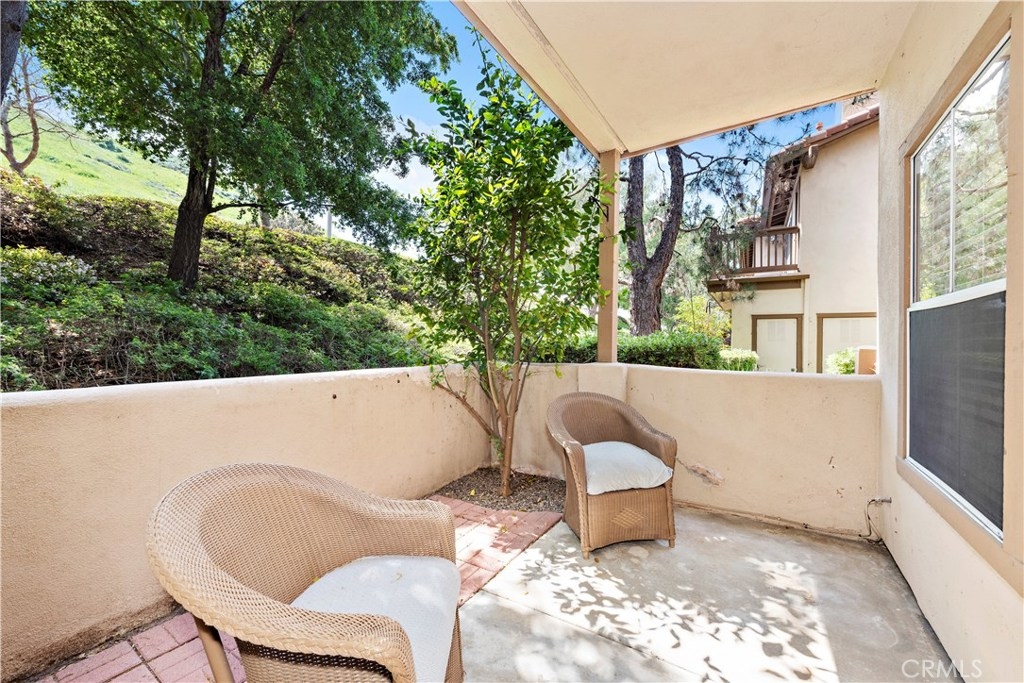 Welcome to 86 Abrigo in Rancho Santa Margarita, one of California's safest cities (also known as one of the best communities to live in the US with a population under 50,000). This home provides a great location on a quiet greenbelt so enjoy the SoCal outdoors on one of your two private patios. Easy access to the toll road and to local eateries (walking distance) make the location super convenient. You will love the sought-after open layout, full-size interior laundry and direct access garage-there's also an assigned covered parking spot. The light and bright kitchen offers plenty of cabinets and counter space while boasting a wrap-around breakfast counter for additional dining space. The spacious living room features a cozy fireplace while the ample dining room has direct access to the patio making entertaining a breeze. The bedrooms are on opposite sides of the home for privacy while the secondary bedroom has easy access to a full bathroom. The master bedroom features a private door leading to a second patio to enjoy. The master bathroom has dual sinks, a wonderful soaking tub and separate shower and his and hers closets. The neutral colors throughout the home allow numerous decorating choices. The entire Los Portillos community was recently repiped. Enjoy the community amenities including the Los Portillos pool and spa, Samlarc's multiple pools, parks, tennis courts, the beach club and special events. Live the RSM Lifestyle!