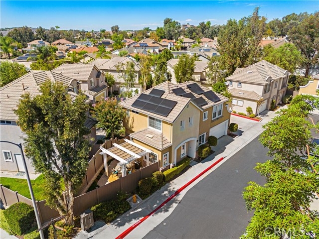 Welcome to your new home! 41 Poppyfield is a charming, detached, 3 bed and 2.5 bath condo nestled in the highly sought-after Magnolia community in Las Flores. Step inside to the light and bright open-concept floor plan featuring designer upgrades throughout. The home has been remodeled and repainted within the last two years with newly installed wood-like laminate floors on the main level, new carpet upstairs, and new window treatments throughout. Prepare delicious meals in the remodeled kitchen with quartz countertops, backsplash, and high end stainless-steel Thermador range, microwave, and dishwasher. Step out into the inviting back patio where you can relax and dine outside under the recently built trellace with retractable shades! All new vinyl fencing is ideal for privacy! The bright, open, living room is complete with cozy fireplace and alcove perfect for a flatscreen TV. Upstairs, the master suite features views of the hills, dual closets, and a stunning remodeled bathroom. Two additional secondary bedrooms and full bath complete the second-floor accommodations. Attached, two car garage has built in storage cabinets and new epoxy coating. New, SELLER-OWNED, solar panels! This home is located in the pristine Magnolia Community featuring multiple swimming pools, parks, hiking and walking trails. The quiet, interior location is adjacent from the association pool! The top-rated schools, shopping, and entertainment nearby. Excellent location near the 241 and 5 freeways. Your dream home awaits!