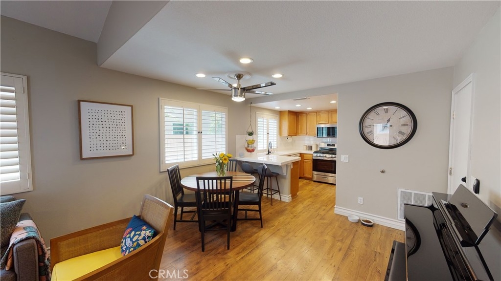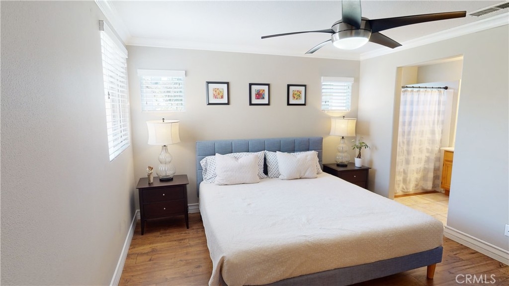 Welcome home! 6 Poppyfield Lane is a detached two bedroom two and a half bath home located in Magnolia Lane, in the highly coveted Las Flores community. Pride of ownership is on display from the moment you walk in the front door. Buyers will love the stunning laminate wood flooring as well as the custom door casing and upgraded baseboards throughout the home. The living room is light and bright and features plantation shutters and a custom fireplace and mantel complete with beautiful woodwork and ceramic tilework. The guest bathroom has been remodeled with a new vanity, shelves and light fixtures. Buyers will be delighted by the large loft upstairs that has been expanded and reconfigured from its original layout for optimal use. The master bedroom features its own attached bathroom and walk-in closet. The attached two car garage features shelving and a workbench with a tool pegboard. Outside is a clean brick patio perfect for enjoying the beautiful sunny weather. Yard is irrigated so it would be easy to add some greenery. The home is located in a pristine community that features multiple swimming pools, parks, hiking and walking trails. The top rated schools are within walking distance and walkways and bridges that allow students to safely walk to school. Excellent location near the 241 and 5 freeways. Low taxes and HOA. Schedule a showing today before it’s gone!