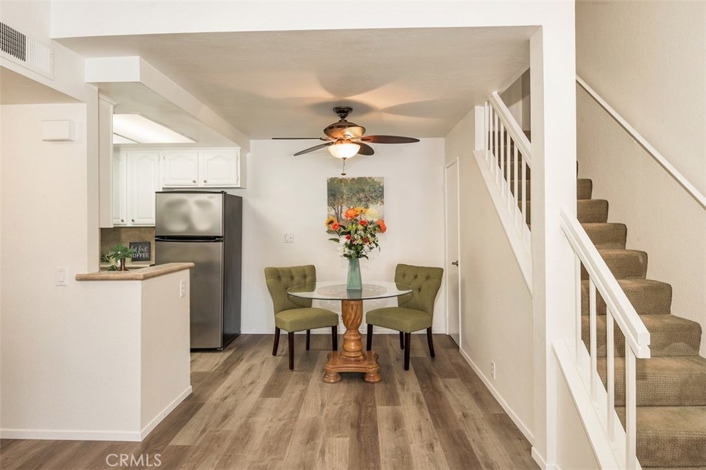 Beautiful completely Remodled Townhome that has Masterbath first level and second Bedroom in converted Loft .New Laminate Floors are classy . and Designer quality. .Great opportunity to own this unit that has Upper level Security location with a Open feeling of this Home with High vaulted ceilings. There are many upgrades that make this condo a turn key ready home for your family. Washer ,Dryer and Refrigerator are yours and stay with the Home. Rancho Santa Margarita home to RSM High Premier Football Powerhouse and celebrated schools and enjoy the Walk Nearby to Lake Mission Viejo and enjoy Great outside Amphitheater Summer concerts ,Parks and tennis courts. Take Advantage of the low interest rates before the inevitable rate hikes.
