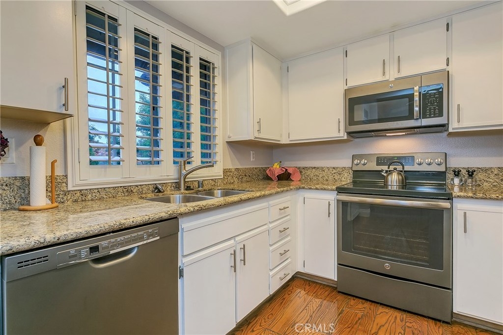 Back on the market! BUYERS could not perform. Welcome to Your Light and Bright Home!! This beautiful upstairs corner unit has granite slab counters, recessed lighting, gleaming hardwood floors in the entry, breakfast nook, and kitchen. All windows have gorgeous 4 inch wood plantation shutters. The living room and master bedroom have vaulted ceilings. Both bathrooms are enhanced with tile floors and gorgeous vanities. The master bathroom has double sinks, a walk in closet, and a secondary closet with mirrored doors. The second bedroom has a custom built-in with shelving, lighting, and drawers. The second bedroom has a large closet with mirrored doors as well! Brushed nickel ceiling fans adorn many of the rooms. To make a great home even greater, it is one of the rare units that has 2 single detached garages. Both garages are close to the unit with loft storage built into them. You will find yourselves lucky to be looking down to lush greenbelt and trees instead of facing out to the main streets. The complex has a private pool, tot lot, and plenty of parking. Walk across the street to Lake RSM, the Beach Club, grocery stores, and great restaurants. RSM has 13 community parks, 4 community pool facilities, lake, skate park, and dog park. This is an ideal home to buy for your family, first home, or as an investment. FHA & VA approved.