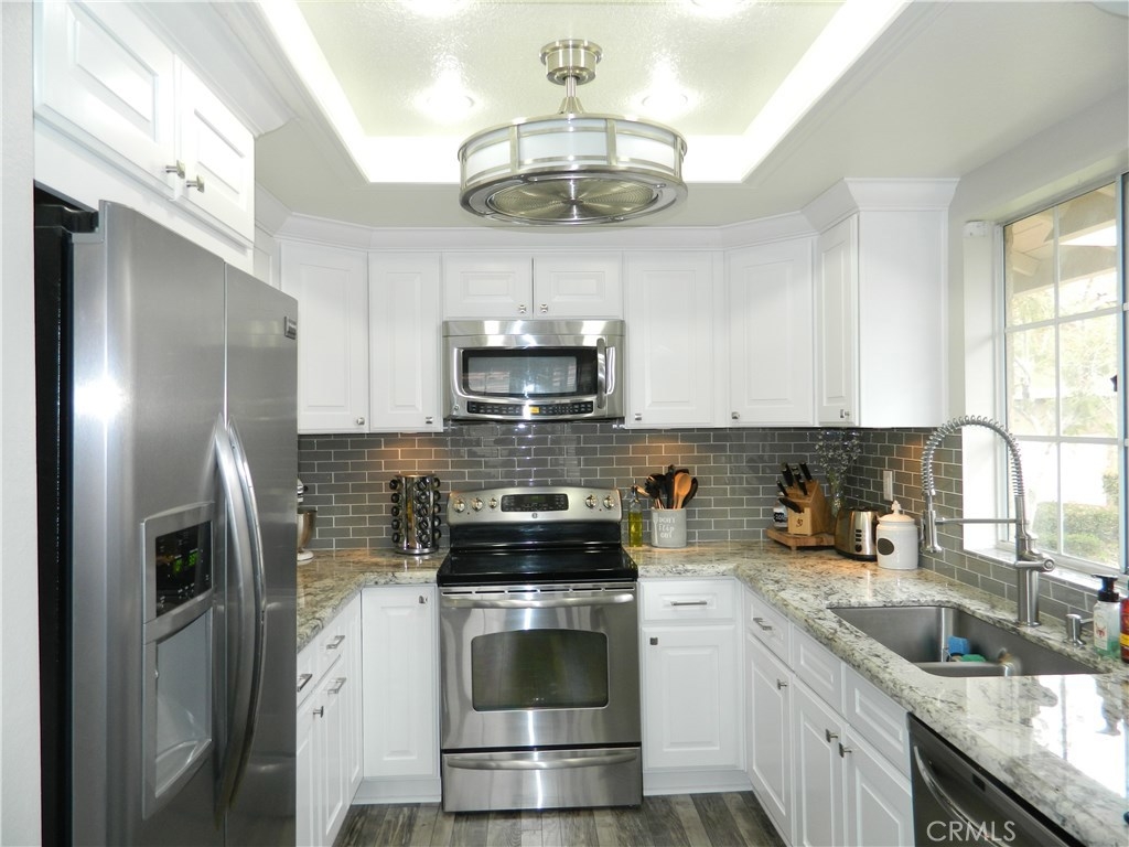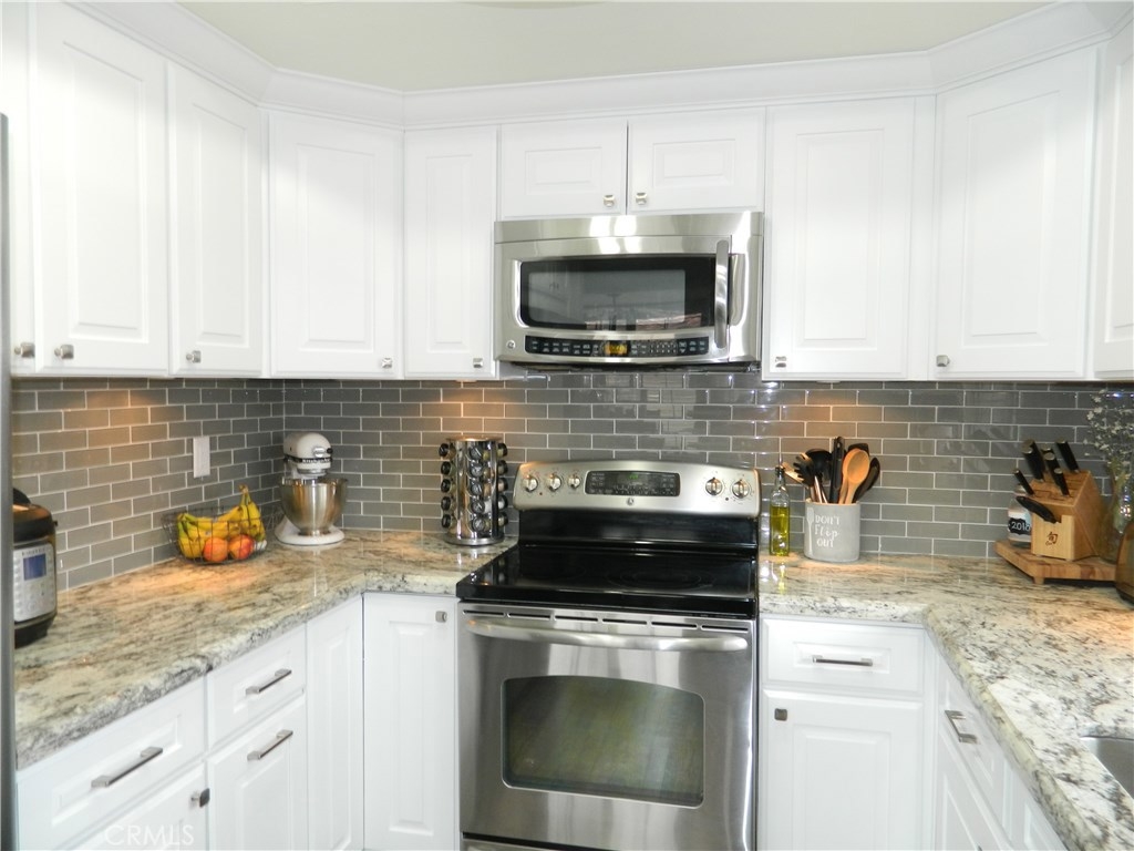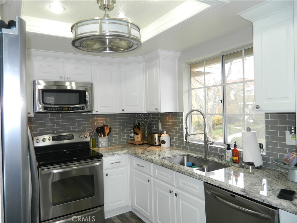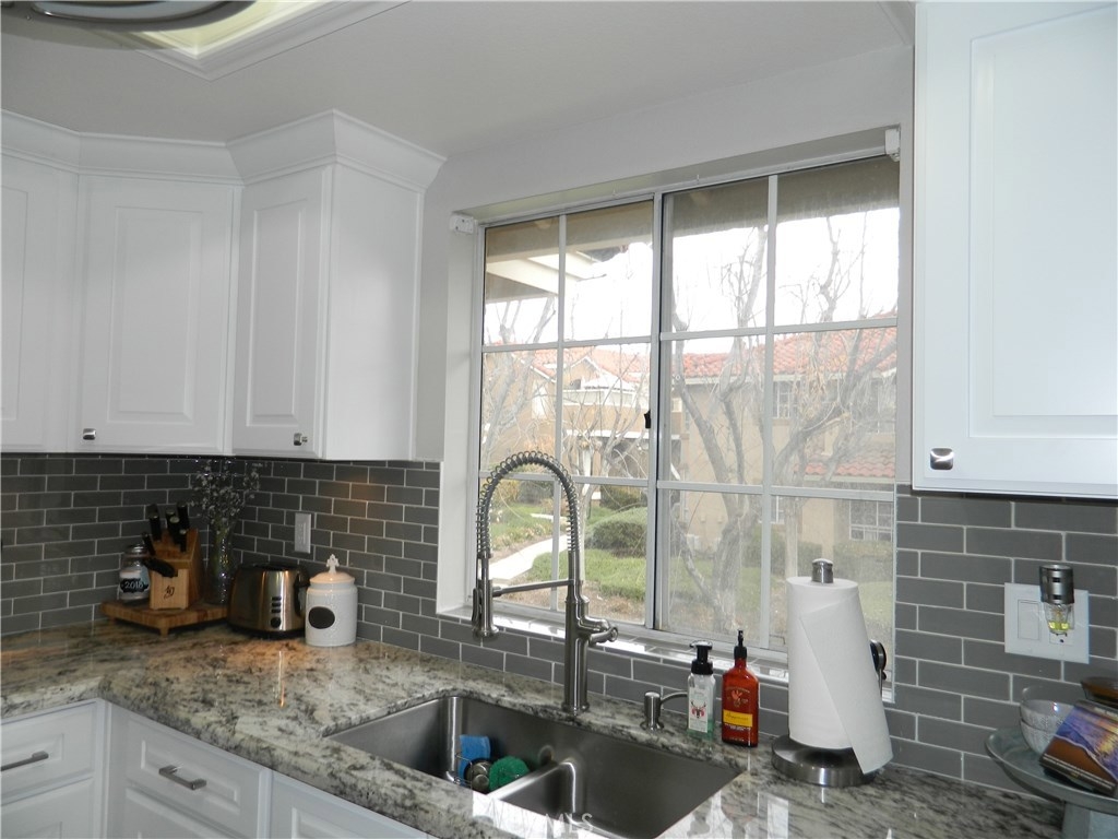 This beautiful upper end unit is nestled in popular Mission Courts, surrounded by lush greenbelt. Upgraded throughout, enjoy a newly remodeled kitchen with new solid wood cabinetry, granite countertops, stainless appliances, glass tile back splash, a deep stainless sink with a very cool industrial faucet, under cabinet lighting and large pantry with automatic light, new hardwood laminate flooring with premium underlayment enhances the bedrooms, kitchen, hall and living room. There are designer ceiling fans in the kitchen, living room and bedrooms as well. LED lighting adds extra light to enhance new paint throughout. The Tankless hot water heater adds extra efficiency! The fabulous Master suite has a walk in closet, dual vanities, a Jacuzzi tub, custom rain shower head, and vaulted ceilings! The romantic stone fireplace brightens the already sunny living room. The oversized garage has extra storage and will soon have roll up doors per the HOA. Enjoy the green belt view from all windows, especially the kitchen! The convenient inside laundry area includes the washer/dryer. Enjoy all the amenities of living in RSM with lake and beach club, parks, community pools, tennis and lots of hiking and recreation areas.