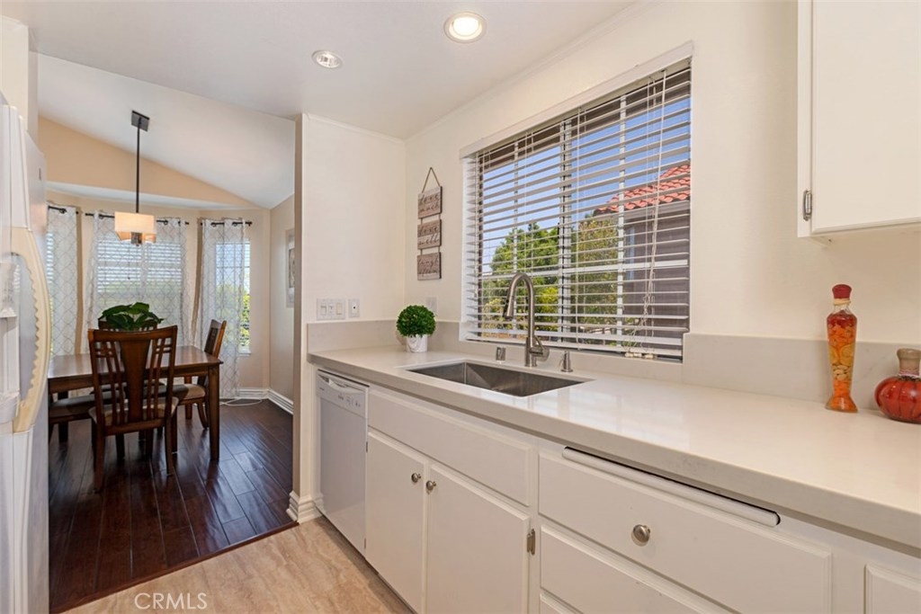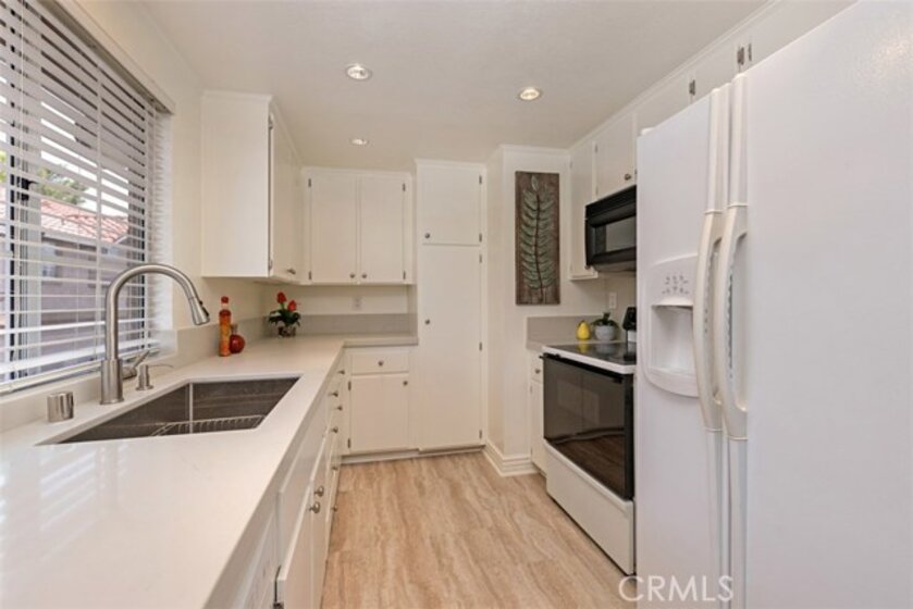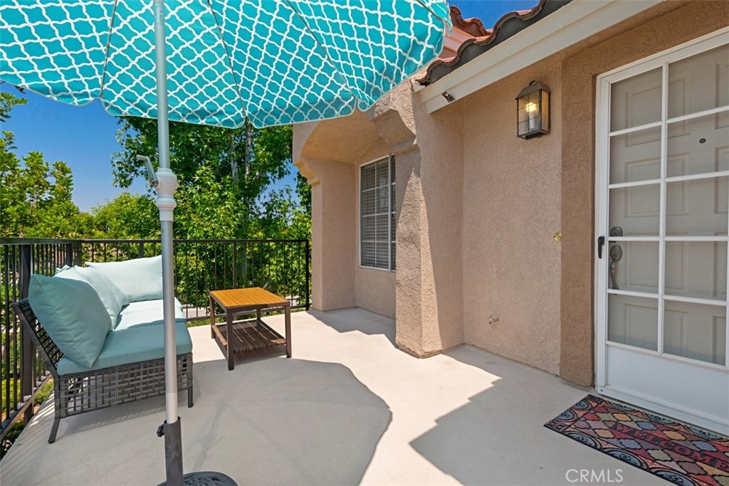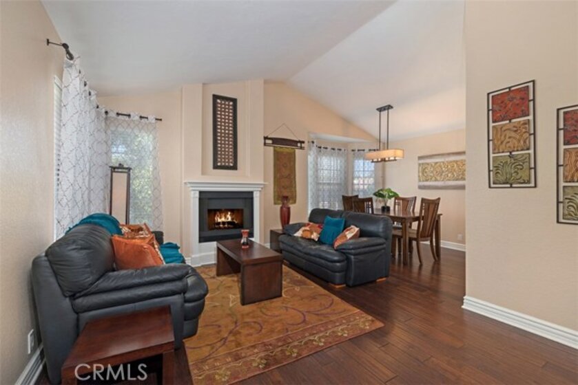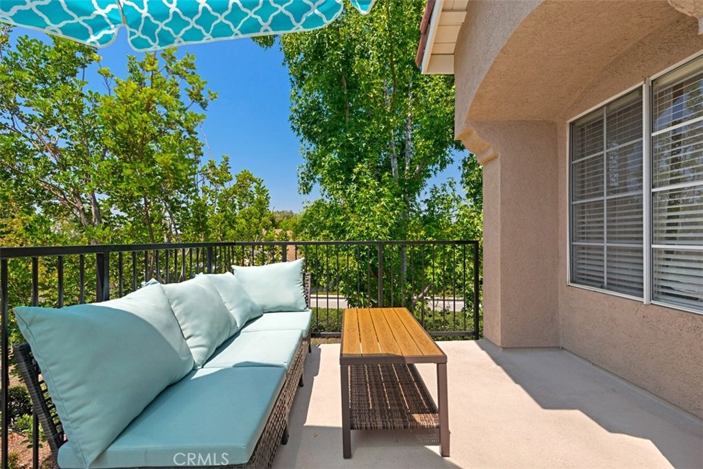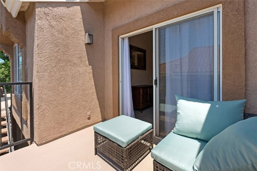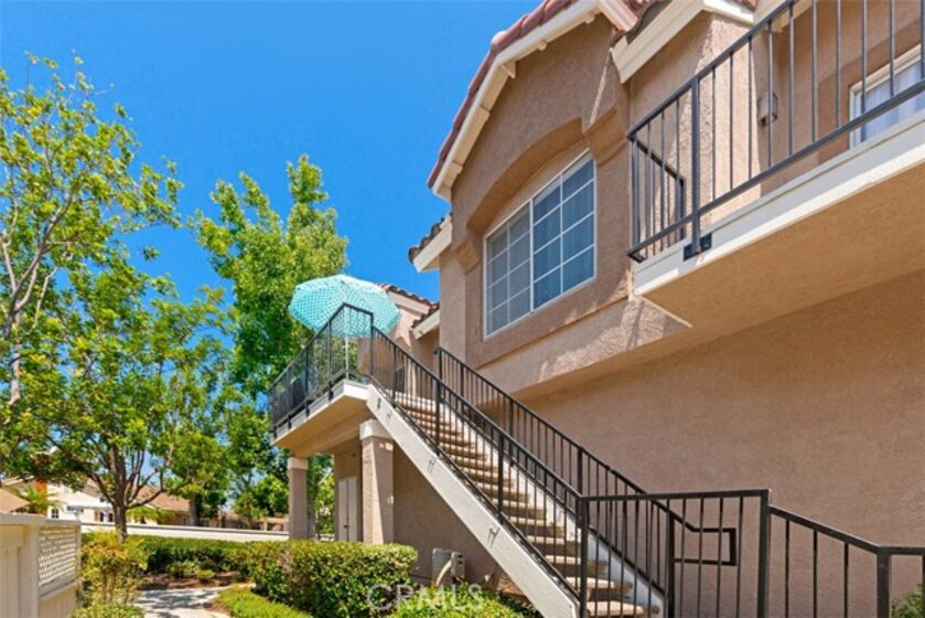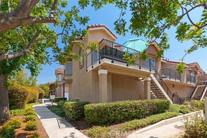 Turnkey 2 bedroom, 2 bath carriage unit with nobody above or below! Living room with cathedral ceilings, manufactured wood floors and warm fireplace! Kitchen includes quartz counters, new stainless sink, recessed lights and new tile. Formal dining with new light fixture. Dual tone paint and upgraded baseboards throughout. Large master bedroom with two closets, plus slider doors to private deck and storage closet. Master bath includes dual vanity, new tile flooring and oval tub. Middle bedroom has double doors leading to living room, plus single door access at hallway. Stackable washer/dryer hookups in middle bath closet. End unit with large second balcony overlooking perimeter walkway and greenbelt area, which has convenient steps that lead down to the neighborhood access to Cielo Vista Park, Cielo Vista Elementary and RSM Intermediate. Single car garage. Community includes pool/spa and tot lot. Plus right across the street from Santa Margarita Lake with all of its amenities!
